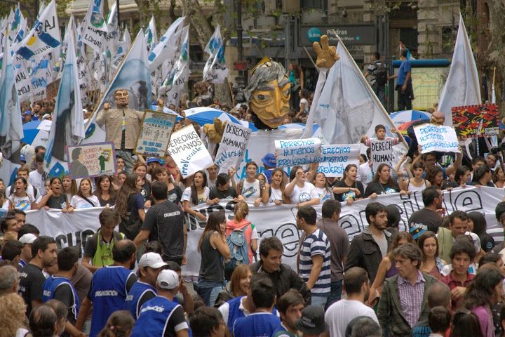 “ ¡No nos han vencido!ˮ, fue una de las frases qué más se escuchó cantar durante el recorrido que hicieron los militantes, encolumnados detrás de las banderas con las que día a día militan en los barrios, en las escuelas y en las universidades, para que nunca más se repita esa historia cruel de tortura y oscuridad que durante años llenó al pueblo argentino de pérdidas, pobreza, tristeza, impunidad y exclusión.