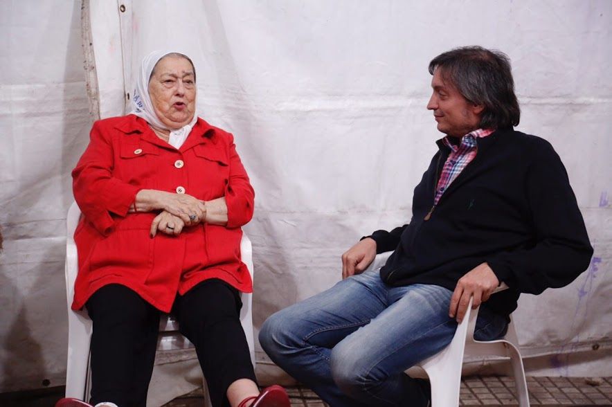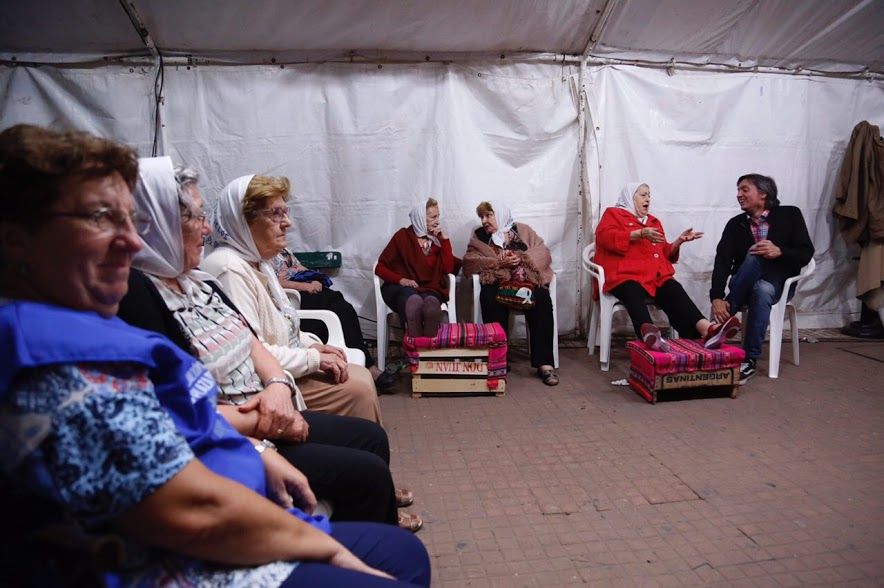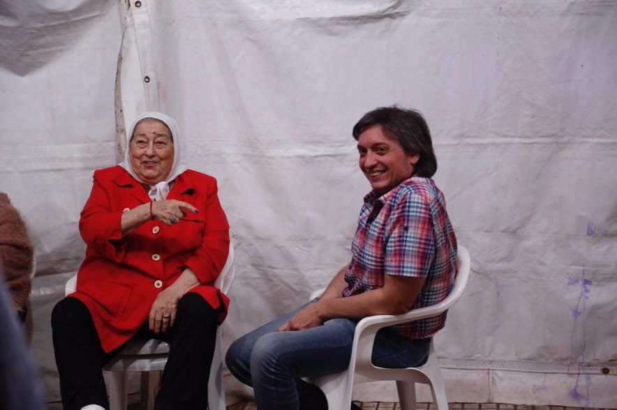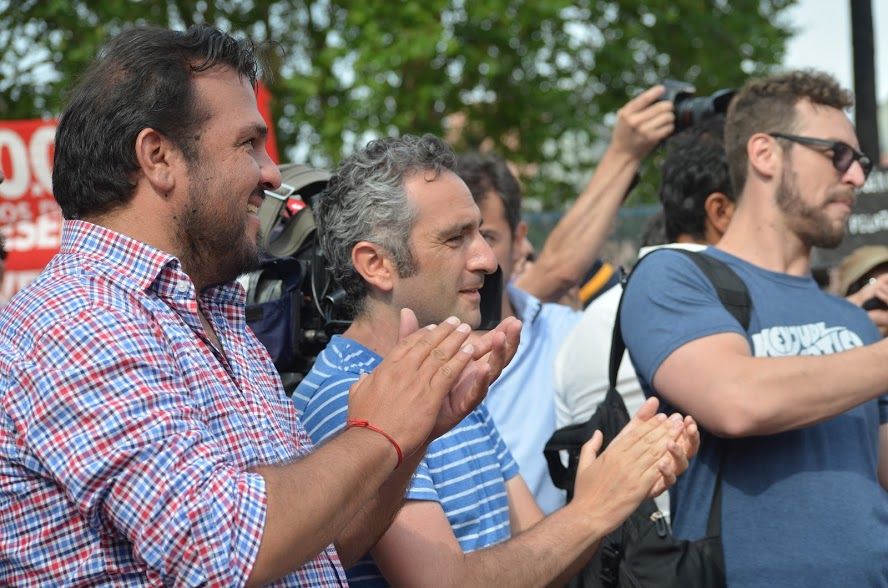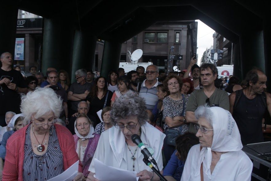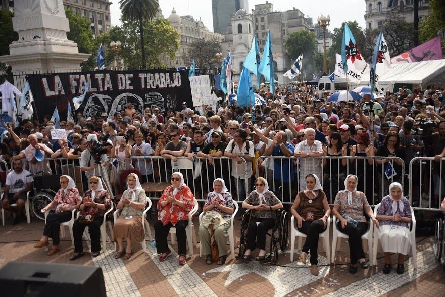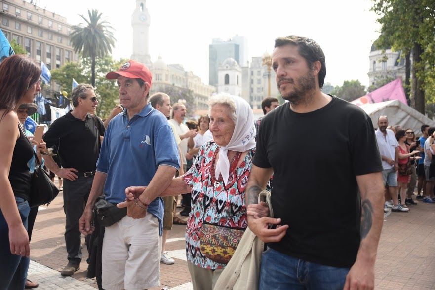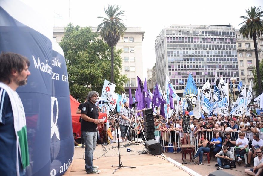 Walter Correa (Secretario General del Sindicato de Obreros Curtidores de la República Argentina, referente de la Corriente Federal de Trabajadores y diputado nacional electo por Unidad Ciudadana) y Daniel “El Tanoˮ Catalano, (Secretario General de ATE Capital - Central de Trabajadores de la Argentina) fueron los encargados de ponerle palabras extenuante pero a la vez reconfortante jornada de dos días seguidos. Desde el jueves, cada hora de movilización fue celebrada con aplausos, a la vez que cada una de las vueltas alrededor de la Plaza fue realizada con cantos alusivos al eje de la convocatoria y al rechazo que genera en la militancia el pedido de desafuero del juez federal Claudio Bonadío. A lo largo de ambas jornadas se hicieron presente, además, diversos dirigentes: Máximo Kirchner, Axel Kicilloff, Andrés Larroque, Mayra Mendoza, Agustín Rossi, Edgardo Depetri, Mario Secco, Francisco Durañona, Daniel Golln, Lepoldo Moreau, Carlos Castagneto; Florencia Saintout, Vanesa Silley, Lauro Grande, Miguel Funes, Lucía Portos, Mariano Recalde, Ana Jaramillo, Luis Alen, entre otros y otras. También, representantes de diversos gremios y trabajadores de PepsiCo. Antes de los discursos sobre el escenario ˮ“de espaldas a la Casa Rosadaˮ“, Hebe de Bonafini se dirigió al público presente desde su silla, debajo, en la primera fila. Allí, Hebe explicó la razón por la cual el acto de cierre estuvo a cargo de dos compañeros del ámbito sindical: “Nos da orgullo y mucho placer el camino que estos compañeros han tomado, el de cambiar el sindicalismo. Un camino revolucionario, transformador y único. Por eso pusimos la marcha en sus manosˮ. También agregó: que dejaba “en manos de los compañeros que, desde hoy y en más, en cada Marcha de la Resistencia serán los responsables de cerrar nuevas marchas ya que habrá muchas necesidadesˮ. Luego, Hebe agradeció “a los que vinieronˮ y afirmó sentirse “encantadaˮ de que el pueblo se movilice y marche. “Me hubiese encantado que todxs marchen las 24 horas. Pero ya va a pasar, estoy convencida de que van a sentir la Marcha de la Resistencia en las tripas, como la sentimos nosotrasˮ. Luego, el locutor a cargo del cierre, “Chocolateˮ, cedió la palabra a Walter Correa, de Curtidores. El dirigente de Curtidores comenzó agradeciendo la posibilidad a las Madres y comenzó que había preparado 10 puntos del proyecto de reforma laboral para demostrar cómo transformaba la vida de los trabajadores. "Esto de reforma no tiene nada, solo corre todo a favor de las patronales", advirtió. Entre los puntos, mencionó: la reducción a un año el tiempo para realizar un juicio laboral, el blanqueo que impide que se le reconozcan a los trabajadores los años trabajados en negro, la reducción de las indemnizaciones, la posibilidad de que la empresa reasigne tareas a un trabajador con el despido como única resistencia, la incorporación de la figura del trabajador independiente para "dejar a los trabajadores fuera de convenio", la baja de las cargas patronales y las pasantías "no para que los pibes aprendan sino para tener sueldos más bajos". Además, el dirigente sindical y diputado por Unidad Ciudadana calificó de "maquillaje" los puntos conseguidos por la cúpula de la CGT en su negociación con el ministro de Trabajo, Jorge Triaca, en una reunión en la Sociedad Rural, y recordó que el Banco de Horas ˮ”cuyo objetivo es reacomodar las horas trabajados para eliminar el pago de horas extraˮ” que se quitó del proyecto, sí será negociado en las mesas sectoriales por convenio, al igual que el Fondo de Cese Laboral. Correa también se refirió a la reforma tributaria al recordar que en "esta misma Plaza, hace un par de años atrás, algunos se cortaban las venas por el Impuesto a las Ganancias, pero en la reforma no hay ningún cambio al respecto a pesar de las promesas de campañaˮ. Por su parte, el Secretario General de ATE Capital, Daniel Catalano, convocó a la unidad para estar en las calles "la cantidad de veces que sean necesarias hasta que se retroceda con las leyes" de reforma previsional y laboral, que calificó de "salvajada", y pidió a los senadores y diputados no ser "los verdugos de los derechos del pueblo". “Hay que aprenderse los nombres y las caras de los verdugos: de los gobernadores, los senadores, los diputados y los legisladores, los responsables de la entrega de los derechos del pueblo", advirtió. En otro tramo, el titular de ATE Capital rescató que "la resistencia se está consolidando" y convocó a "construir la unidad" para enfrentar las reformas, al destacar la movilización que las dos CTA, la Corriente Federal de la CGT, Camioneros y hasta las Madres hizo frente al Congreso el 29 de noviembre, y que esta semana fue replicada masivamente por la CTA Autónoma, los partidos de izquierda y los movimientos sociales de base. "Sepan que es una salvajada votar una reforma laboral de estas características, votar una reforma previsional que saque derechos a nuestros adultos mayores", volvió a apuntar sobre el Congreso, y les recordó a los gobernadores condicionados por el acuerdo fiscal hecho con la Casa Rosada, que "la coparticipación dura poco". Y aseguró que "el compromiso asumido es estar en la calle la cantidad de veces necesarias hasta que se retroceda en las reforma, porque nosotros no vamos a ser cómplices". Catalano convocó a realizar la defensa de los derechos laborales y previsionales en nombre de "los años felices, que fueron los que parimos con Néstor y Cristina (Kirchner)", mientras que Correa recordó que el expresidente durante su gestión revocó la Ley Banelco ˮ”como se recuerda la Reforma Laboral de la Alianza, votada a partir del pago de coimas a legisladores peronistasˮ” y restituyó las paritarias. Antes de culminar, el titular de ATE Capital pidió ser "solidarios con nuestros compañeros presos políticos" y le advirtió al juez federal Claudio Bonadio, quien a