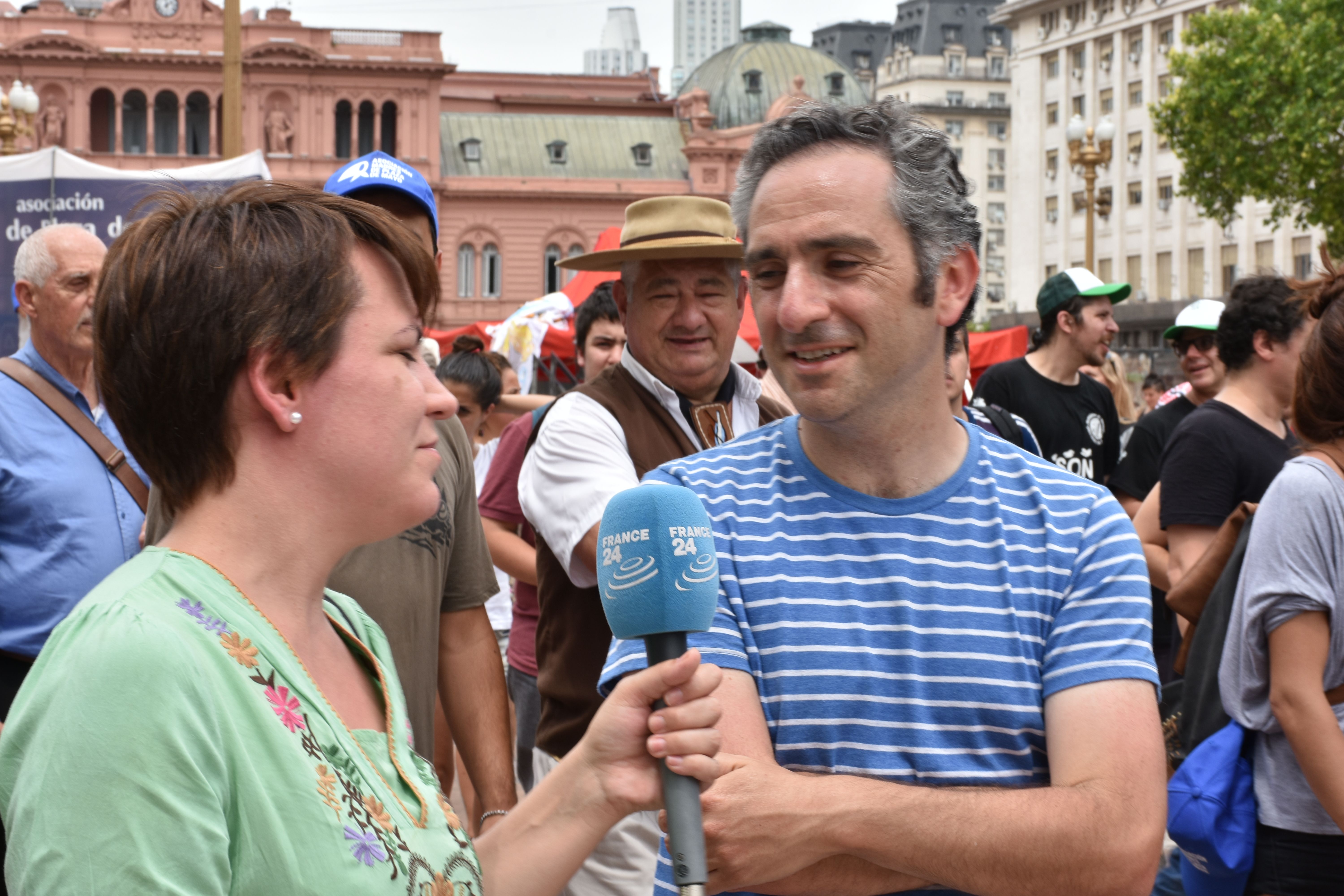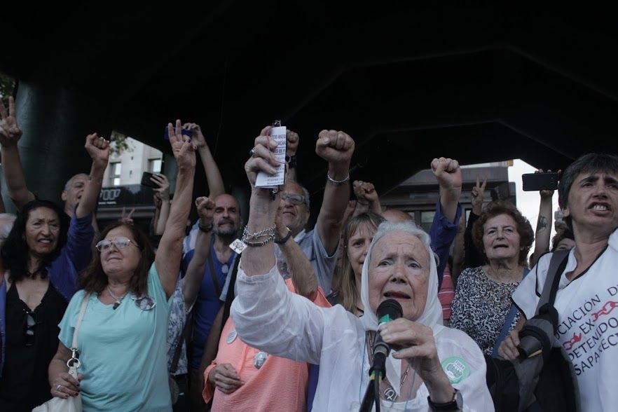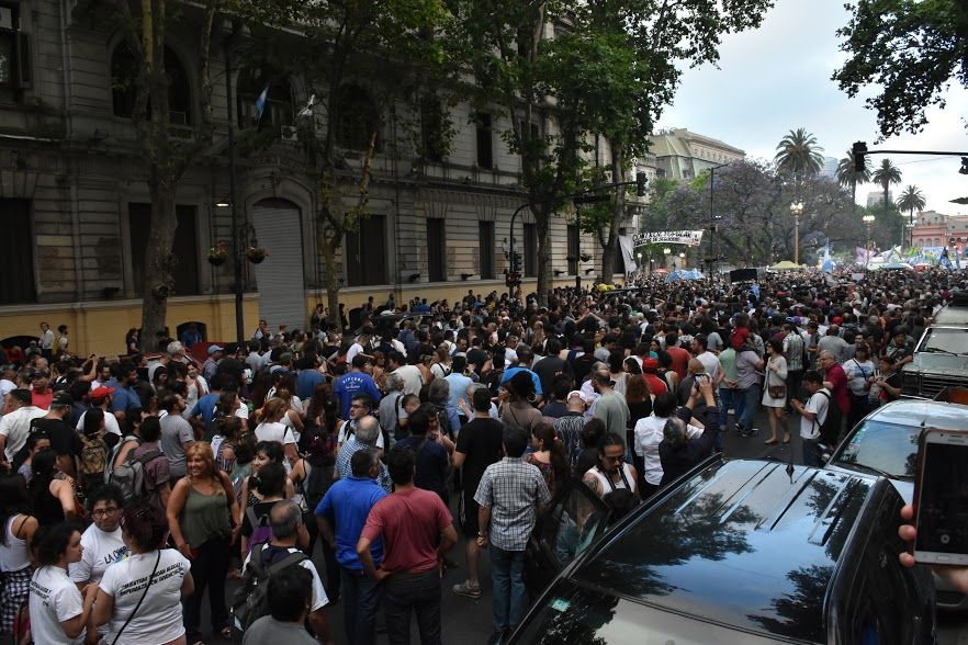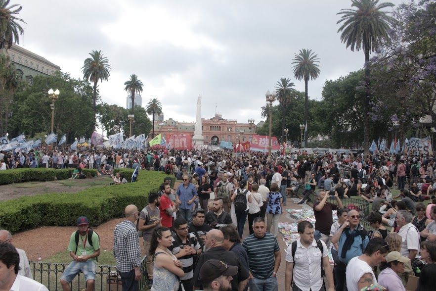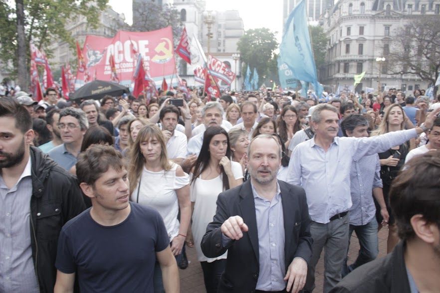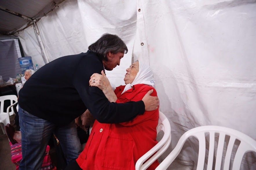 Walter Correa (Secretario General del Sindicato de Obreros Curtidores de la República Argentina, referente de la Corriente Federal de Trabajadores y diputado nacional electo por Unidad Ciudadana) y Daniel “El Tanoˮ Catalano, (Secretario General de ATE Capital - Central de Trabajadores de la Argentina) fueron los encargados de ponerle palabras extenuante pero a la vez reconfortante jornada de dos días seguidos. Desde el jueves, cada hora de movilización fue celebrada con aplausos, a la vez que cada una de las vueltas alrededor de la Plaza fue realizada con cantos alusivos al eje de la convocatoria y al rechazo que genera en la militancia el pedido de desafuero del juez federal Claudio Bonadío. A lo largo de ambas jornadas se hicieron presente, además, diversos dirigentes: Máximo Kirchner, Axel Kicilloff, Andrés Larroque, Mayra Mendoza, Agustín Rossi, Edgardo Depetri, Mario Secco, Francisco Durañona, Daniel Golln, Lepoldo Moreau, Carlos Castagneto; Florencia Saintout, Vanesa Silley, Lauro Grande, Miguel Funes, Lucía Portos, Mariano Recalde, Ana Jaramillo, Luis Alen, entre otros y otras. También, representantes de diversos gremios y trabajadores de PepsiCo. Antes de los discursos sobre el escenario ˮ“de espaldas a la Casa Rosadaˮ“, Hebe de Bonafini se dirigió al público presente desde su silla, debajo, en la primera fila. Allí, Hebe explicó la razón por la cual el acto de cierre estuvo a cargo de dos compañeros del ámbito sindical: “Nos da orgullo y mucho placer el camino que estos compañeros han tomado, el de cambiar el sindicalismo. Un camino revolucionario, transformador y único. Por eso pusimos la marcha en sus manosˮ. También agregó: que dejaba “en manos de los compañeros que, desde hoy y en más, en cada Marcha de la Resistencia serán los responsables de cerrar nuevas marchas ya que habrá muchas necesidadesˮ. Luego, Hebe agradeció “a los que vinieronˮ y afirmó sentirse “encantadaˮ de que el pueblo se movilice y marche. “Me hubiese encantado que todxs marchen las 24 horas. Pero ya va a pasar, estoy convencida de que van a sentir la Marcha de la Resistencia en las tripas, como la sentimos nosotrasˮ. Luego, el locutor a cargo del cierre, “Chocolateˮ, cedió la palabra a Walter Correa, de Curtidores. El dirigente de Curtidores comenzó agradeciendo la posibilidad a las Madres y comenzó que había preparado 10 puntos del proyecto de reforma laboral para demostrar cómo transformaba la vida de los trabajadores. "Esto de reforma no tiene nada, solo corre todo a favor de las patronales", advirtió. Entre los puntos, mencionó: la reducción a un año el tiempo para realizar un juicio laboral, el blanqueo que impide que se le reconozcan a los trabajadores los años trabajados en negro, la reducción de las indemnizaciones, la posibilidad de que la empresa reasigne tareas a un trabajador con el despido como única resistencia, la incorporación de la figura del trabajador independiente para "dejar a los trabajadores fuera de convenio", la baja de las cargas patronales y las pasantías "no para que los pibes aprendan sino para tener sueldos más bajos". Además, el dirigente sindical y diputado por Unidad Ciudadana calificó de "maquillaje" los puntos conseguidos por la cúpula de la CGT en su negociación con el ministro de Trabajo, Jorge Triaca, en una reunión en la Sociedad Rural, y recordó que el Banco de Horas ˮ”cuyo objetivo es reacomodar las horas trabajados para eliminar el pago de horas extraˮ” que se quitó del proyecto, sí será negociado en las mesas sectoriales por convenio, al igual que el Fondo de Cese Laboral. Correa también se refirió a la reforma tributaria al recordar que en "esta misma Plaza, hace un par de años atrás, algunos se cortaban las venas por el Impuesto a las Ganancias, pero en la reforma no hay ningún cambio al respecto a pesar de las promesas de campañaˮ. Por su parte, el Secretario General de ATE Capital, Daniel Catalano, convocó a la unidad para estar en las calles "la cantidad de veces que sean necesarias hasta que se retroceda con las leyes" de reforma previsional y laboral, que calificó de "salvajada", y pidió a los senadores y diputados no ser "los verdugos de los derechos del pueblo". “Hay que aprenderse los nombres y las caras de los verdugos: de los gobernadores, los senadores, los diputados y los legisladores, los responsables de la entrega de los derechos del pueblo", advirtió. En otro tramo, el titular de ATE Capital rescató que "la resistencia se está consolidando" y convocó a "construir la unidad" para enfrentar las reformas, al destacar la movilización que las dos CTA, la Corriente Federal de la CGT, Camioneros y hasta las Madres hizo frente al Congreso el 29 de noviembre, y que esta semana fue replicada masivamente por la CTA Autónoma, los partidos de izquierda y los movimientos sociales de base. "Sepan que es una salvajada votar una reforma laboral de estas características, votar una reforma previsional que saque derechos a nuestros adultos mayores", volvió a apuntar sobre el Congreso, y les recordó a los gobernadores condicionados por el acuerdo fiscal hecho con la Casa Rosada, que "la coparticipación dura poco". Y aseguró que "el compromiso asumido es estar en la calle la cantidad de veces necesarias hasta que se retroceda en las reforma, porque nosotros no vamos a ser cómplices". Catalano convocó a realizar la defensa de los derechos laborales y previsionales en nombre de "los años felices, que fueron los que parimos con Néstor y Cristina (Kirchner)", mientras que Correa recordó que el expresidente durante su gestión revocó la Ley Banelco ˮ”como se recuerda la Reforma Laboral de la Alianza, votada a partir del pago de coimas a legisladores peronistasˮ” y restituyó las paritarias. Antes de culminar, el titular de ATE Capital pidió ser "solidarios con nuestros compañeros presos políticos" y le advirtió al juez federal Claudio Bonadio, quien a