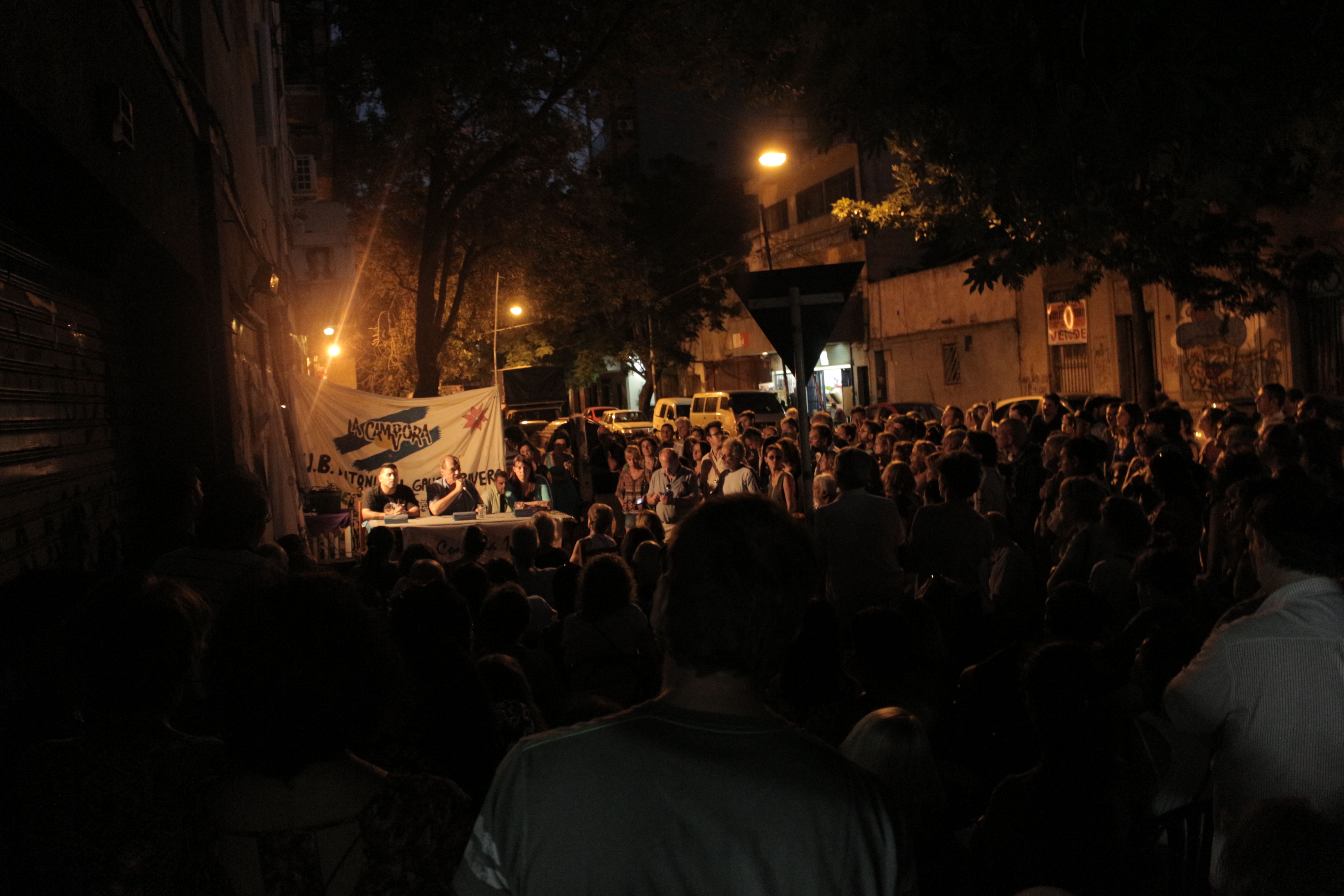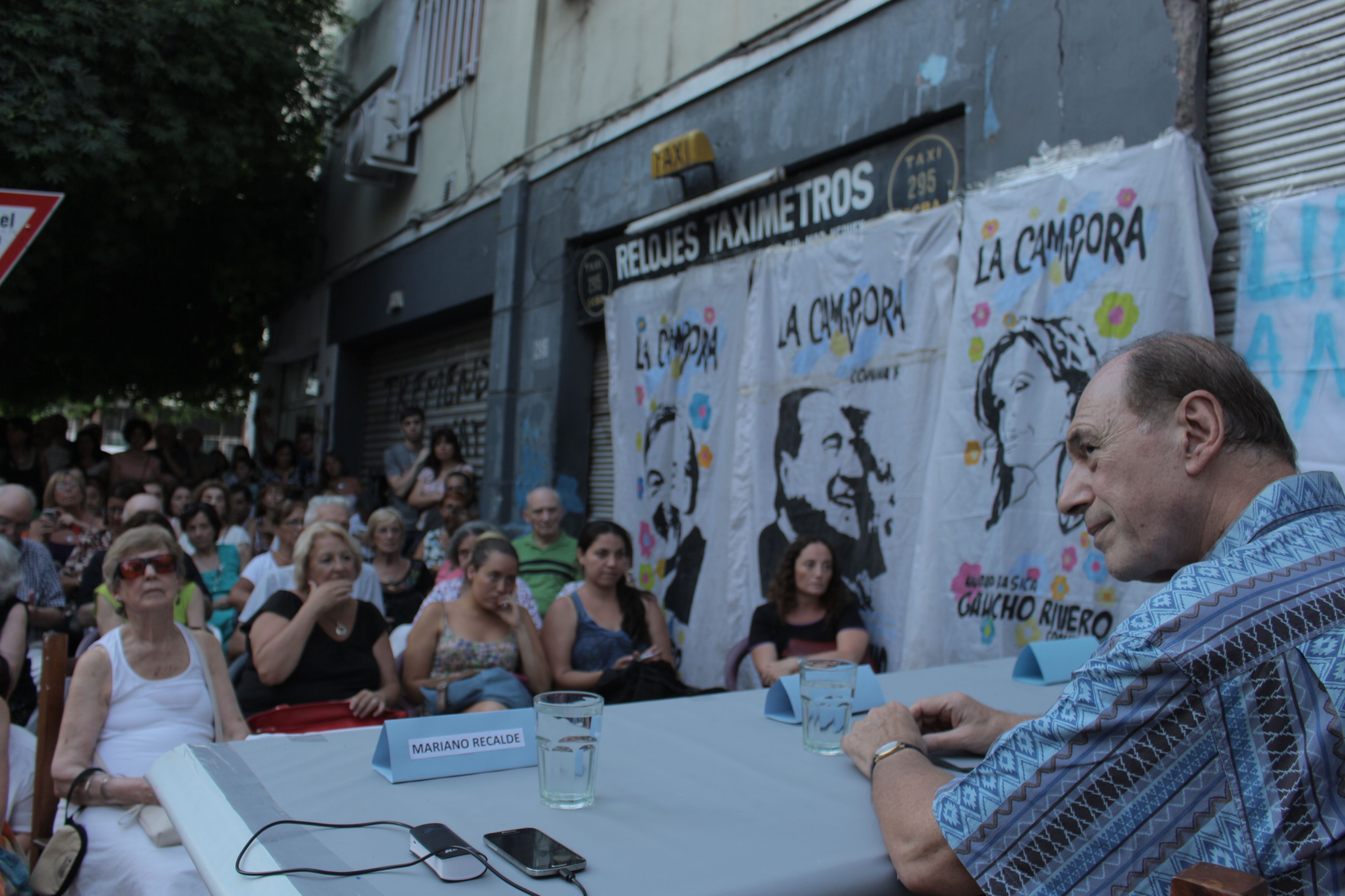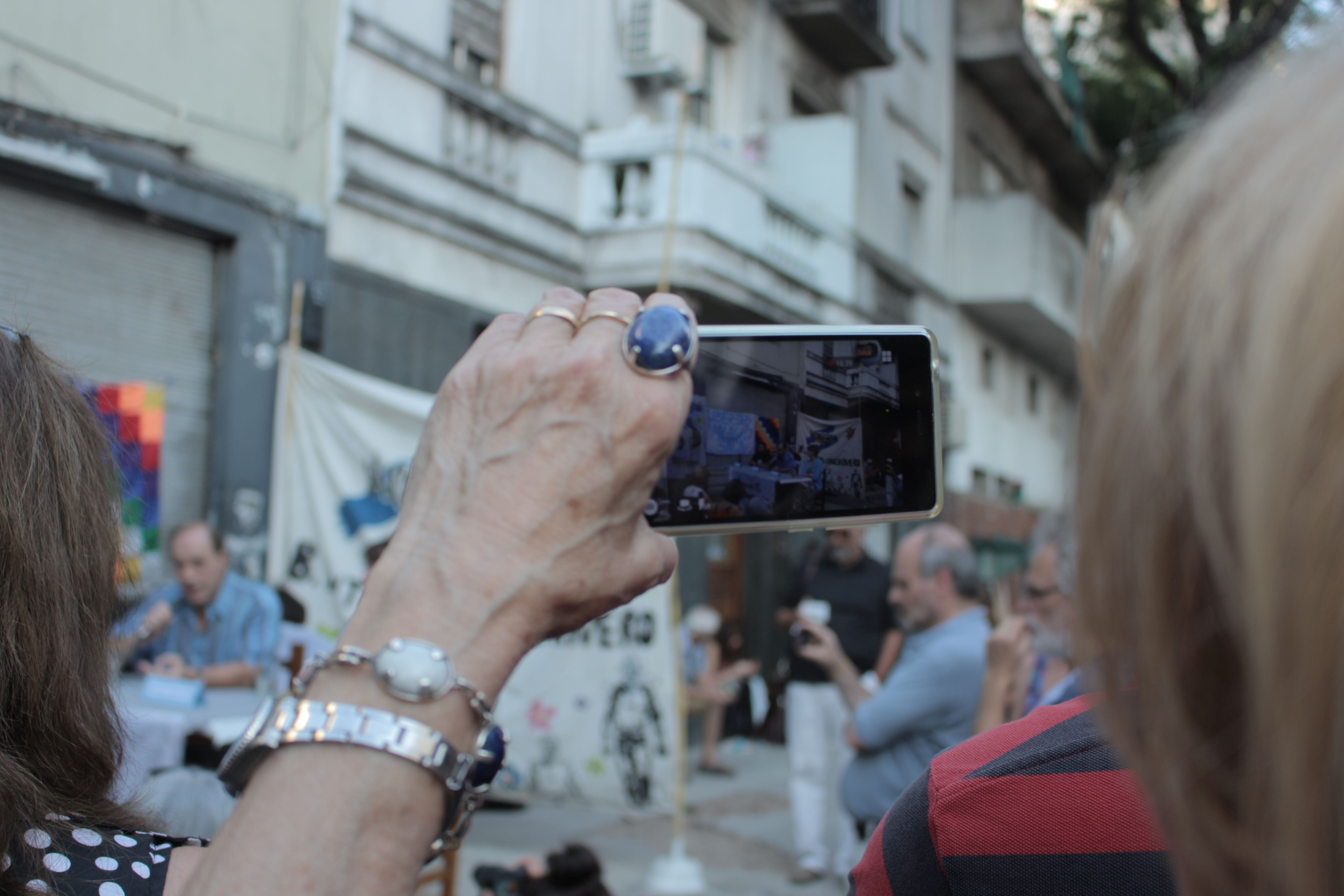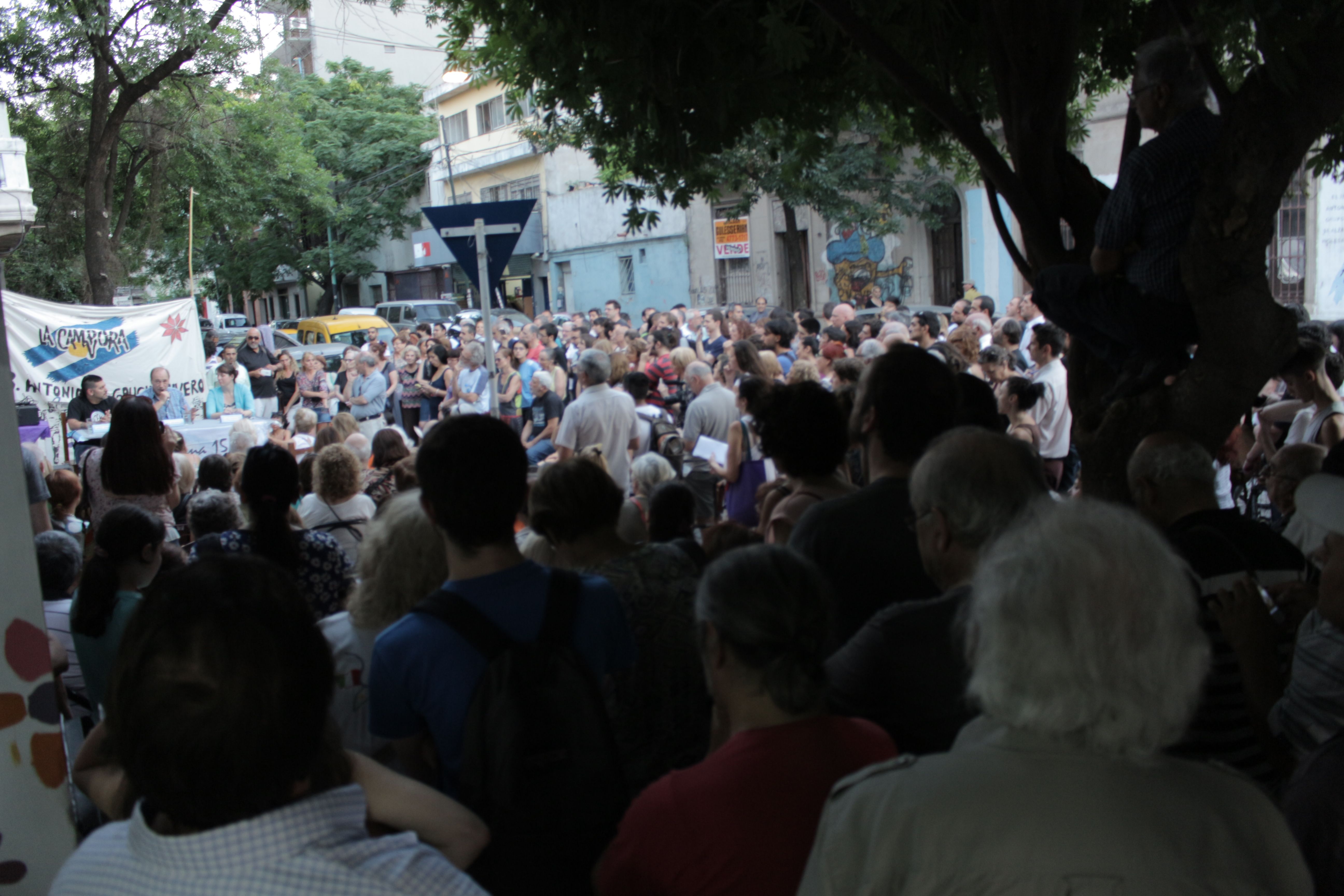 Por un momento, la charla tuvo una pausa ante el paso de un auto desde el que sus pasajeros cantaban “vamos a volver!ˮ, lo que se transmitió al espacio en el que vecinos sentados en reposeras, sillas y cajones de verdura y otros de pie escuchaban atentos a Zaffaroni. El canto al unísono de los asistentes se interrumpió por la voz elevada del jurista, que aclaró: “No vamos a volver porque no nos hemos ido.  ¡Acá estamos!ˮ. Todos estallaron en aplausos.