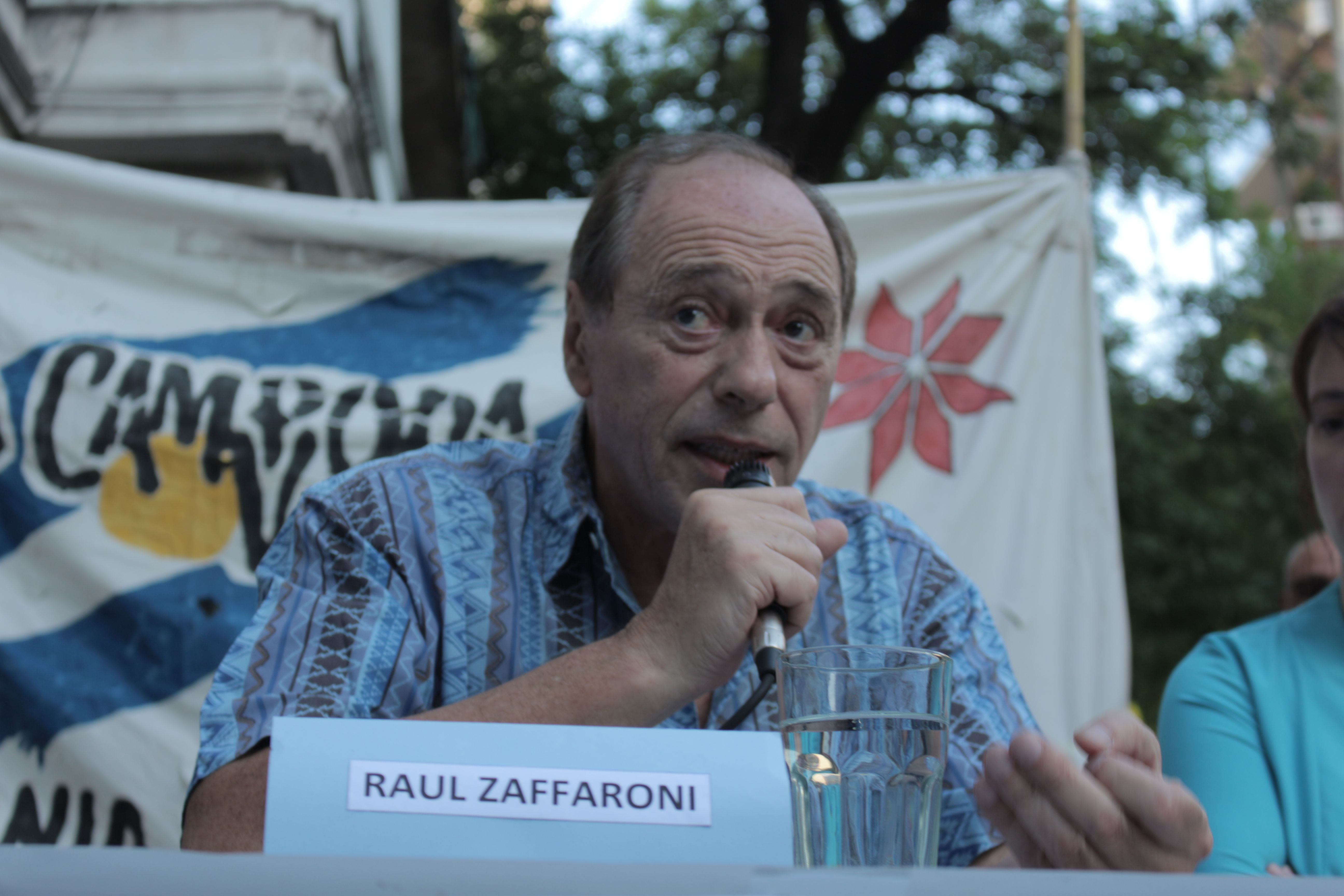 Luego de la presentación a cargo de la comunera Camila Rodríguez y del responsable de la Unidad Básica "Gaucho Rivero, Gabriel Bonnano, Zaffaroni advirtió: “Esto no es una simple alternancia política, vienen a imponer un nuevo régimenˮ. Explicó que “los que hoy están sentados en los ministerios son los empleados de las corporaciones, los representantes de los capitales transnacionalesˮ y sostuvo que “ni siquiera son los dueños, son empleados que lo único que pueden hacer es generar condiciones para mejorar la rentabilidad de sus empleadores, o los reemplazan por otrosˮ.
