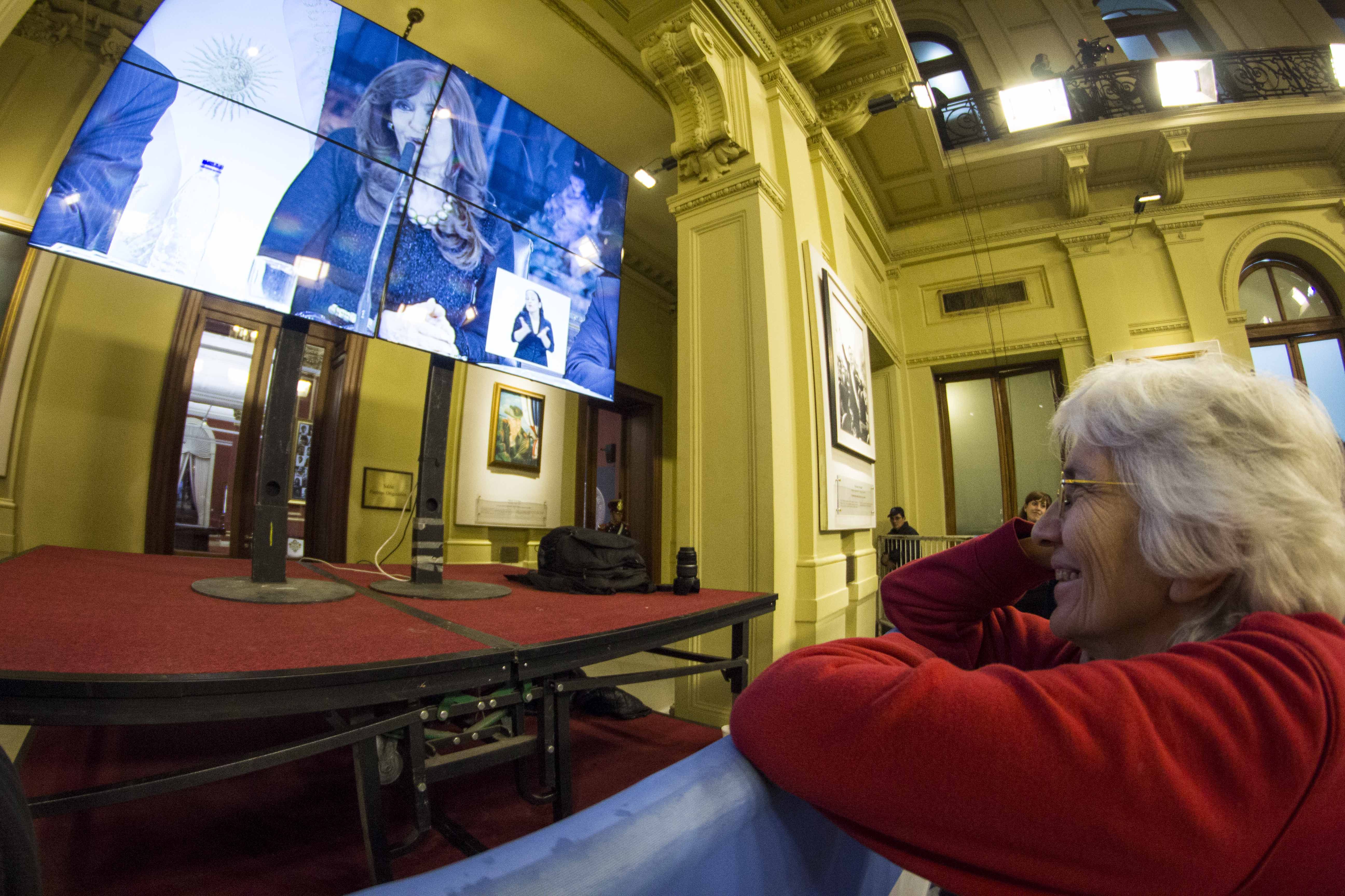“Ustedes y todo el pueblo son la garantía de que sus derechos no sean arrebatados, por eso es necesario que sigamos trabajando con esfuerzoˮ, dijo y escuchó con especial atención la respuesta de los militantes que seguían riendo y le cantaban emocionados que ´Cristina no se va, con el pueblo en la calle va a estar, no se va la jefa, no se va ´.