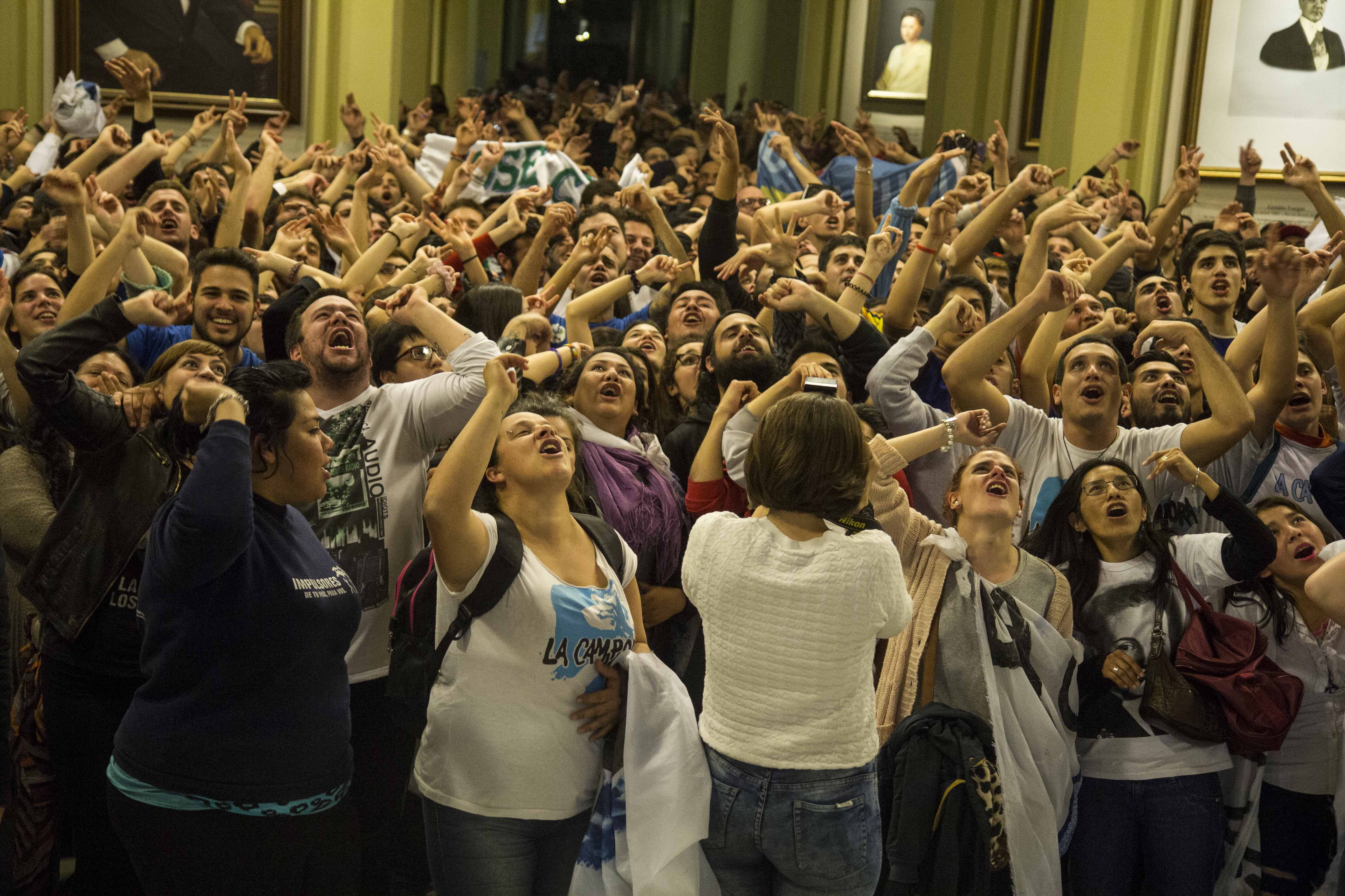 Al respecto, criticó a la oposición explicando que, si se hubiera aceptado el fallo, el próximo gobierno se iba a encontrar con un problema irremediable. "Tendrían que habernos apoyado los sectores de la oposición, pero prefirieron pegarse un tiro en el pie, por no decir en otro ladoˮ, dijo mientras los presentes aplaudían y acompañaban su discurso, expresándose desde los patios.