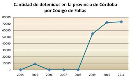 El Código de Faltas fue sancionado en 1994 por unanimidad de justicialistas y radicales, que también acordaron la creación de juzgados contravencionales que lo aplicarían. Pero aduciendo la falta de presupuesto los gobiernos de ambos partidos los pospusieron una y otra vez. La facultad de instruir y juzgar a todos los contraventores quedó en manos de la policía, que no es entonces un órgano auxiliar de la justicia sino un actor político que disputa el poder en el escenario público. El mismo año en que la Constitución reformada incorporó diez Tratados Internacionales de Derechos Humanos que obligan a todos los estados provinciales, el Código de Faltas suprimió todos esos derechos en Córdoba y se erigió en instrumento de disciplinamiento social de los sectores marginados y herramienta de gobierno de la protesta social. Cada vez que se lo modificó fue para profundizar su carácter represivo. El comisario puede imponer pena de multa, inhabilitación para ejercer una actividad en infracción, decomiso de un bien utilizado en la falta, prohibición de concurrencia a ciertos espectáculos, cursos educativos, tratamiento terapéutico, trabajo comunitario o arresto. En la práctica esta bonita diversidad se reduce al arresto del contraventor, algo que dificulta su acceso al trabajo y la educación.