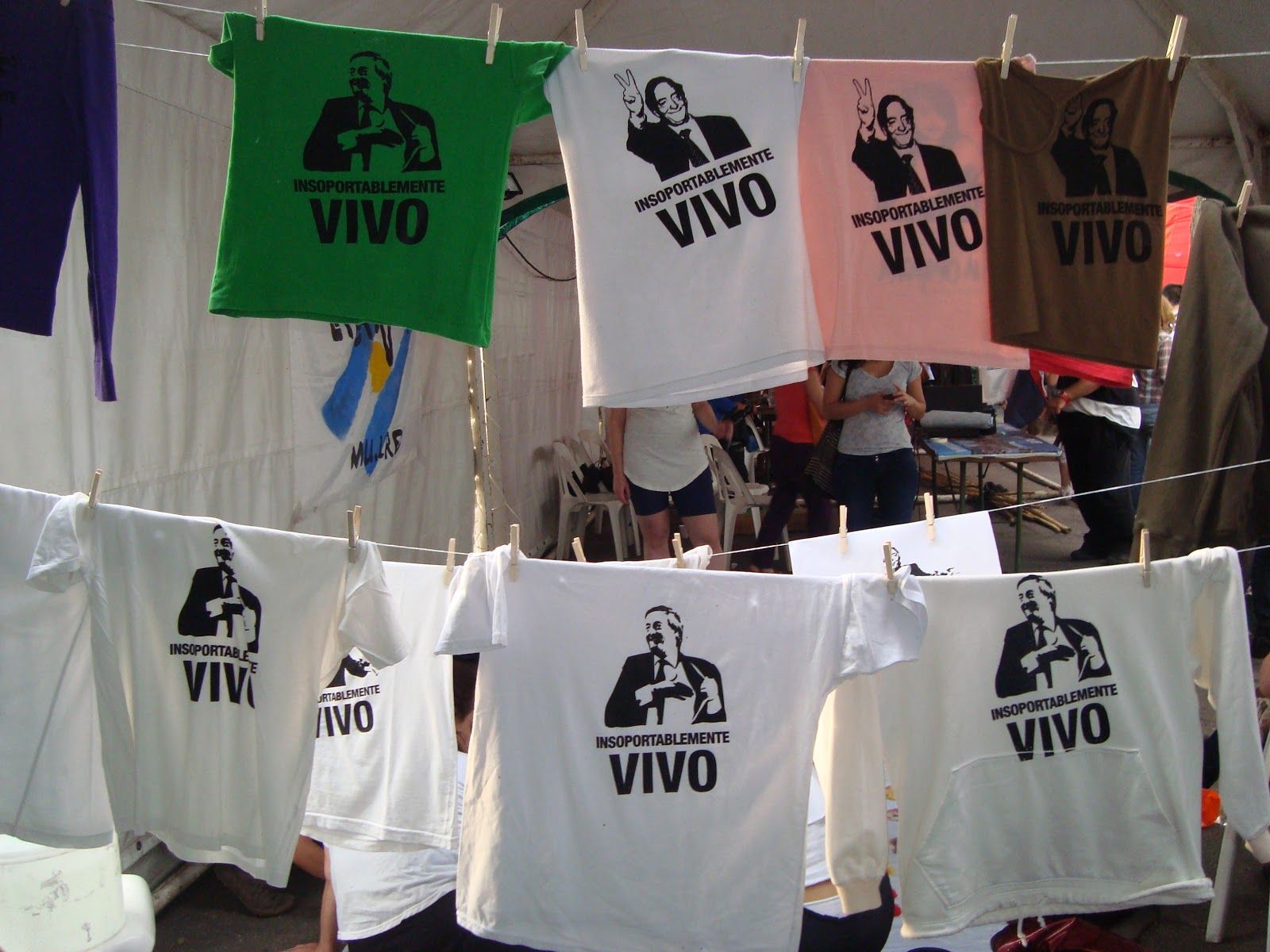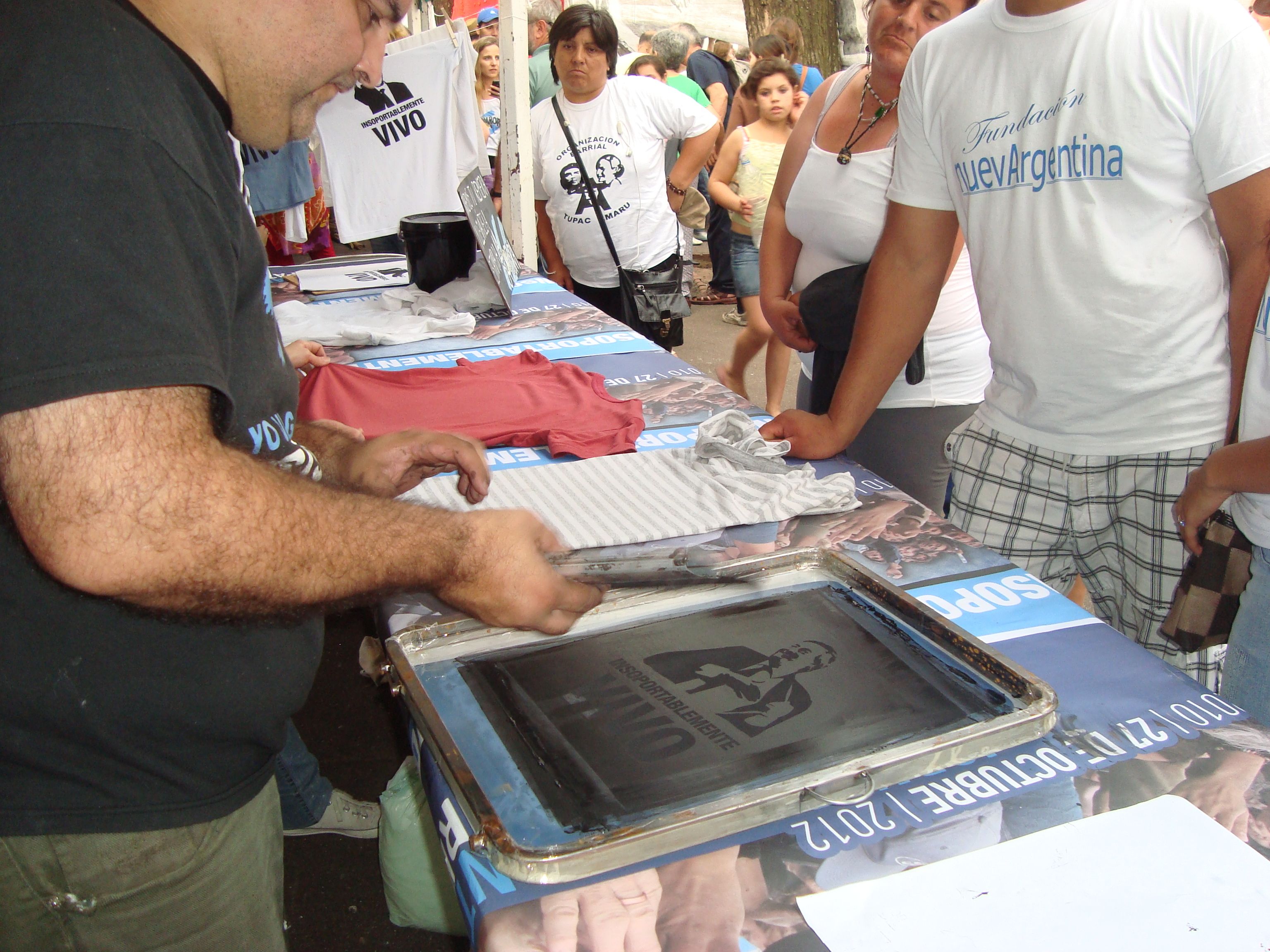 Durante toda la tarde, los compañeros de La Cámpora realizaron impresiones de remeras con la técnica de impresión serigráfica. Con tres motivos distintos del lema convocante "Insoportablemente vivo" junto con la imagen de Néstor, la propuesta resultó un éxito: se realizaron miles de remeras que después paseaban por todo el Parque haciéndose notar.