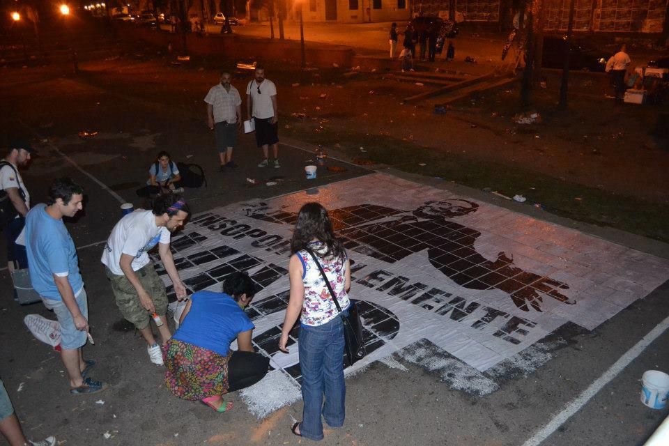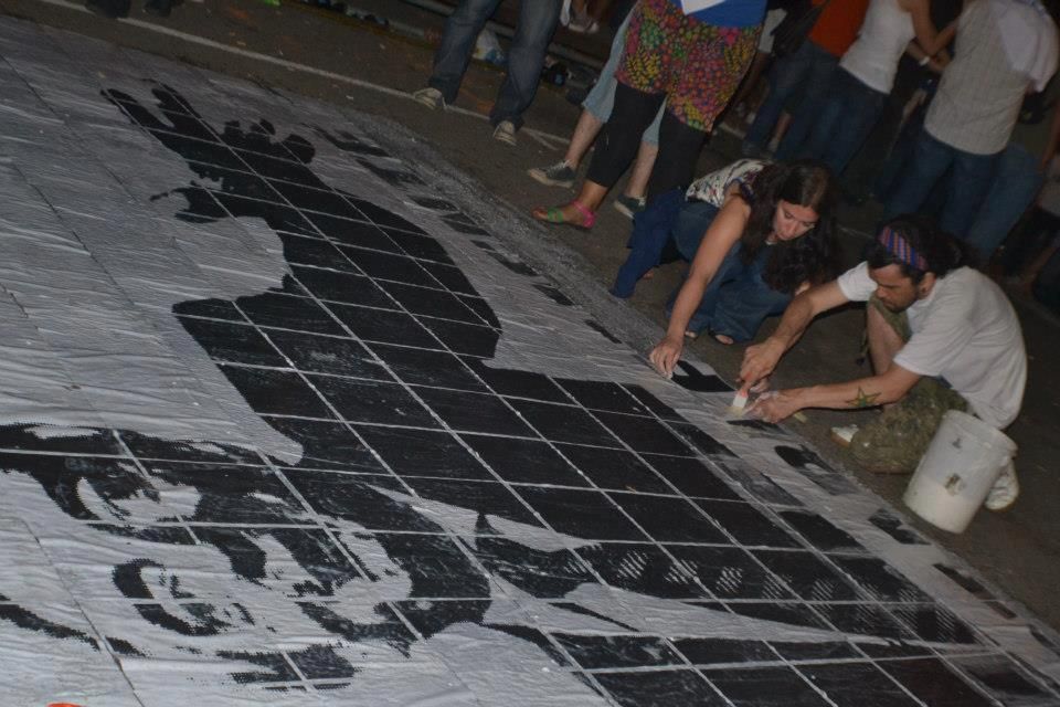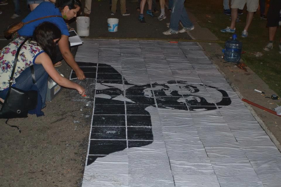 Al anochecer, antes de la desconcentración, compañeros de La Cámpora en Parque Chacabuco realizaron un mural compuesto por 430 hojas a4 en el piso del lugar, dejando plasmada la imagen del compañero Néstor Kirchner. Curiosos se acercaron y se sumaron a la propuesta, colaborando con la intervención sobre el playón del anfiteatro donde horas antes miles y miles de personas se habían congregado para recordar a uno de los más grandes líderes del pueblo argentino que tuvo la valentía y el compromiso militante e incansable para transformar nuestra historia que continúa hoy con nuestra compañera Presidenta Cristina Fernández.