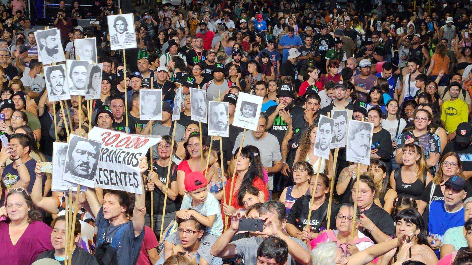 Para cerrar el acto, la compañera Taty Almeida nos dirigió unas emotivas palabras recordando a los 30.000: “Escuchá bien vos, Milei. Acá no hubo guerra, fue un genocidio. Un genocidio que dejó 30.000 agujeros. Con mucho orgullo decimos, por supuesto, que no fue ni por estúpidos ni por perejiles, eran militantes políticos”.
