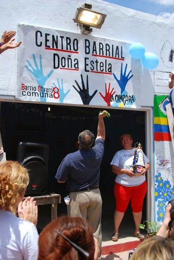 Con la bendición del Padre Facundo, se descolgó el velo que tapaba el cartel pintado por los vecinos y militantes con el nombre “Centro Barrial Doña Estelaˮ. En un ambiente de gran emoción y felicidad los vecinos disfrutaban de la inauguración luego de tanto esfuerzo.
