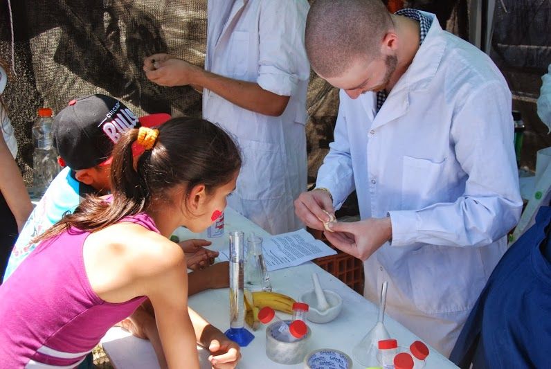 Alrededor de las 8.30 se comenzó con la decoración del barrio con globos y banderines, mientras que otros compañeros pintaban un mural afuera del Salón de Usos Múltiples. A su vez se montaba una Feria de Ciencias organizada por militantes de La Cámpora Universidad, que rápidamente llamó la atención de los vecinos del barrio que se acercaban con curiosidad. Del otro lado se colocó un gazebo donde los chicos hacían fila para pintarse la cara y el cuerpo con maquillaje artístico.