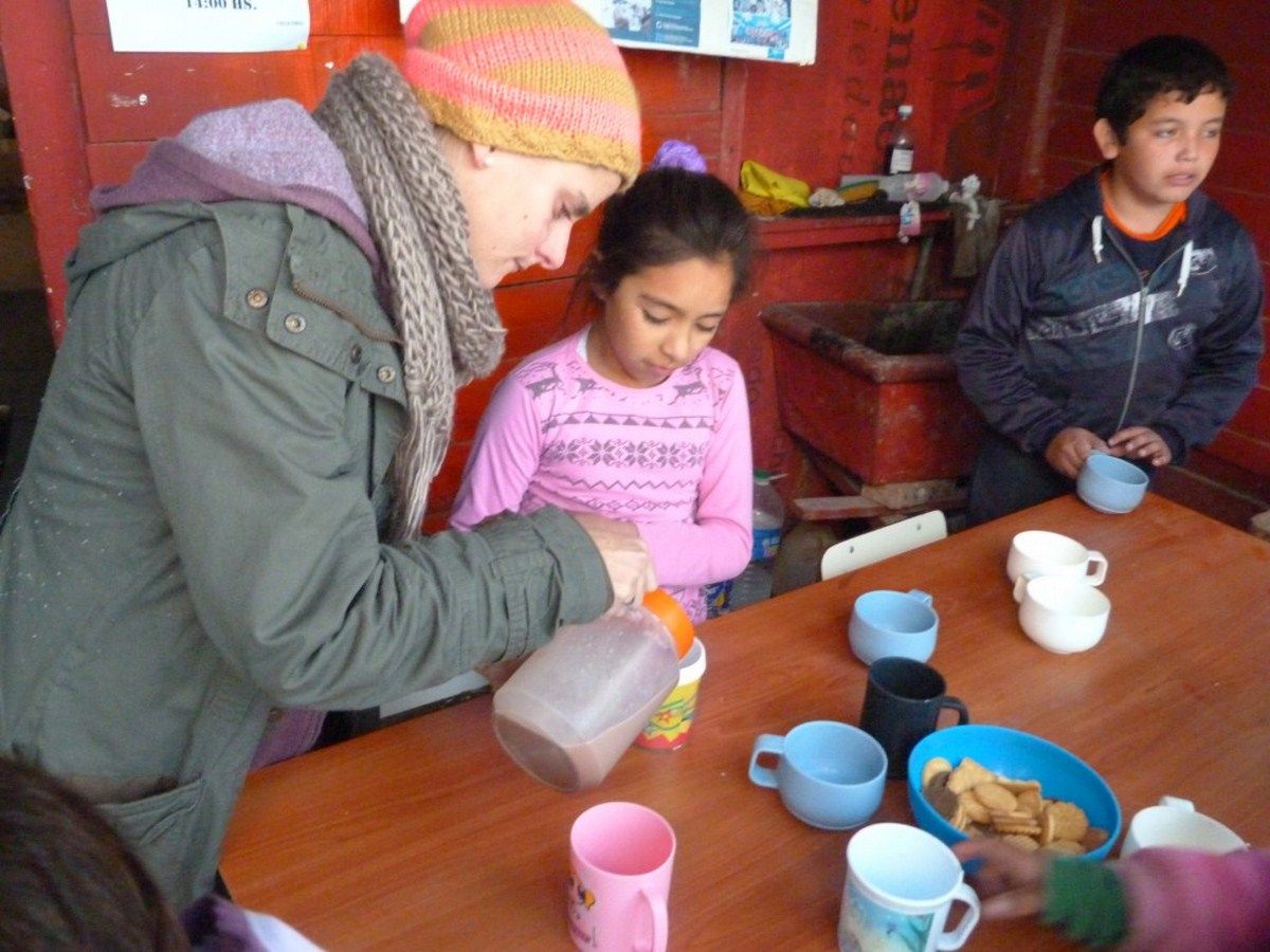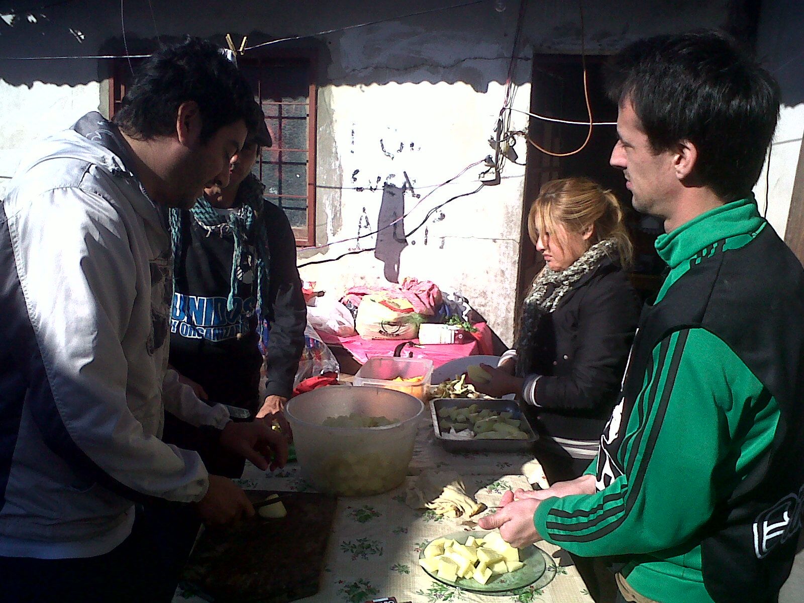 Por último, en Villa Elvira los más chicos disfrutaron de la escuela de fútbol y básquet que se dicta todos los sábados y le pusieron ritmo a la tarde con una murga que a eso de las 14 horas musicalizó la zona de 1 y 90. Además, se limpiaron terrenos, zanjas y se construyeron casillas para los vecinos de la zona que fueron afectados por el temporal del 2 de abril. La actividad culminó con títeres y payasos en 115 y 93, lugar donde el locro le puso color y le dio cierre a otro largo día de trabajo solidario.