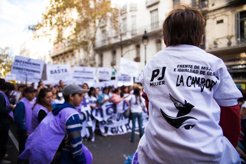 Militantes de La Cámpora junto a miles de personas participaron de la marcha #NiUnaMenos