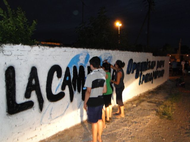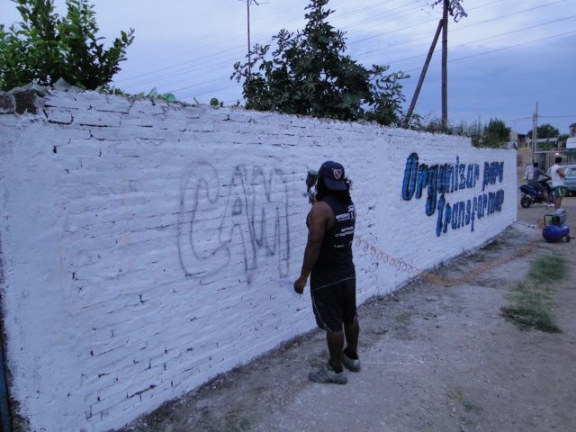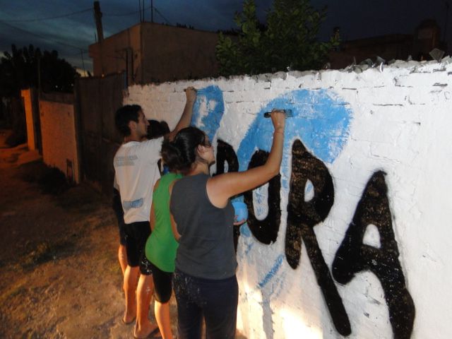 Los compañeros de La Cámpora Florencio Varela se dieron cita en el barrio Libertad el pasado sábado 20 de enero, para llevar adelante la pintada de un mural en uno de los paredones del barrio. Durante toda la tarde, los compañeros se dedicaron a la tarea de darle forma a las imágenes de Néstor y Cristina, volcando su compromiso y militancia en la zona y llenando de color esa cuadra.