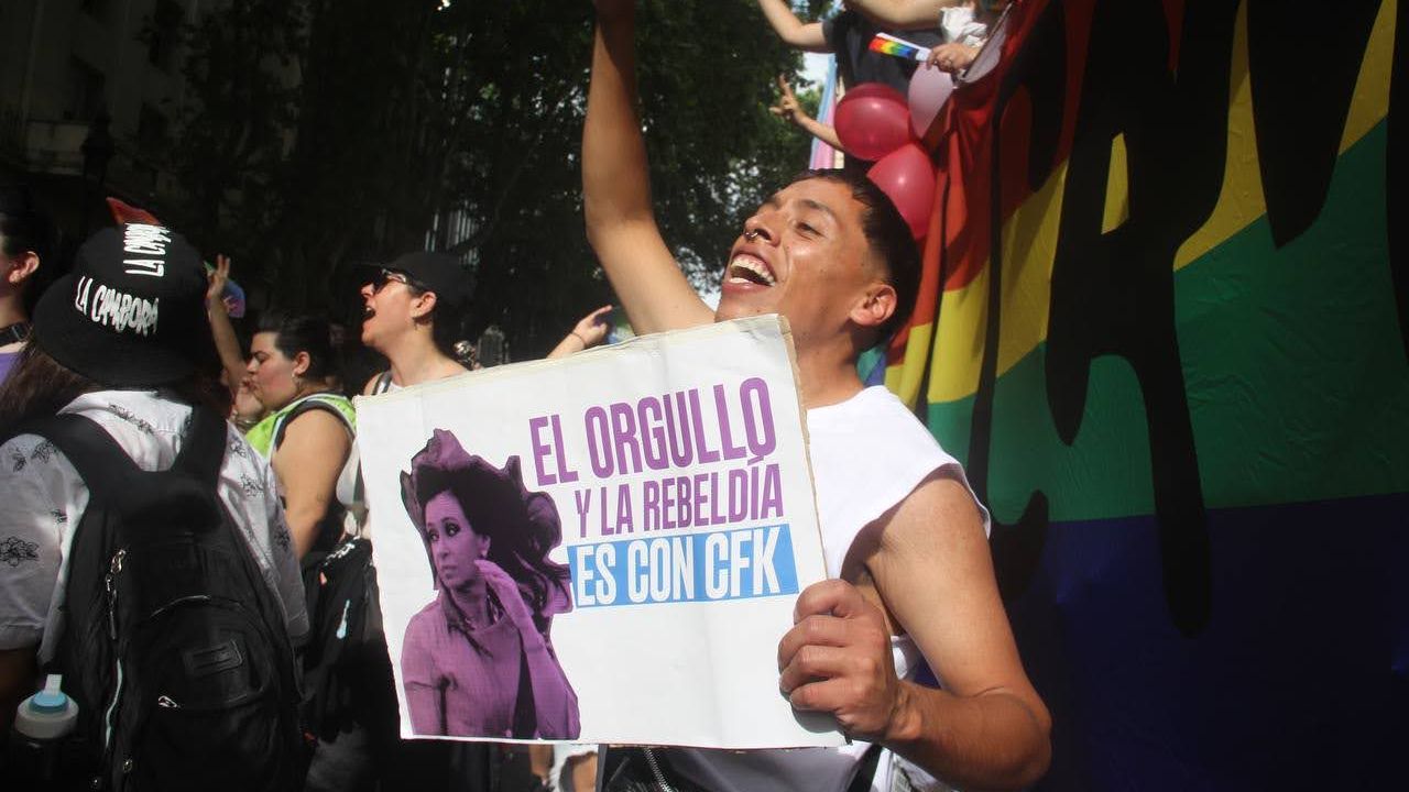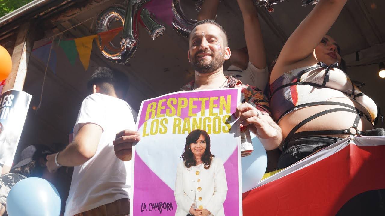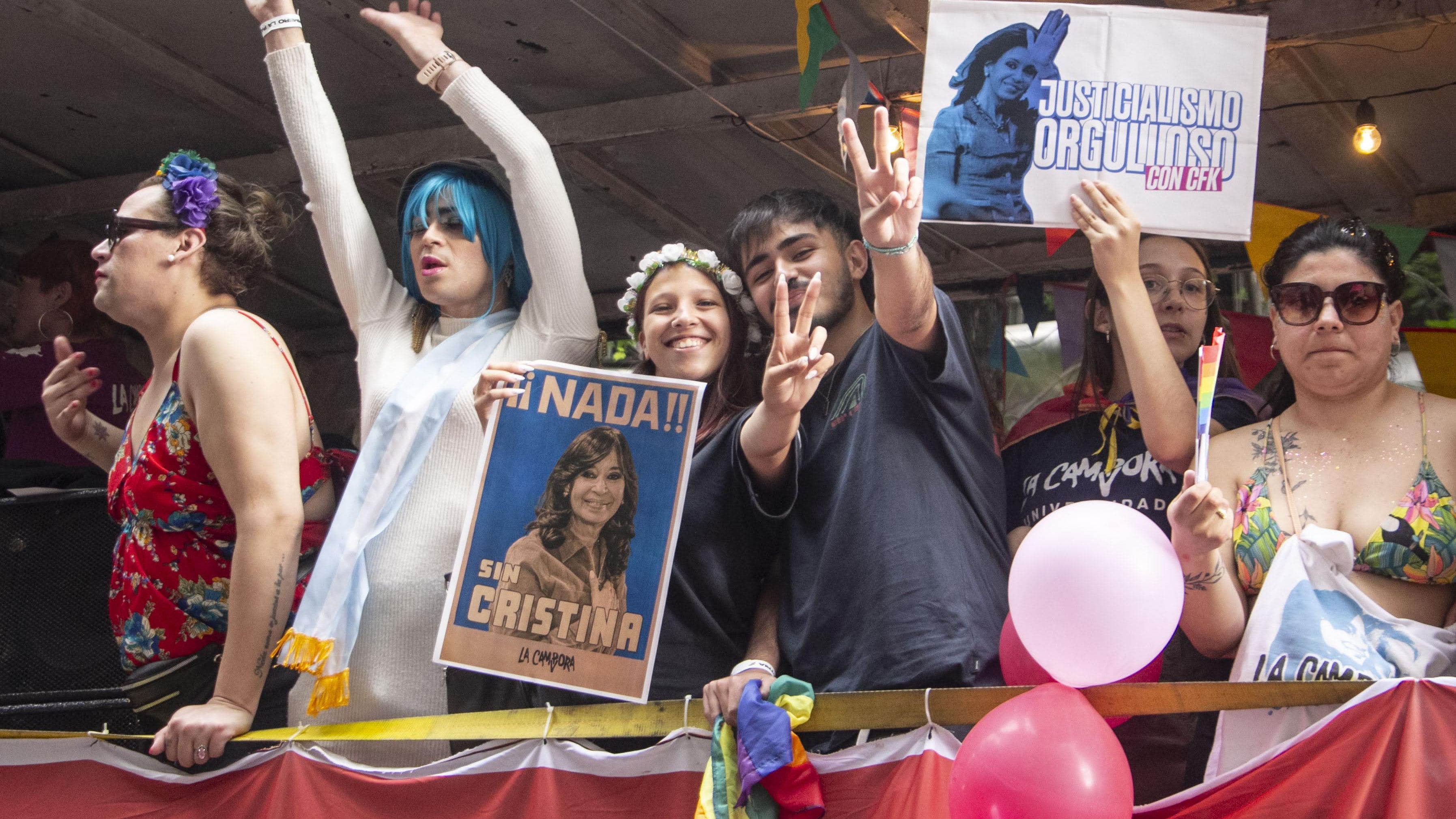 Mientras marchábamos se acercaba gente a los costados con sonrisas enormes y los dedos en “V” agitando con mucha emoción. Algunes filmaban y nos pedían fotos. Me hizo acordar a la marcha del 24 de marzo. Recordé que al igual que aquel día, antes de la marcha tenía miedo de que pasara algo con la policía o con alguien que se acercara a violentarnos. Es que este año se profundizaron los discursos de odio, esta vez promovidos como política de Estado desde el gobierno de Javier Milei, en sus redes personales y las de sus funcionarios. Tenemos un gobierno que desfinanció todo lo que tiene que ver con género y diversidad y hasta cerraron el INADI y el Ministerio de Géneros y Diversidad. No sólo eso sino que lo festejaron como logro de gestión. Era natural sentir cierto temor. Me dio tranquilidad, una vez ahí, ver que algunas cosas no cambian y que el cariño y el amor que genera Cristina nos llega también a sus militantes.