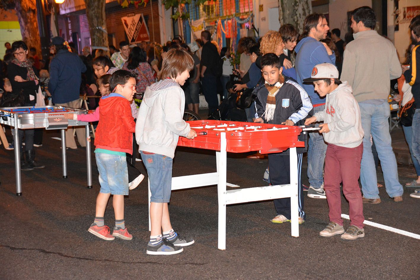 Alrededor de las 16 hs comenzaron a llegar los primeros vecinos, mientras terminaban los preparativos para lo que sería una extensa jornada, que finalizó a puro baile pasada la 1 de la mañana. Durante la tarde y hasta las primeras horas de la noche, se desplegaron en la calle varios espacios destinados a la felicidad de los únicos privilegiados de la Patria: los niños. El metegol, las simultáneas de ajedrez y el espectáculo del circo fueron las instancias que llamaron la atención de los pibes, siempre dispuestos a jugar y divertirse.
