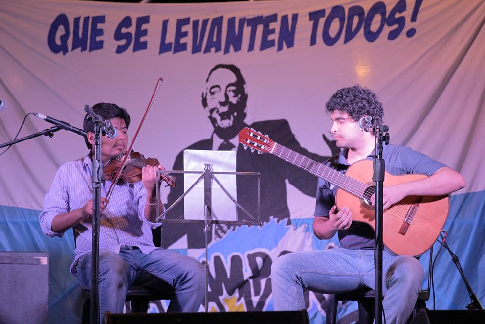 A partir de las 20 hs y hasta finalizada la jornada, un numeroso grupo de artistas deleitó a todos con su exquisita música, que cosechó reiterados aplausos. Julio Coviello inauguró la seguidilla de compositores, intérpretes e instrumentistas de lujo y, entre otros grandes artistas, lo siguió Ignacio Copani. La peña finalizó a baile y canto, al compás de la música de la banda de cumbia “El Retutuˮ. Sobre el cierre, los compañeros exteriorizaron su inmensa alegría desde una mística indescriptible, la que los une como colectivo político y los hace militar todos los días en el barrio, con amor y compromiso, el proyecto nacional y popular que viene transformando el país desde hace 12 años y que sembró para siempre una juventud convencida de que su tarea fue, es y será organizar al pueblo para liberar la Nación.