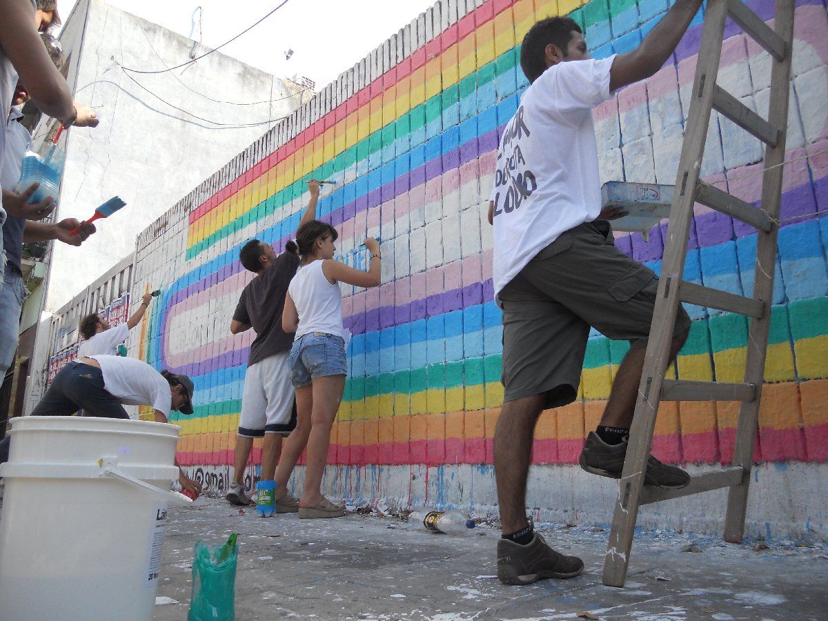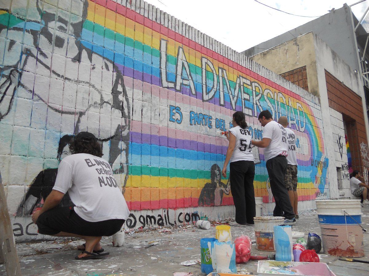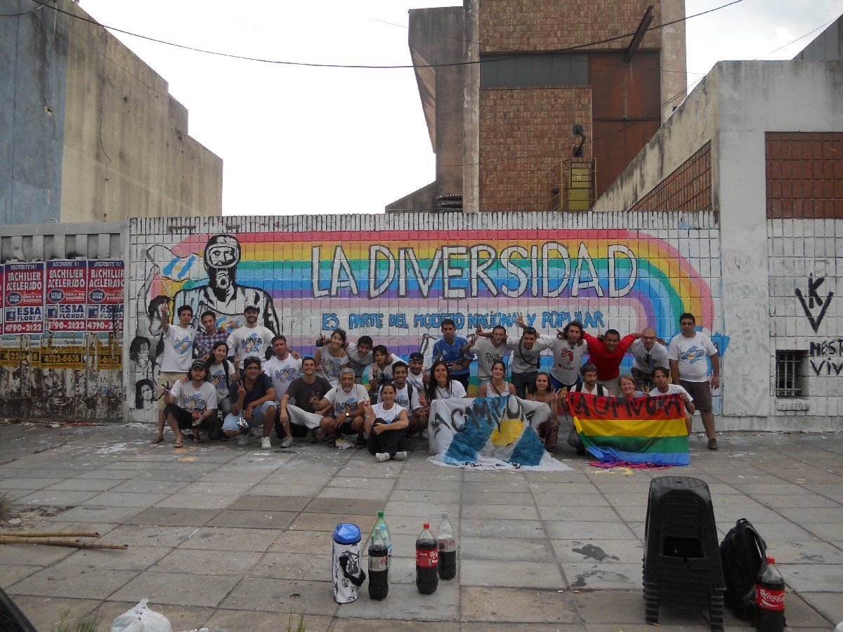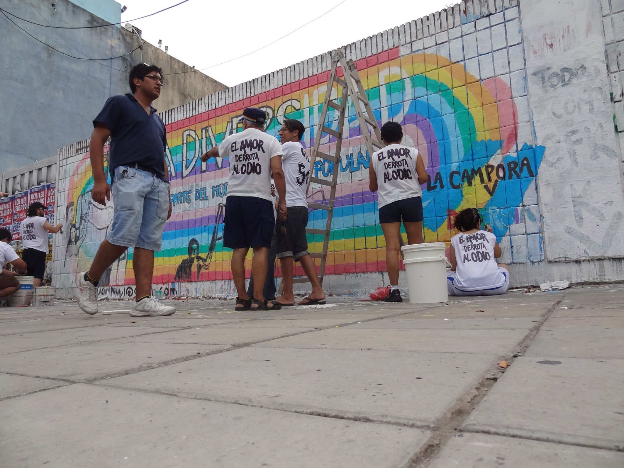 Mientras se realizaba el mural, numerosos compañeros se abocaron a difundir entre los vecinos un glosario de diversidad sexual. Asimismo se repartieron volantes conteniendo información acerca de las iniciativas de la organización en el distrito. La tarde fue amenizada con una radio abierta que contribuyó a compartir la mística y la alegría de formar parte de un cambio histórico, donde la inclusión y la solidaridad pasan a ser pilares fundamentales de nuestra sociedad.