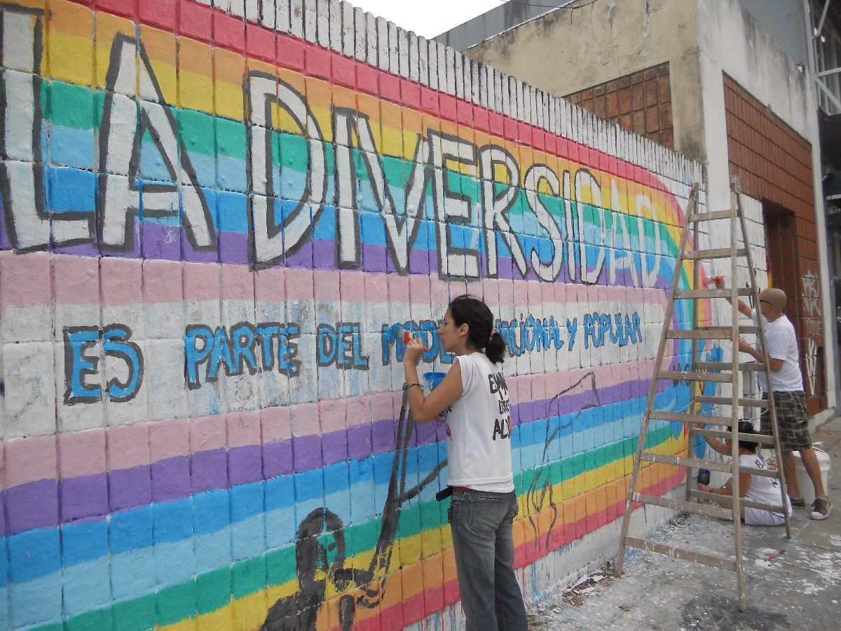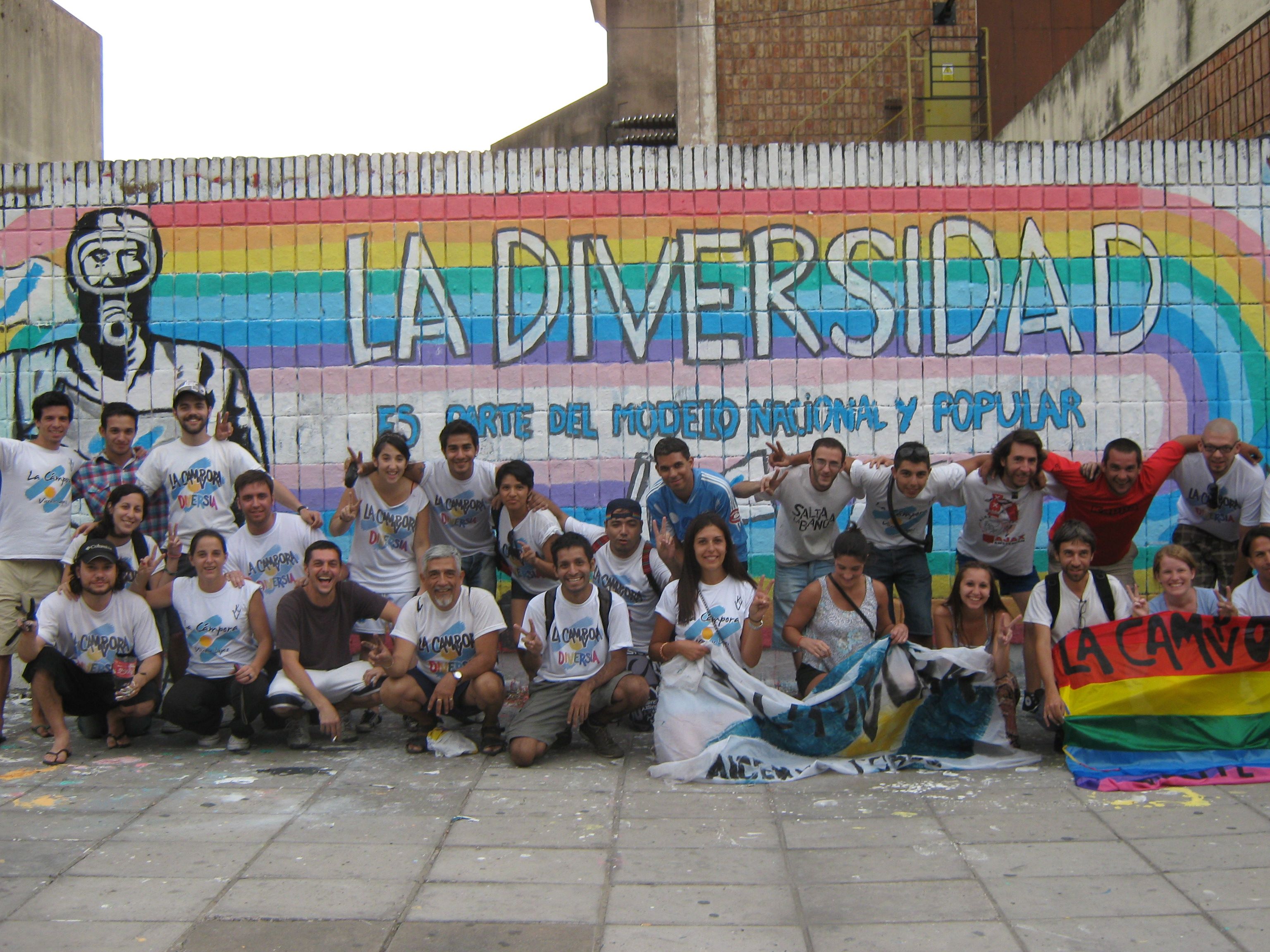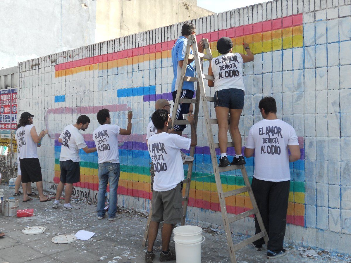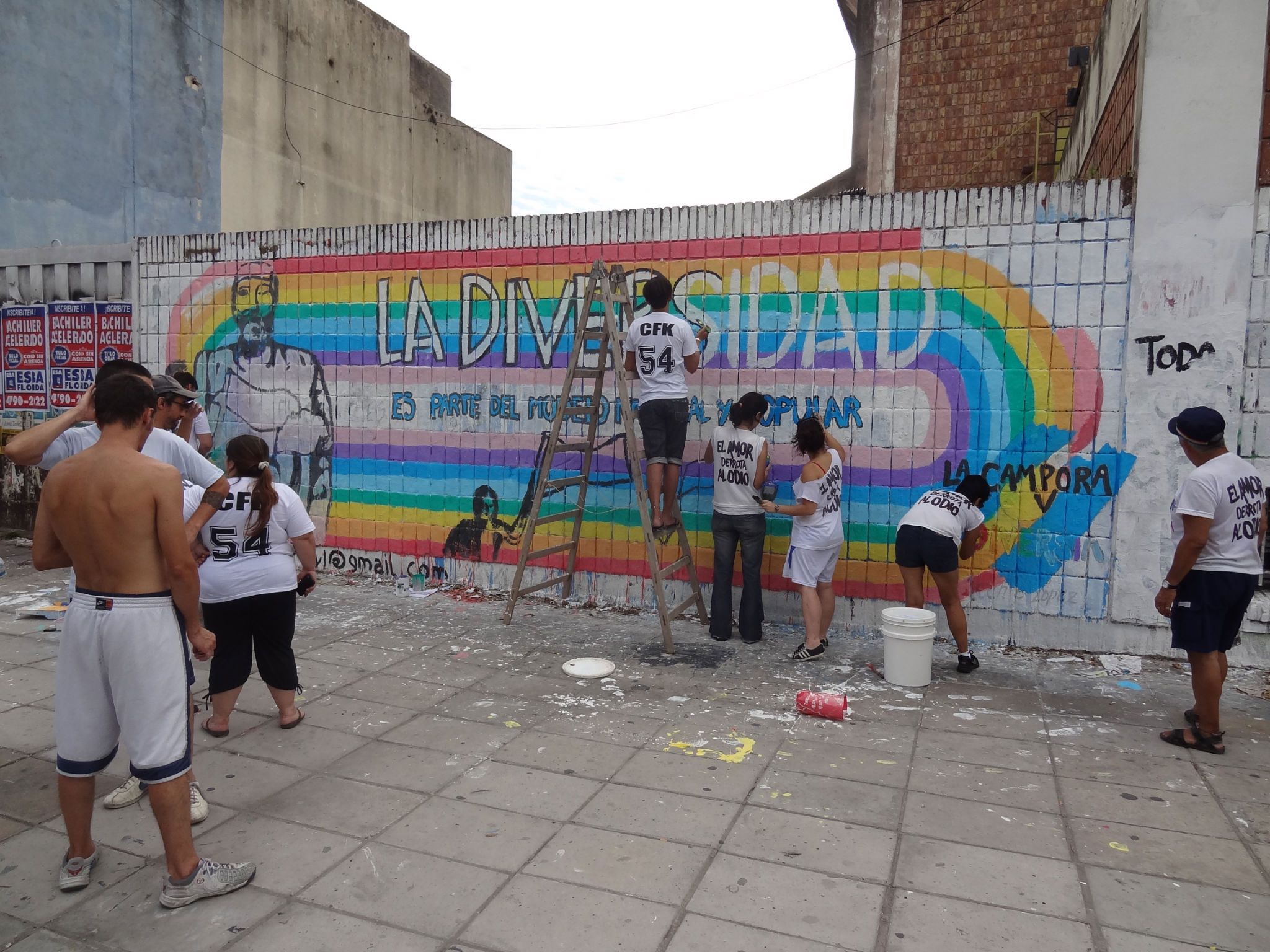 Mientras se realizaba el mural, numerosos compañeros se abocaron a difundir entre los vecinos un glosario de diversidad sexual. Asimismo se repartieron volantes conteniendo información acerca de las iniciativas de la organización en el distrito. La tarde fue amenizada con una radio abierta que contribuyó a compartir la mística y la alegría de formar parte de un cambio histórico, donde la inclusión y la solidaridad pasan a ser pilares fundamentales de nuestra sociedad.