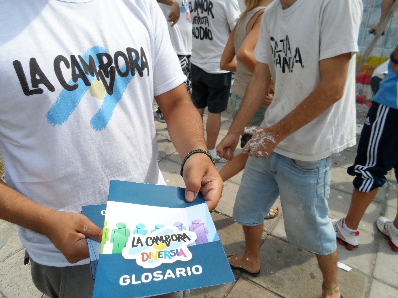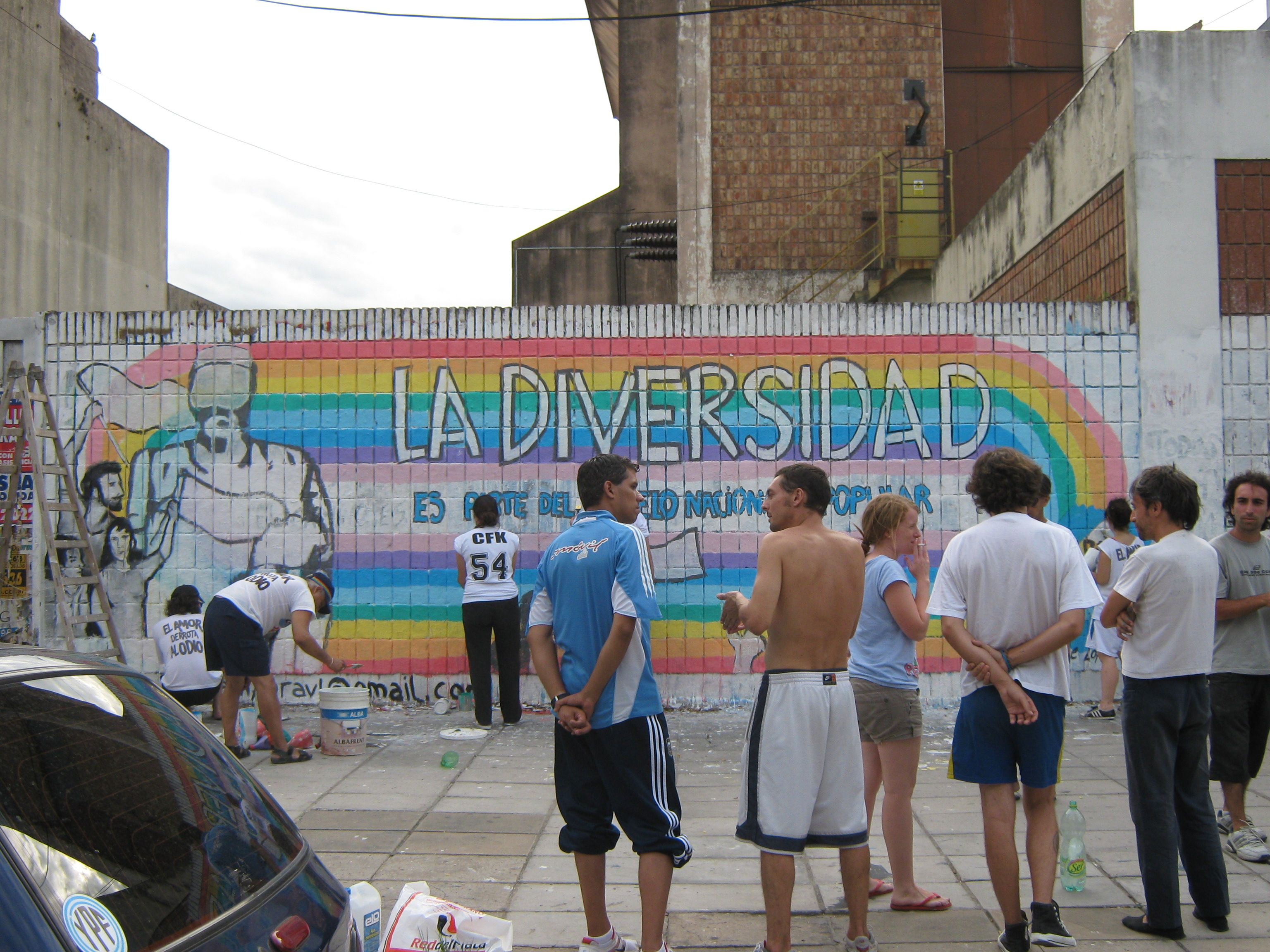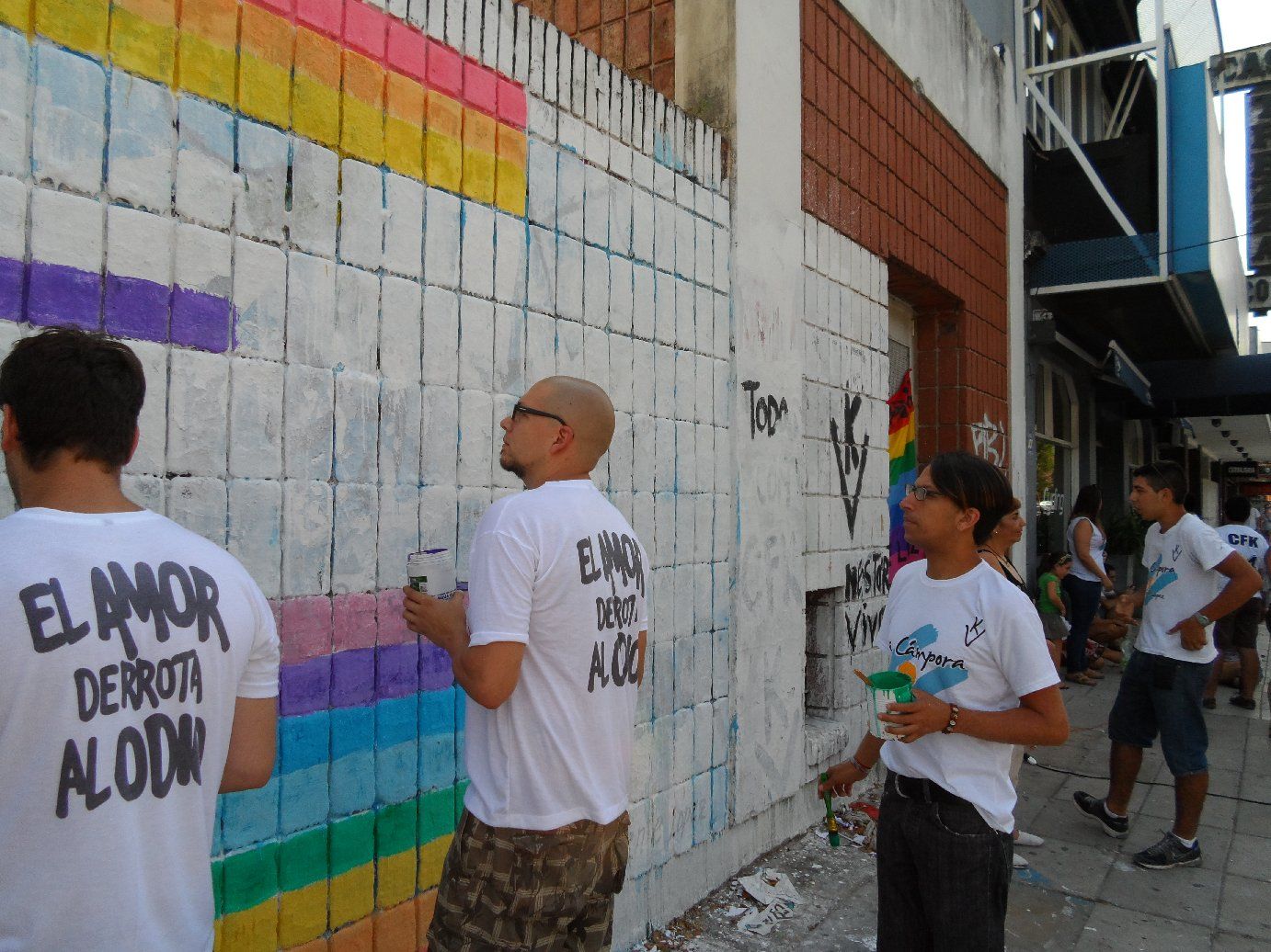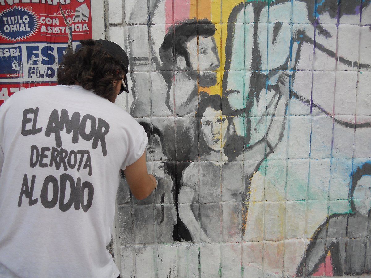 Mientras se realizaba el mural, numerosos compañeros se abocaron a difundir entre los vecinos un glosario de diversidad sexual. Asimismo se repartieron volantes conteniendo información acerca de las iniciativas de la organización en el distrito. La tarde fue amenizada con una radio abierta que contribuyó a compartir la mística y la alegría de formar parte de un cambio histórico, donde la inclusión y la solidaridad pasan a ser pilares fundamentales de nuestra sociedad.