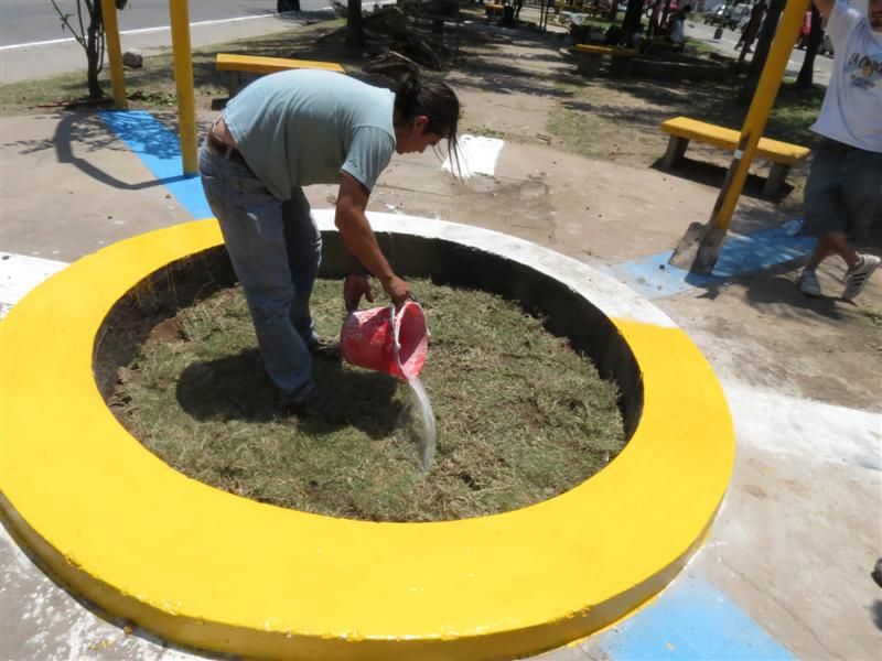 otros cumpas de distintos barrios de Capital desmalezaron, podaron y limpiaron los espacios verdes; blanquearon y pintaron los canteros y caminerías, y arreglaron el mástil de la bandera nacional.