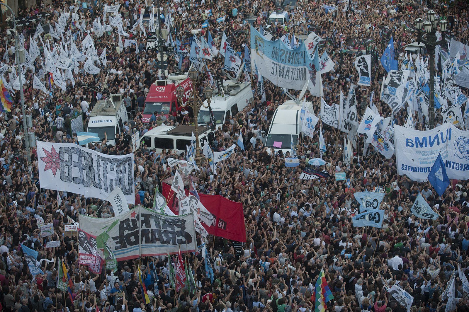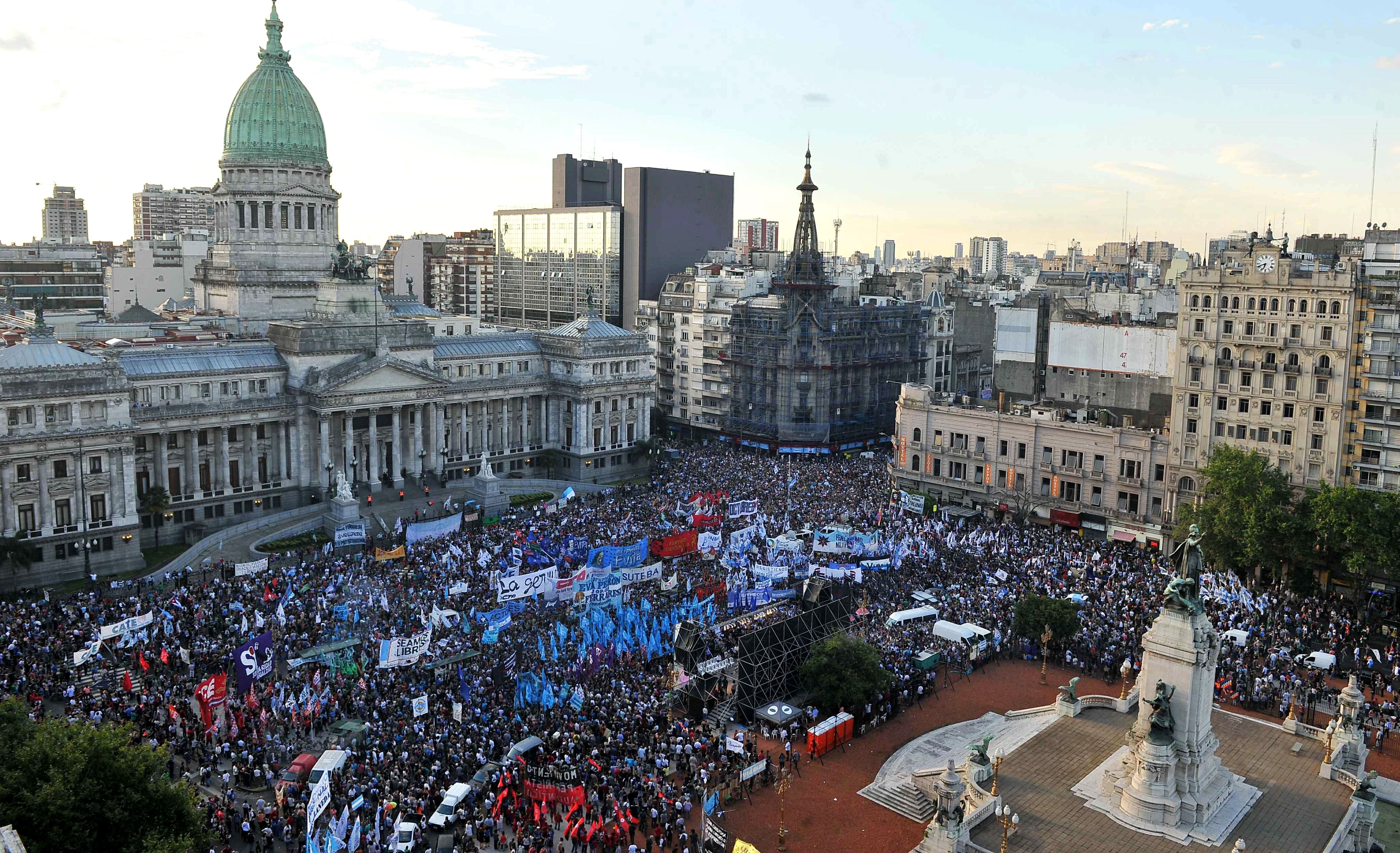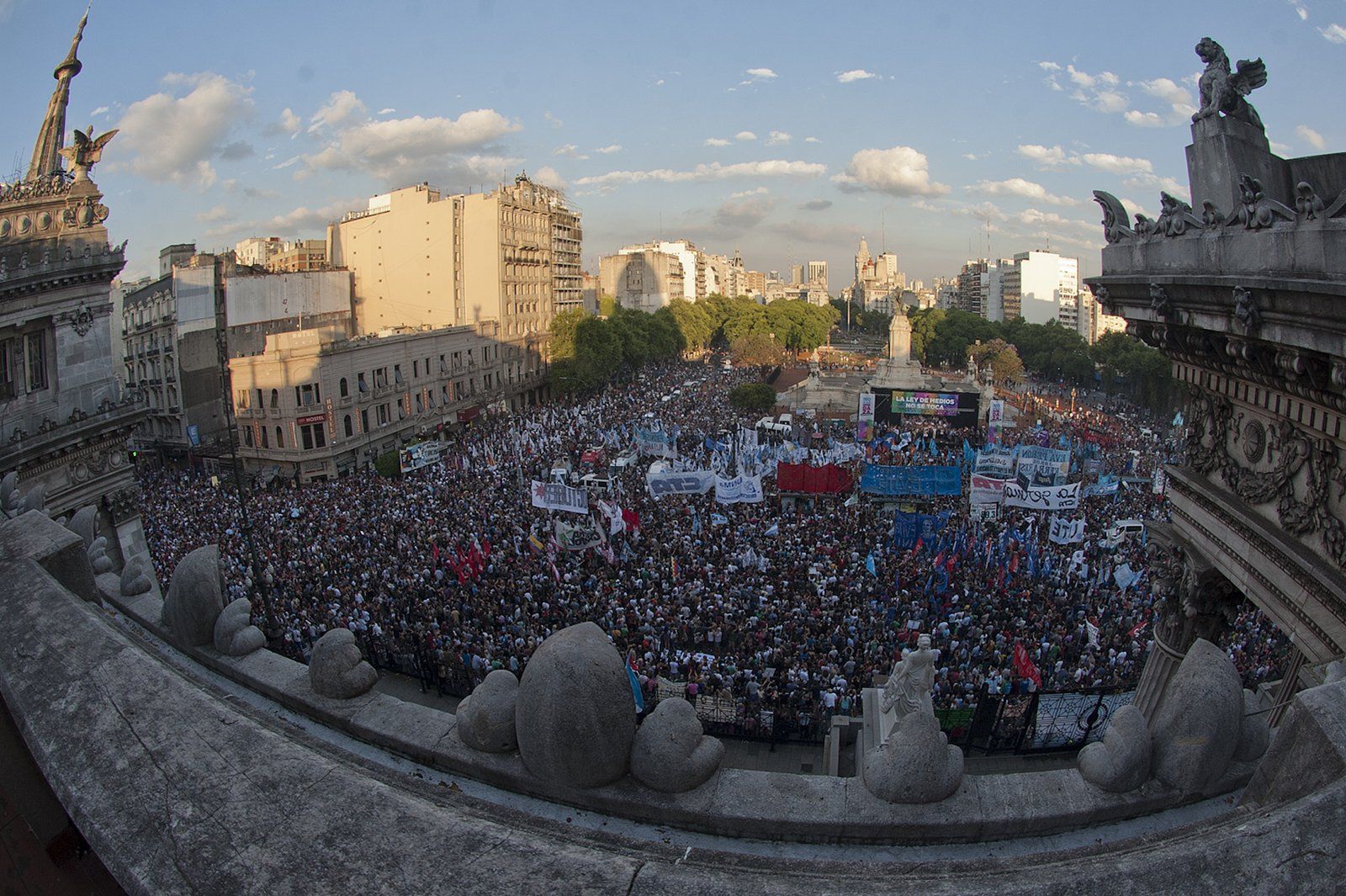 Una multitud confluyó hoy en la Plaza de los Dos Congresos, donde se realizó un acto en defensa de la Ley de Servicios de Comunicación Audiovisual. También se cuestionó la devaluación anunciada por el gobierno y la designación de dos ministros de la Corte Suprema mediante un decreto.