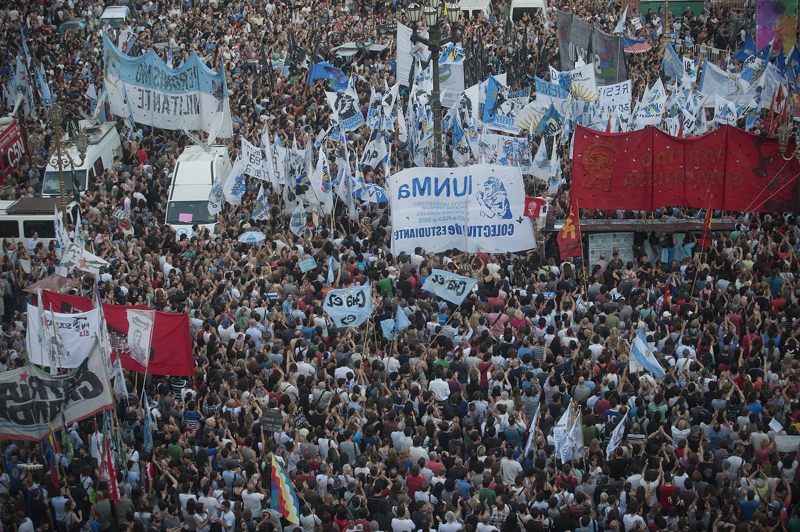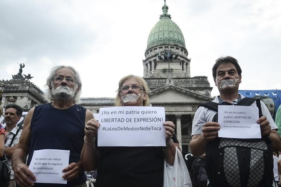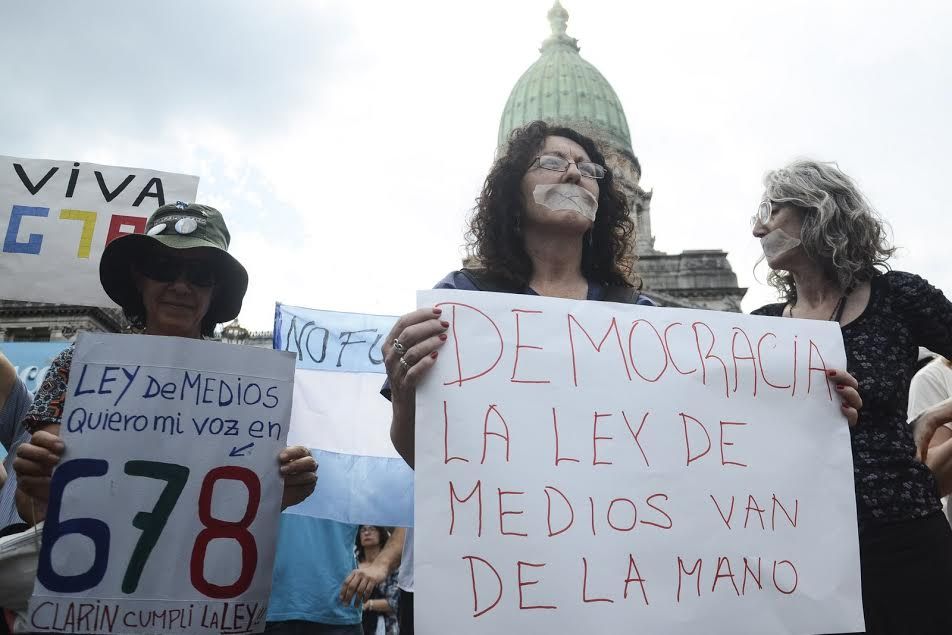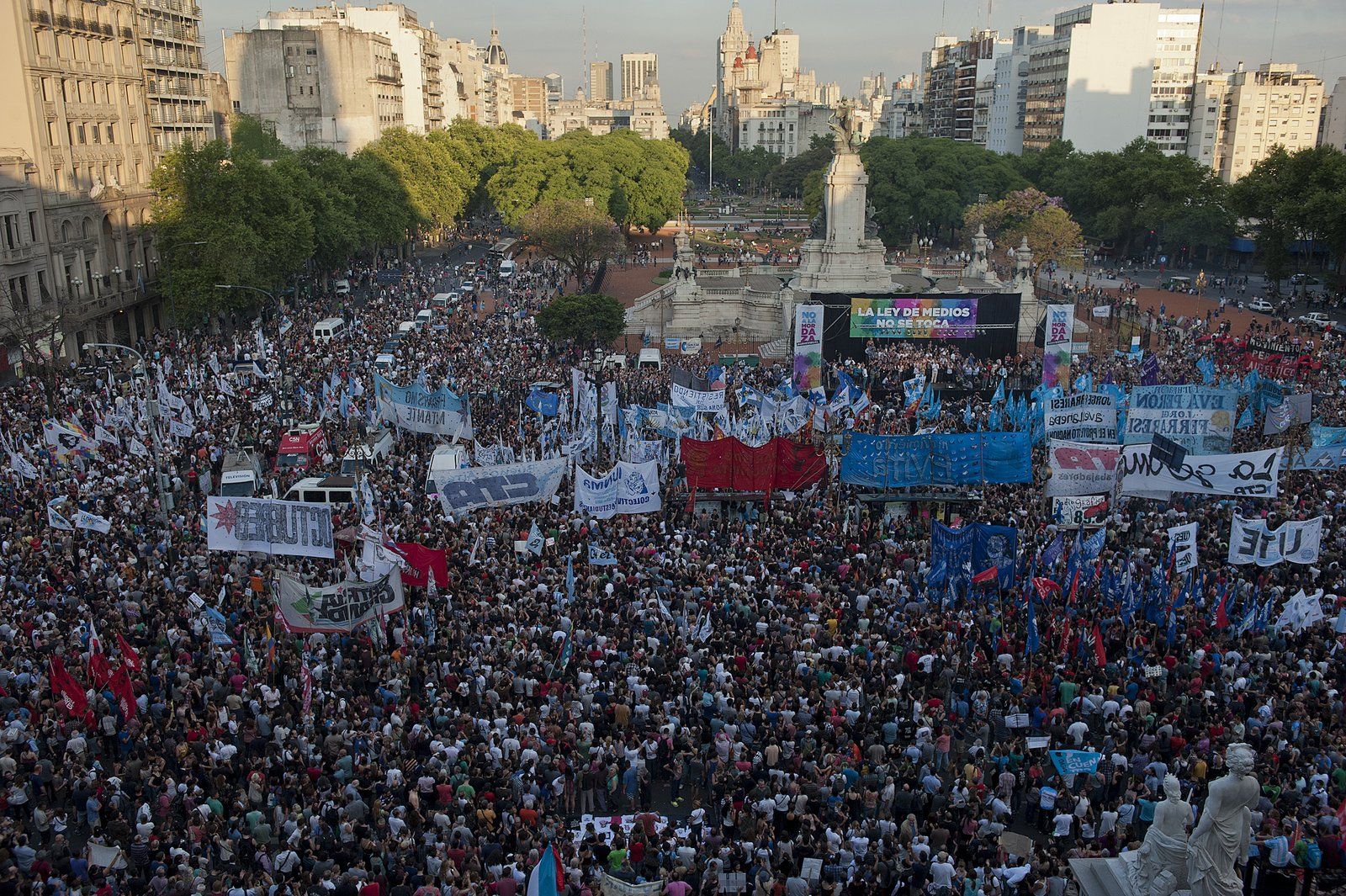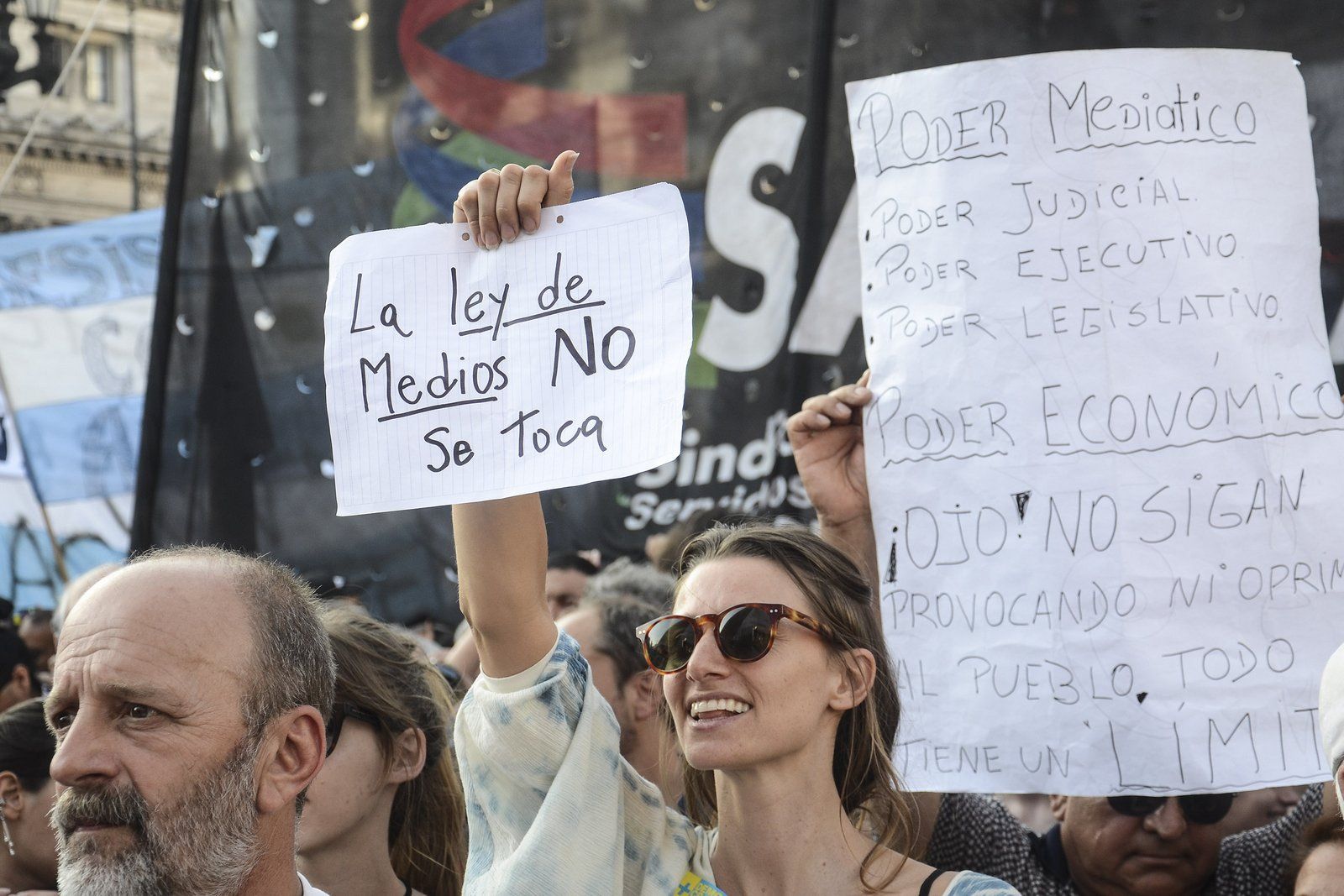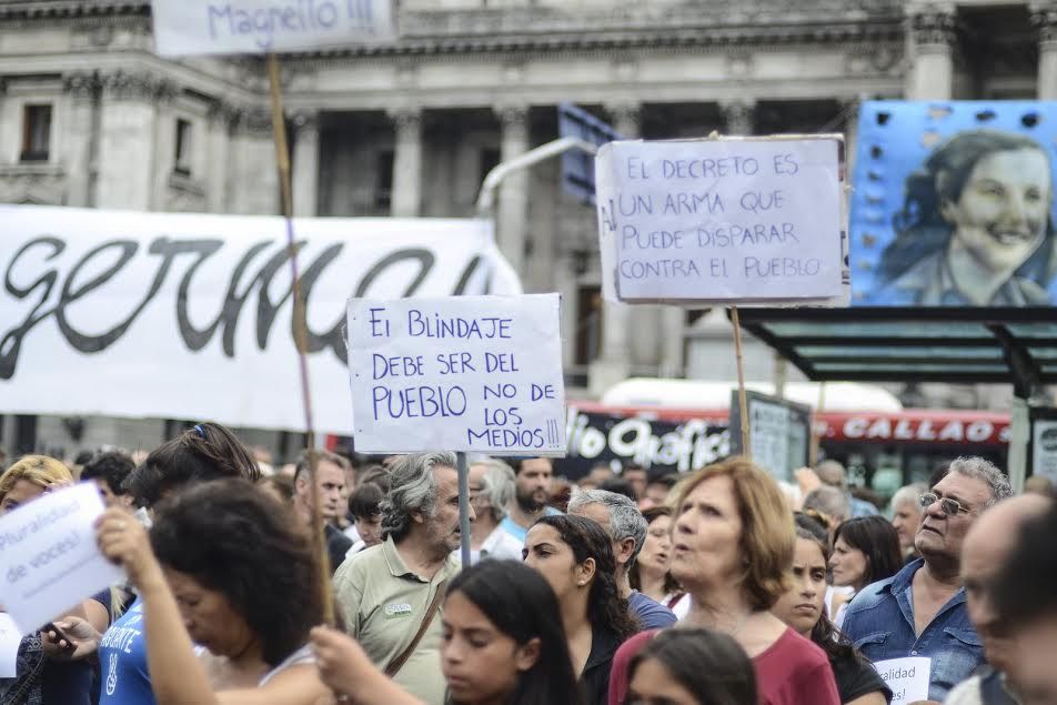 El acto tenía como objetivo inicial la defensa de la norma a la que el Grupo Clarín insiste en vulnerar, pero a partir de la manifestación de otros reclamos contra el gobierno, principalmente el avasallamiento institucional hacia el Congreso, se convirtió en la primera movilización opositora a Macri y su gestión, a una semana de asumir.
