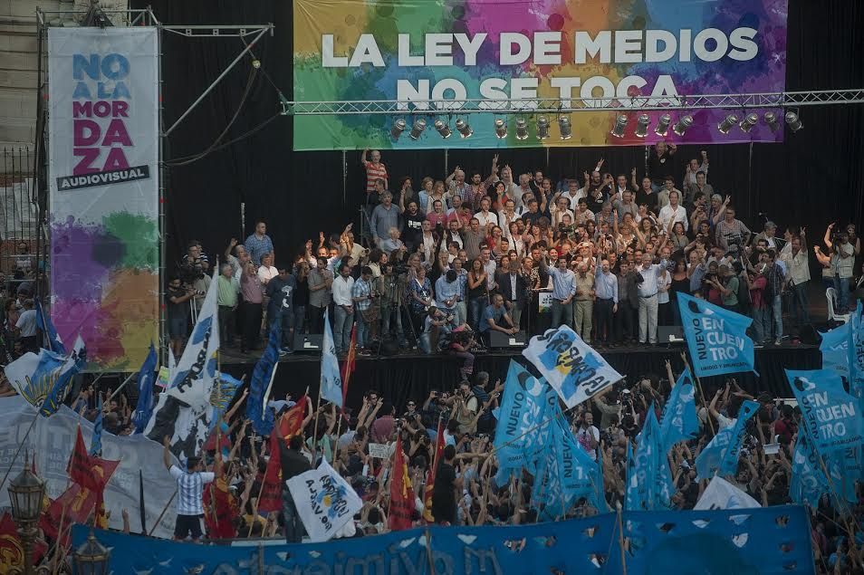 Durante la tarde de hoy unas 40.000 personas se manifestaron frente al Congreso convocados por la defensa de la Ley de Servicios de Comunicación Audiovisual . En defensa de la pluralidad de voces y reclamando la aplicación definitiva de la norma sancionada hace ya más de 6 años.