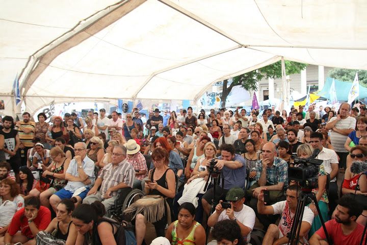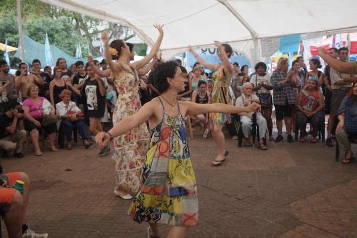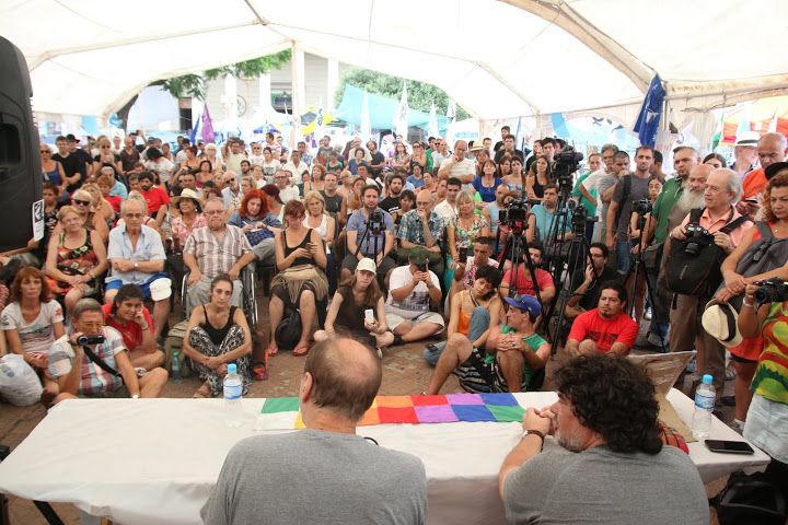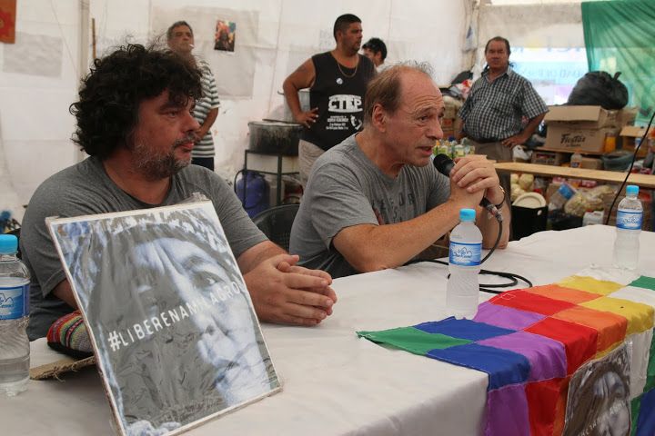 La charla comenzó cuando el coordinador nacional de la Tupac Amaru, Alejandro "Coco" Gafargnini, agradeció la presencia de tantos compañeros y explicó que están trabajando codo a codo para que el acampe funcione y para que el reclamo por la libertad de Milagro tenga calma, fuerza y permanencia, sin entrar en provocaciones.
