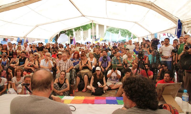 El mediodía día del domingo 7 de febrero, el ex ministro de la Corte Suprema de la Nación y actual integrante de la Corte Interamericana de Derechos Humanos, Eugenio Zaffaroni, dio una charla en el acampe de Plaza Mayo por la liberación de Milagro Sala, rodeado de cientos de vecinos y militantes de diferentes organizaciones políticas y sociales.