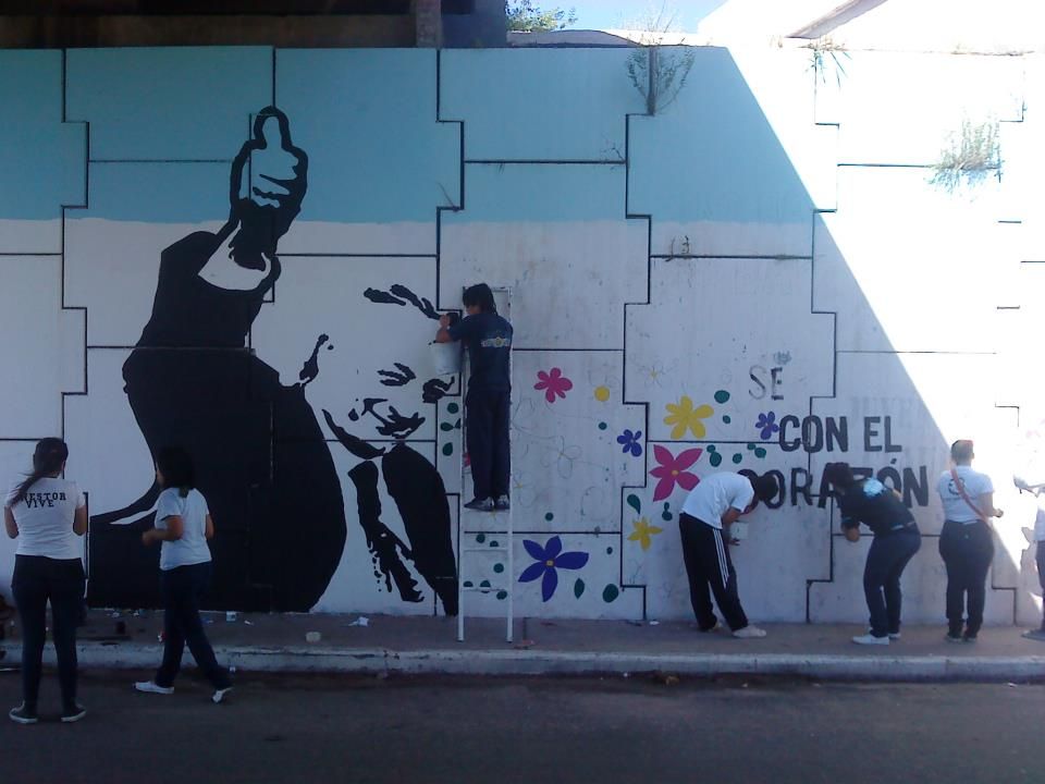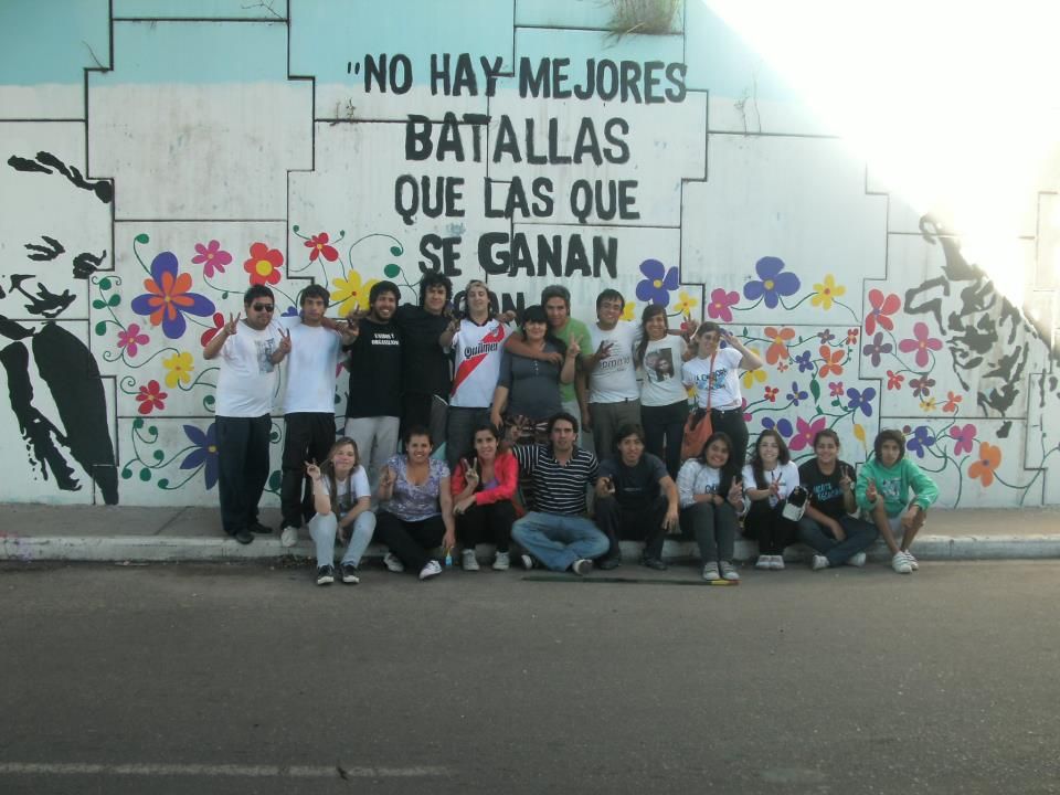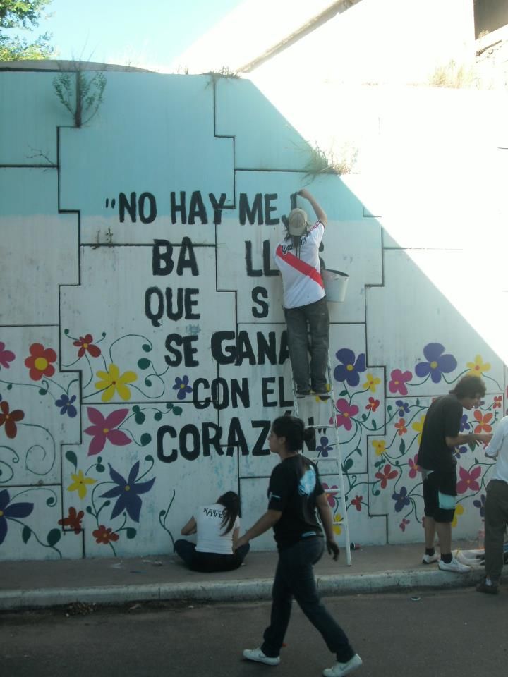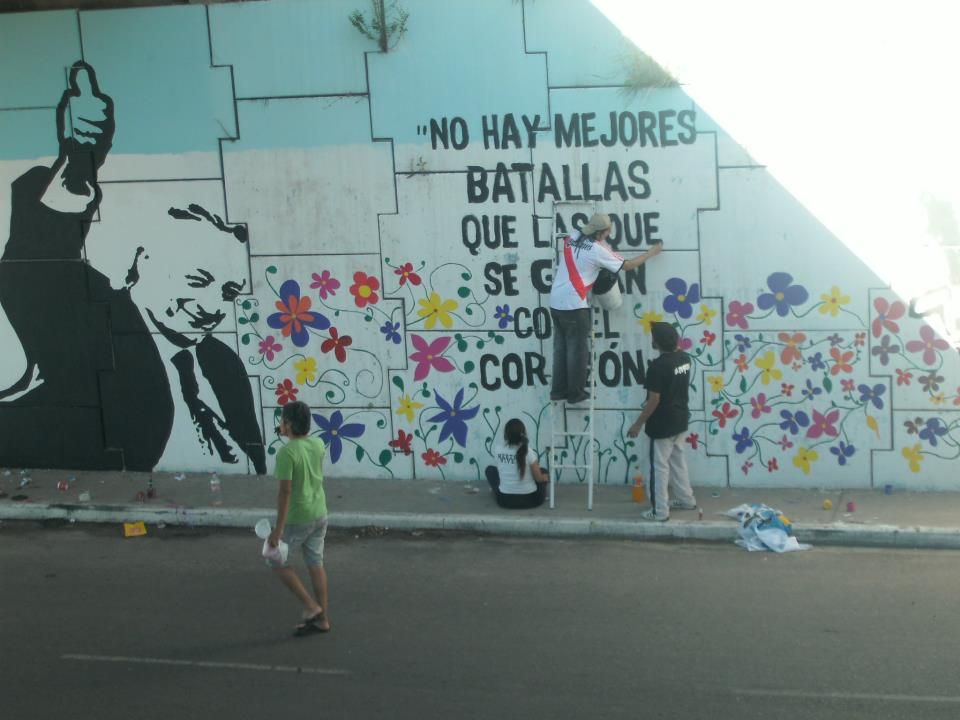 se juntaron para realizar un mural con las figuras de los compañeros Néstor y Cristina. La frase que utilizaron para plasmar en el mural fue ˮ˜No hay mejores batallas que las que se ganan con el corazónˮ™, palabras que dijo nuestra Presidenta Cristina Fernández de Kirchner durante el acto que se realizó el 11 de marzo de 2011, donde se vivió una verdadera fiesta de la militancia. Con los colores celeste y blanco y decorado con flores, el mural fue realizado con gran emoción y alegría. En una tarde de mucho calor, los compañeros pudieron reflejar la pasión y el entusiasmo con que militan día a día para mejorar la realidad puntana, profundizando este proyecto de país nacional y popular.