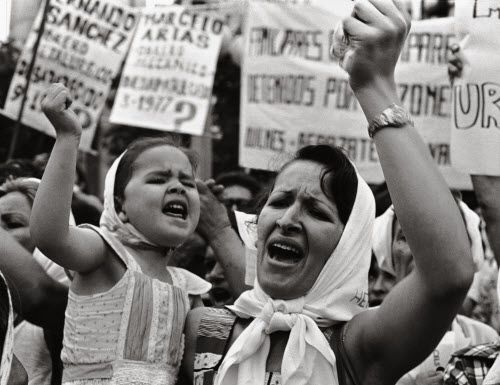 También hizo referencia a la artista Adriana Lestido y a su trabajo, recalcando una fotografía del año ˮ˜82 en una marcha de organizaciones de derechos humanos donde “está una Madre con su pañuelo blanco y lleva en sus brazos a su hijita que también muy pequeña, con un pañuelo blanco, y ambas con los dos puños crispados pero simétricasˮ y manifestó lo valioso de la fotografía ya que “puede expresar el dolor y la indignación y el amor al mismo tiempo.ˮ