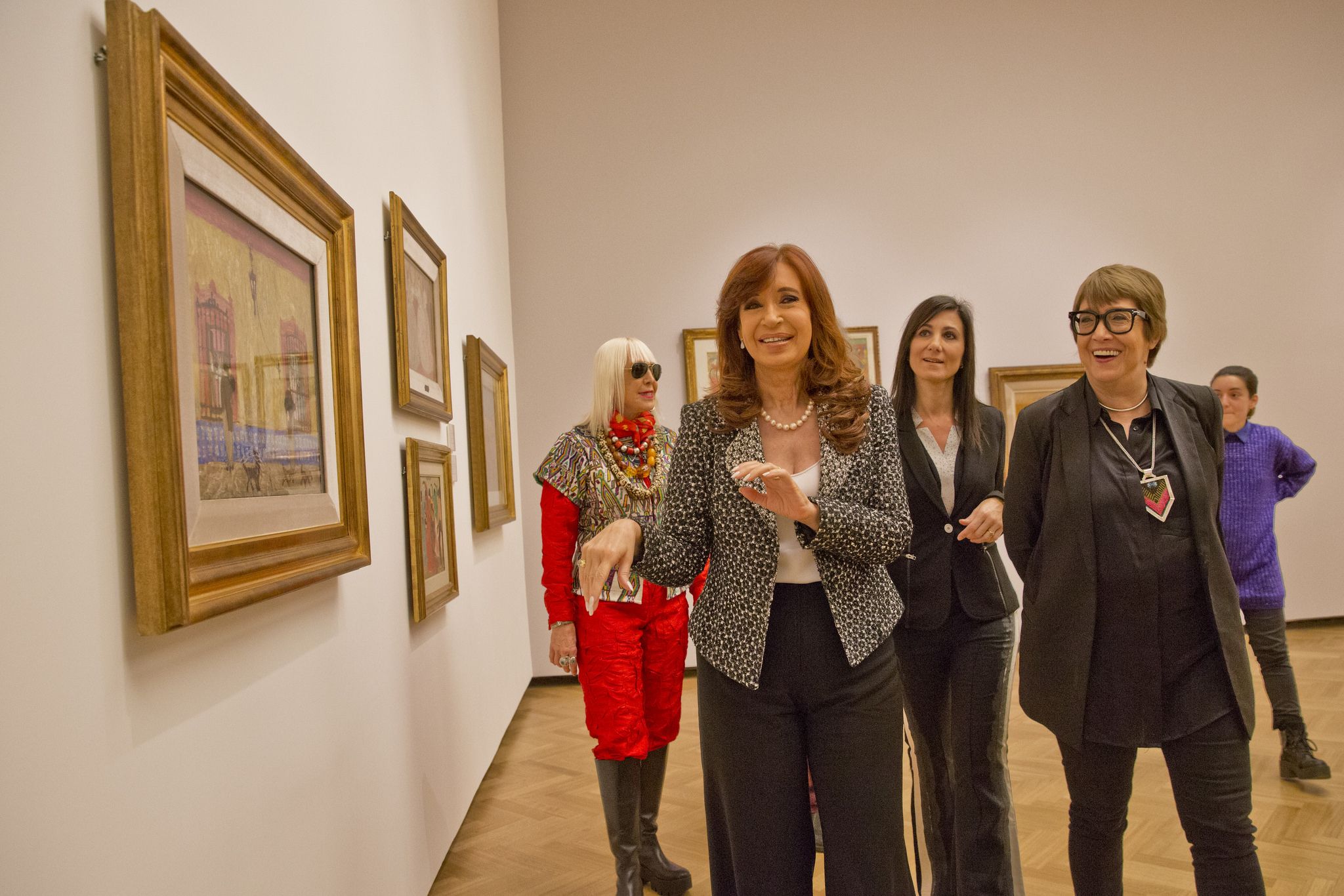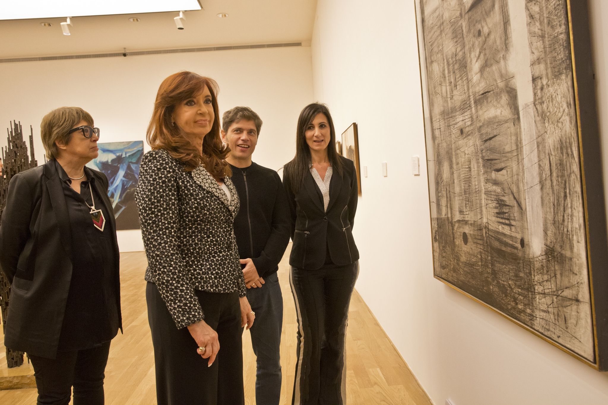 Cristina Kirchner estuvo acompañada durante el acto y la recorrida del Museo, por grandes personalidades de nuestra cultura, en sus distintas ramas artísticas. Estuvieron presentes, por ejemplo, Daniel Santoro, Marta Minujin, Rep, Sara Facio, Adriana Lestido.