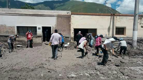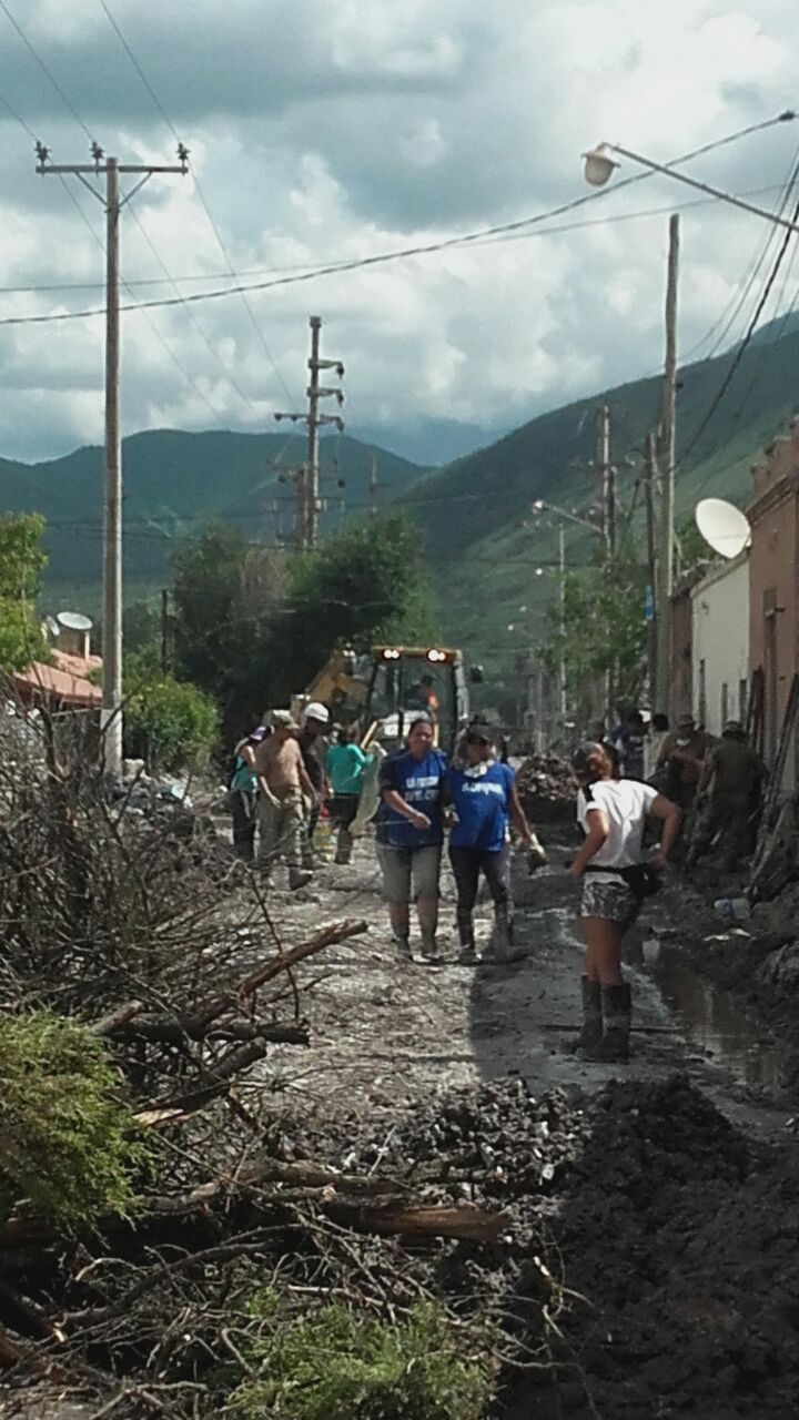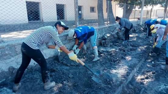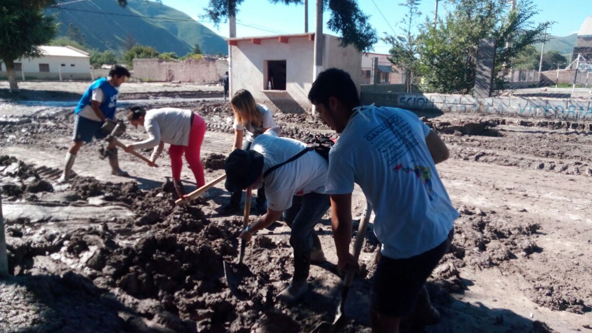 Los trabajos se concentraron en la Escuela Primaria 25 de Mayo que se encuentra en la zona amarilla de daños ocasionados por el alud. Posteriormente se trasladaron a viviendas particulares ubicadas en la zona verde, aunque la labor más ardua se realizó en viviendas particulares de zona roja, donde recién las familias están pudiendo llegar a sus casas que se encuentran completamente inmersas en 1,50 metros de lodo en su interior.