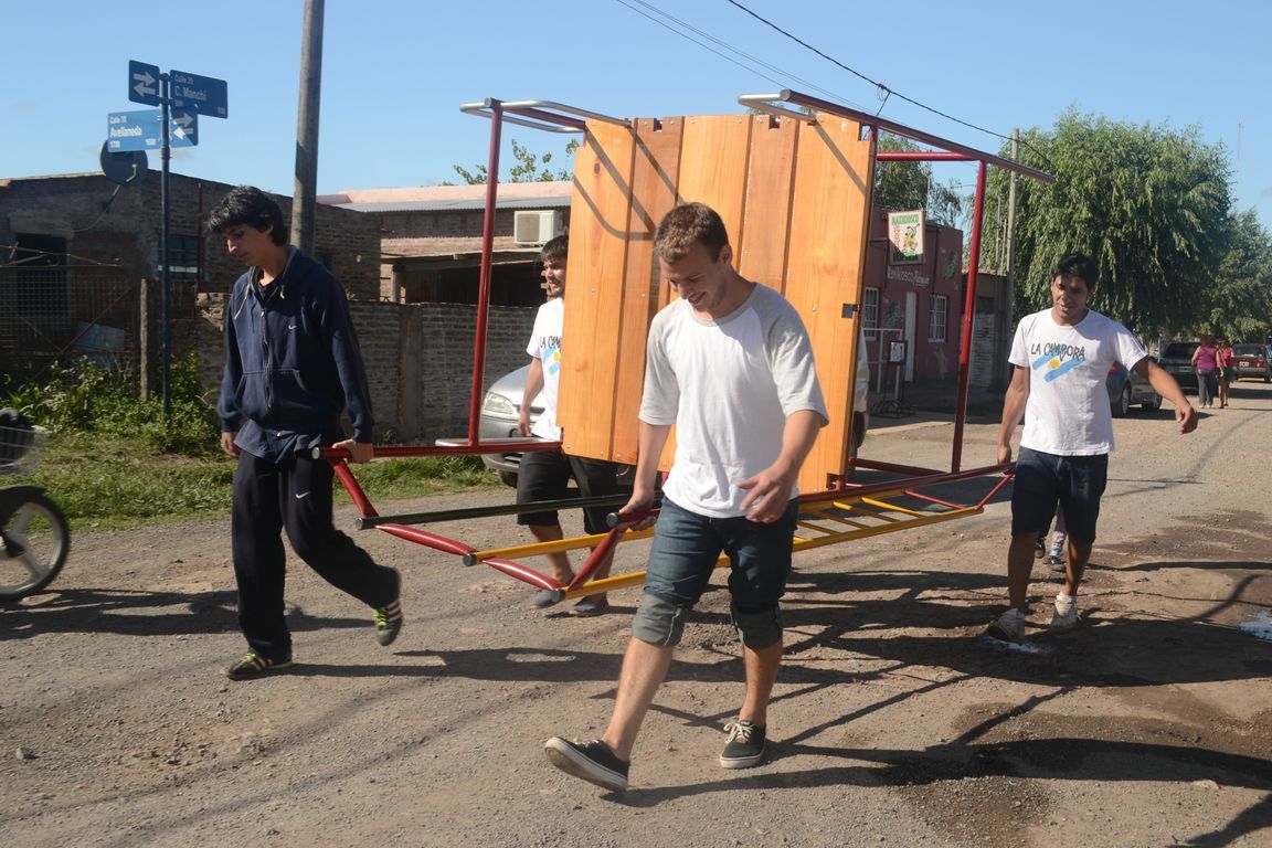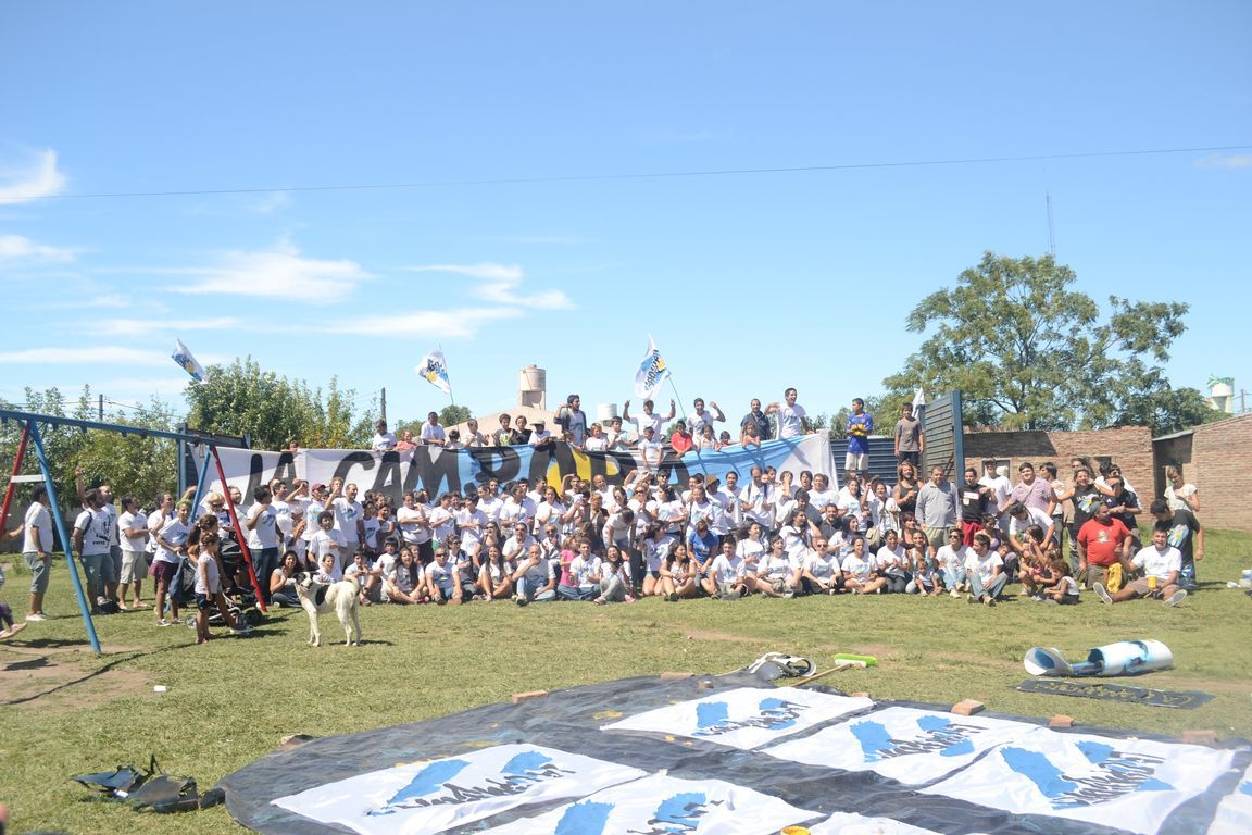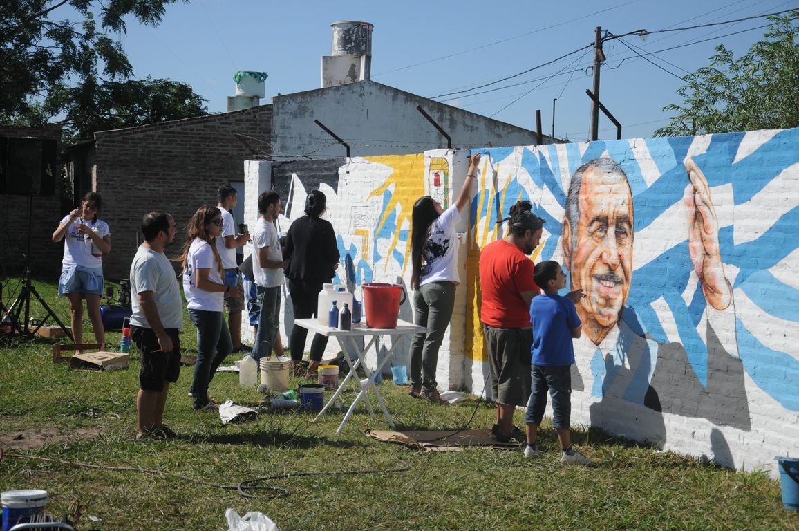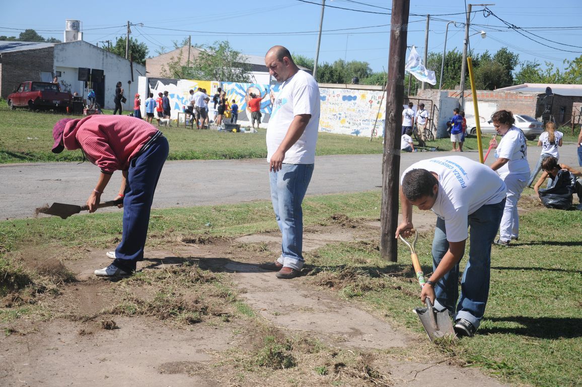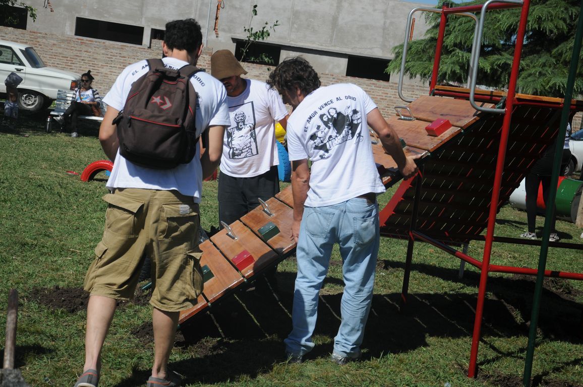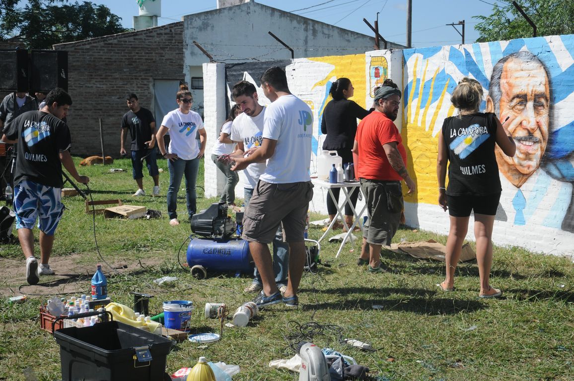 "Sin plaza no hay barrio,  ¡y ahora vamos a tener una hermosa!" exclamaba una vecina al ver a los pibes trabajando para acondicionar todos los juegos de la plaza y pintando junto a los chicos un enorme mural que reflejaba la imagen del ex presidente. Durante todo el día los militantes colaboraron con una vecina en la construcción de los cimientos de su casa y desmalezaron también un terreno baldío del barrio. Las banderas de las organizaciones flameaban en los árboles de las plazas, mientras militantes y vecinos se mezclaban en una marea que recorría el barrio por las calles con desmalezadoras, palas y tachos de pintura en las manos.