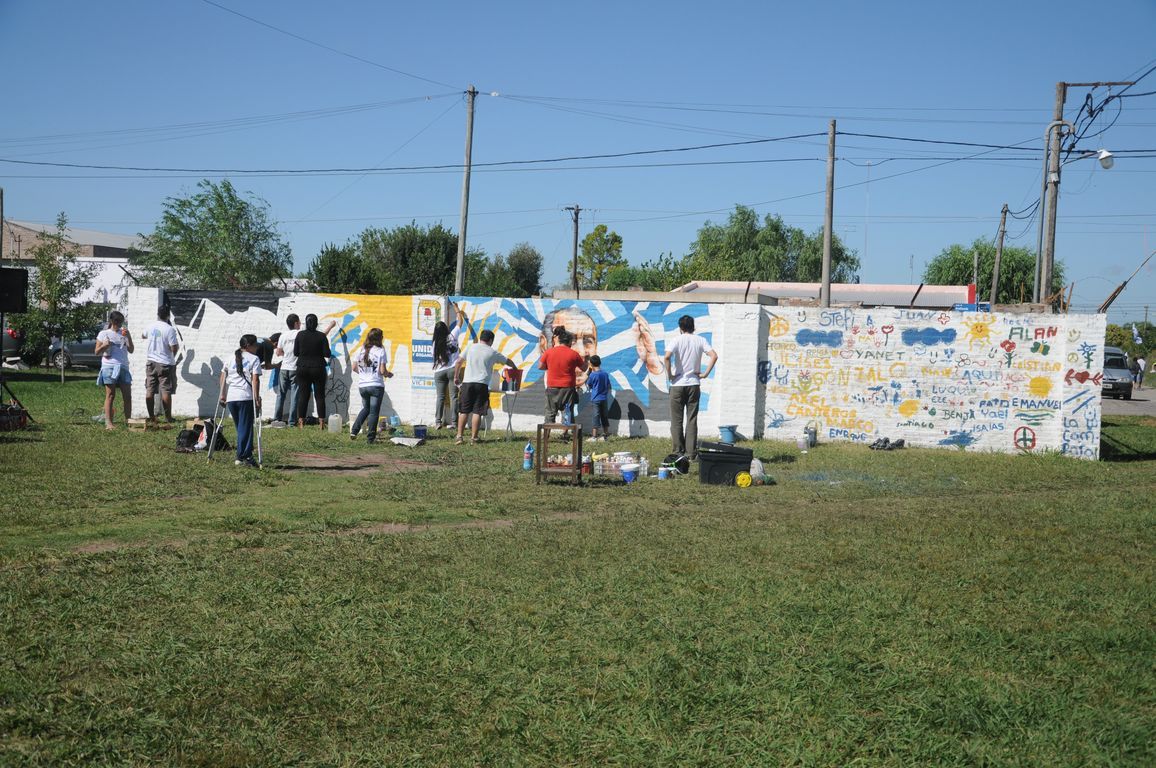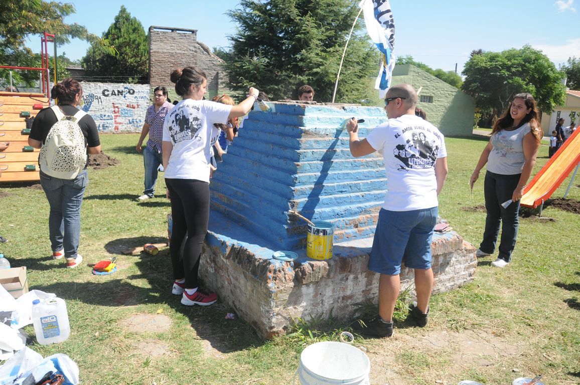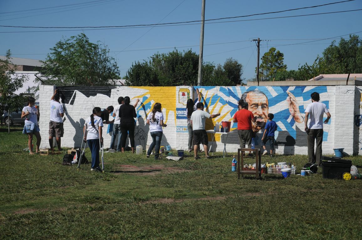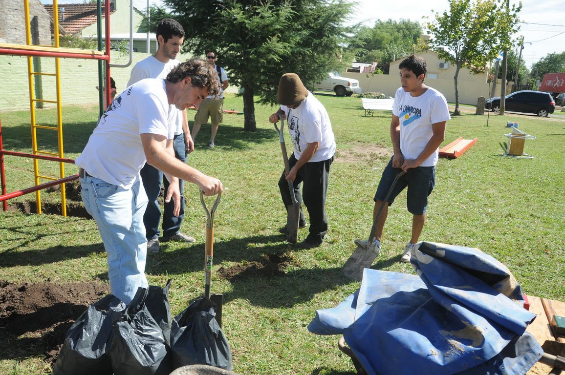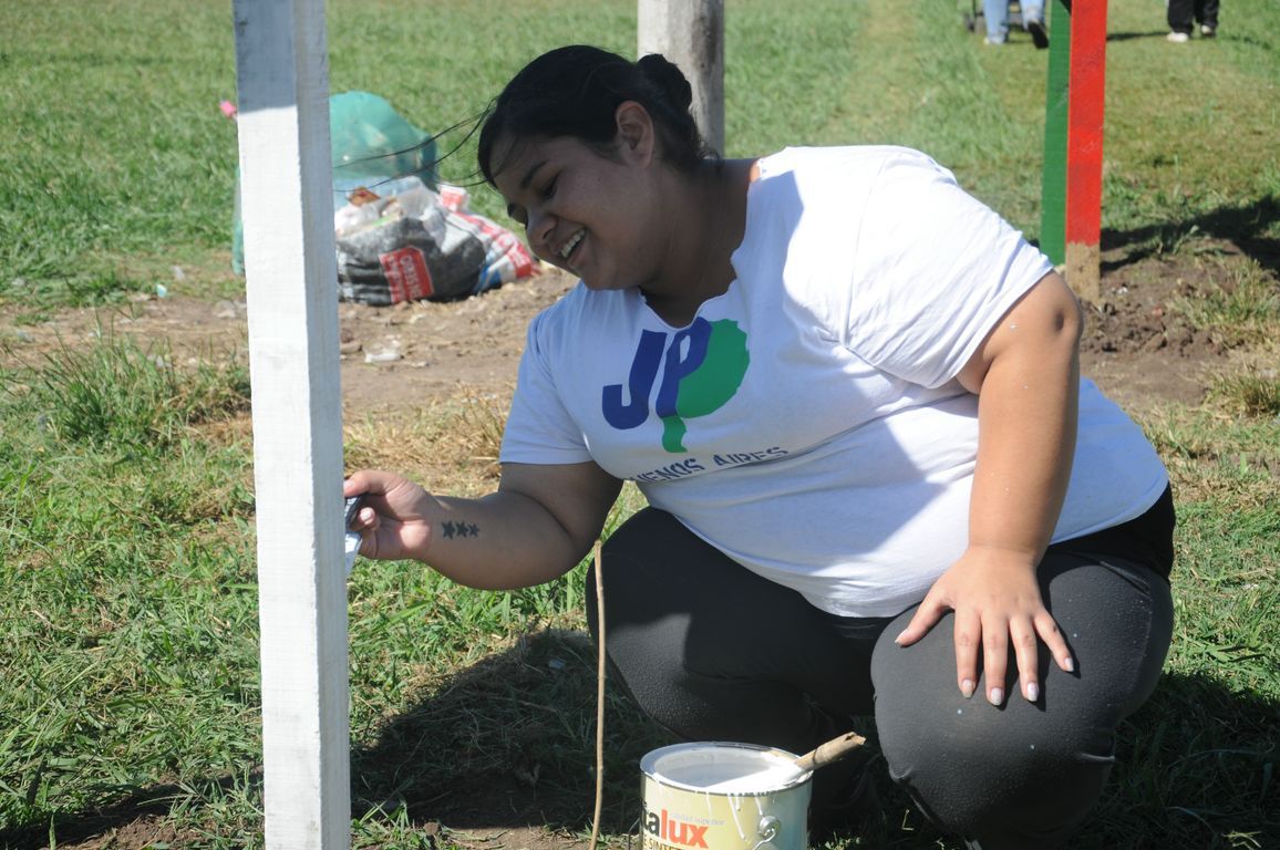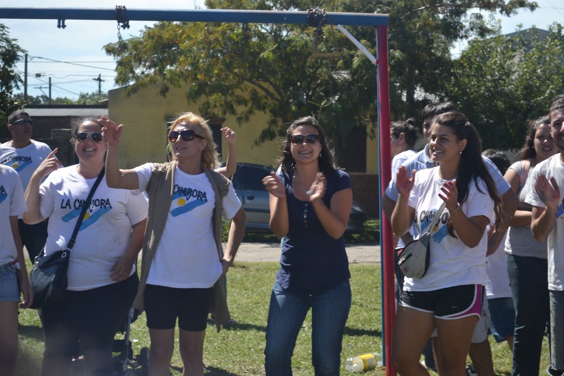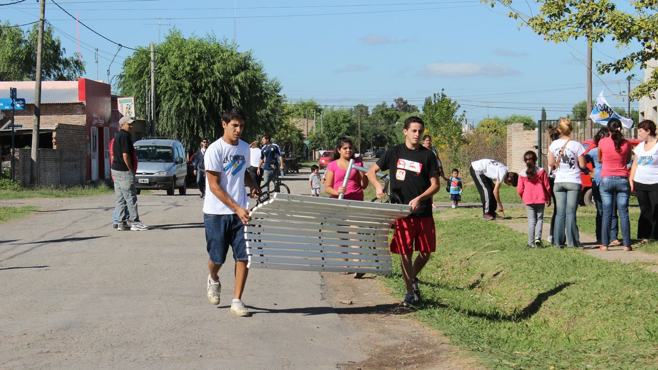 "Sin plaza no hay barrio,  ¡y ahora vamos a tener una hermosa!" exclamaba una vecina al ver a los pibes trabajando para acondicionar todos los juegos de la plaza y pintando junto a los chicos un enorme mural que reflejaba la imagen del ex presidente. Durante todo el día los militantes colaboraron con una vecina en la construcción de los cimientos de su casa y desmalezaron también un terreno baldío del barrio. Las banderas de las organizaciones flameaban en los árboles de las plazas, mientras militantes y vecinos se mezclaban en una marea que recorría el barrio por las calles con desmalezadoras, palas y tachos de pintura en las manos.