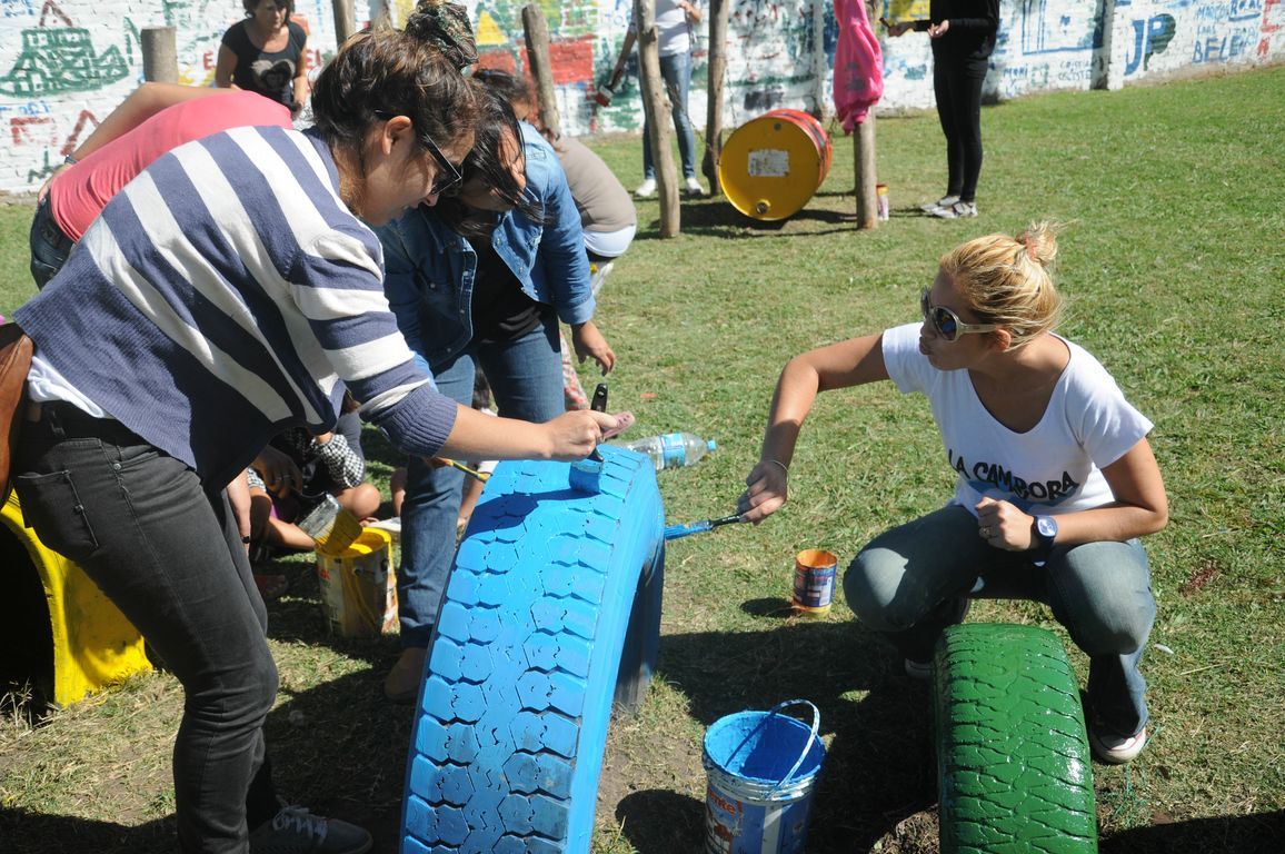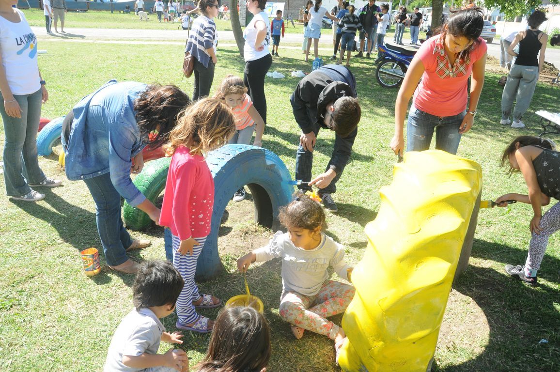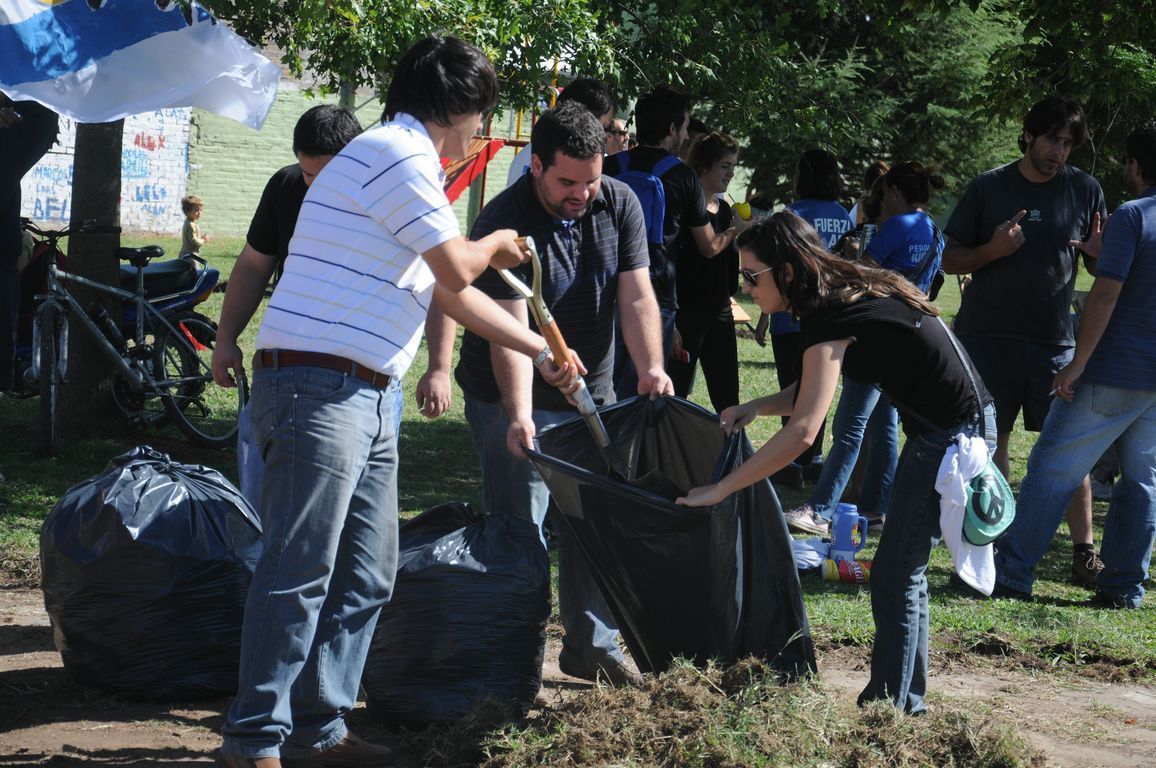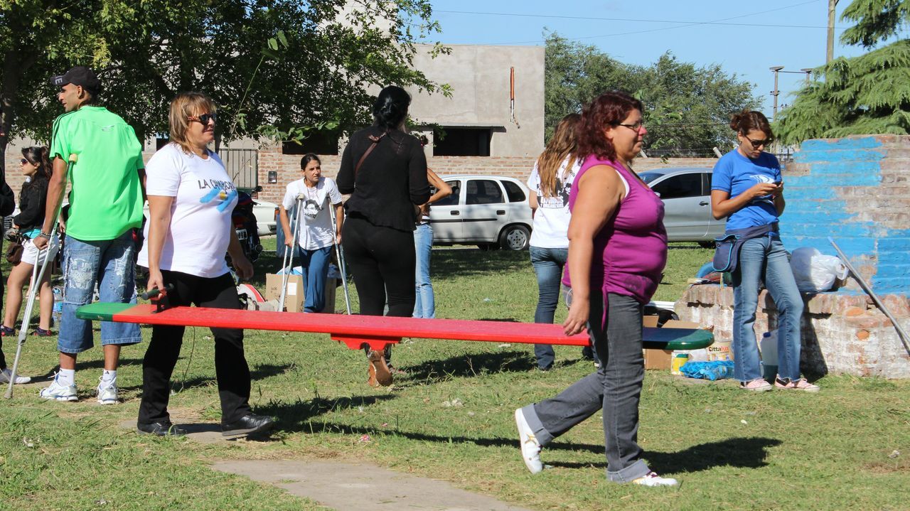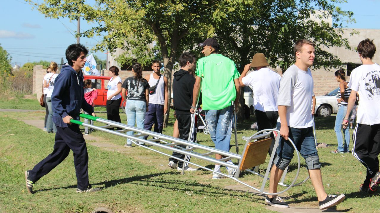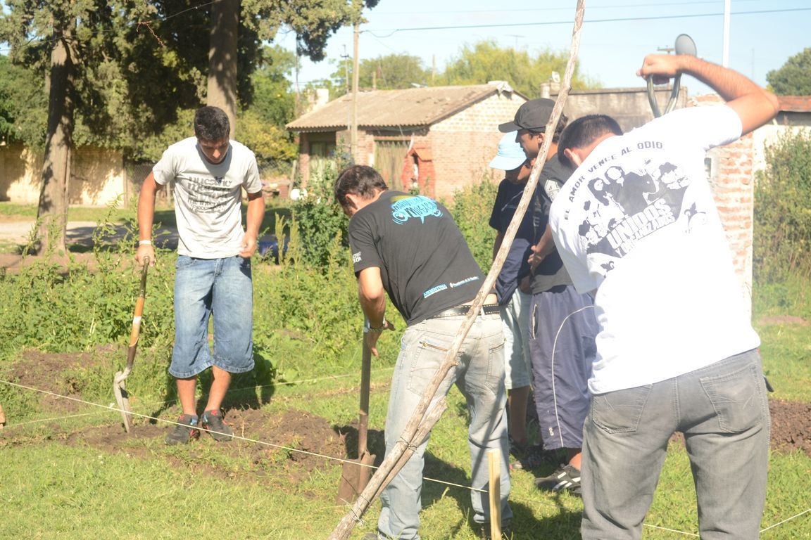 "Sin plaza no hay barrio,  ¡y ahora vamos a tener una hermosa!" exclamaba una vecina al ver a los pibes trabajando para acondicionar todos los juegos de la plaza y pintando junto a los chicos un enorme mural que reflejaba la imagen del ex presidente. Durante todo el día los militantes colaboraron con una vecina en la construcción de los cimientos de su casa y desmalezaron también un terreno baldío del barrio. Las banderas de las organizaciones flameaban en los árboles de las plazas, mientras militantes y vecinos se mezclaban en una marea que recorría el barrio por las calles con desmalezadoras, palas y tachos de pintura en las manos.