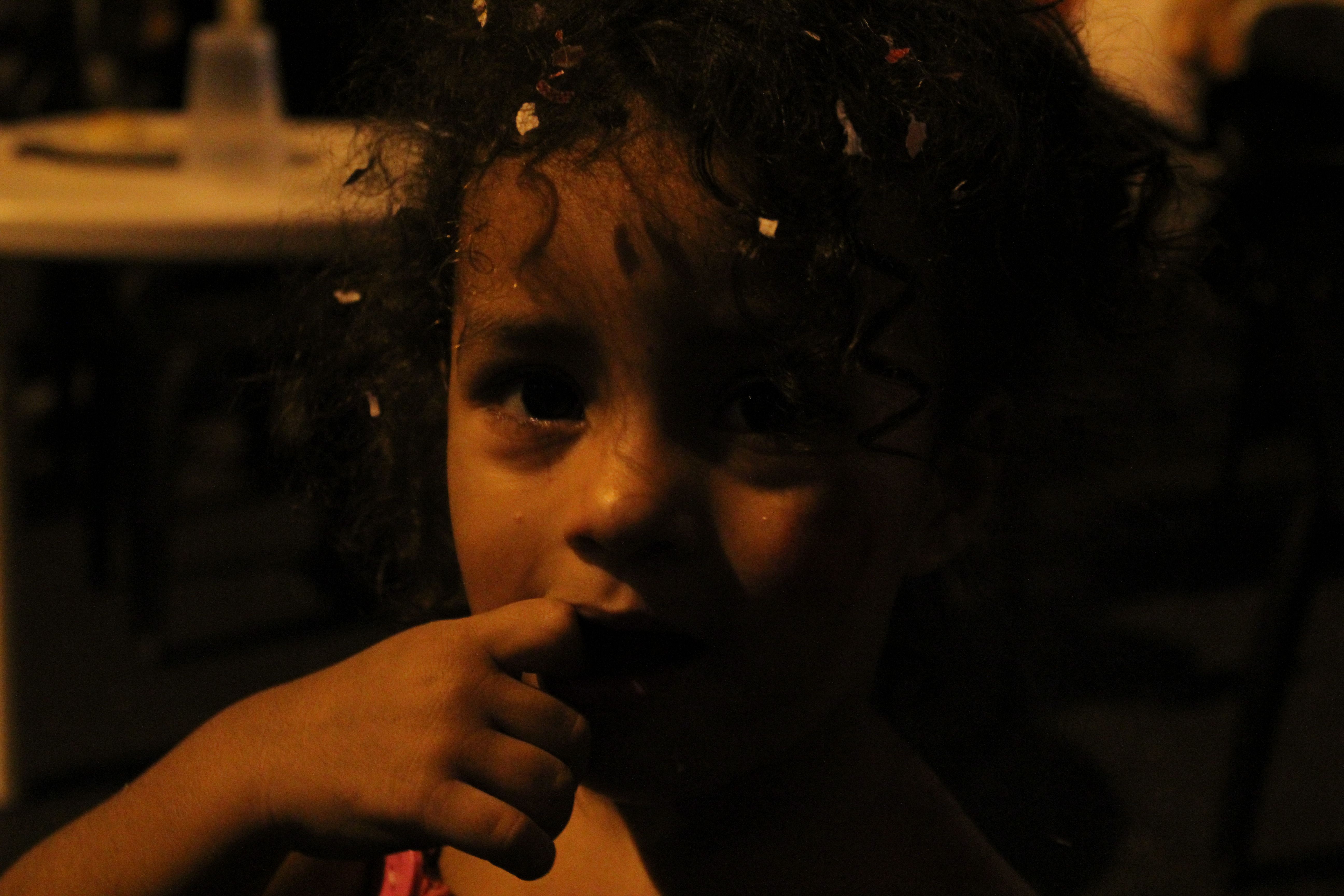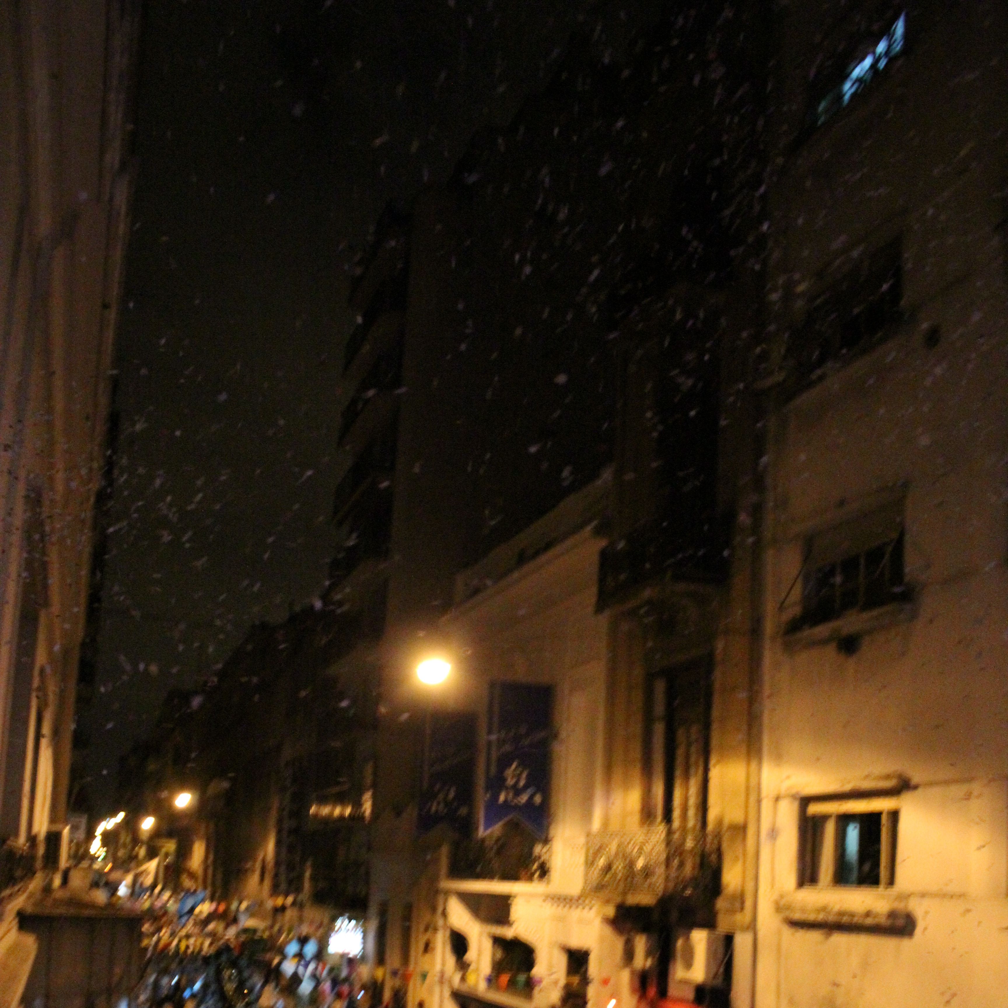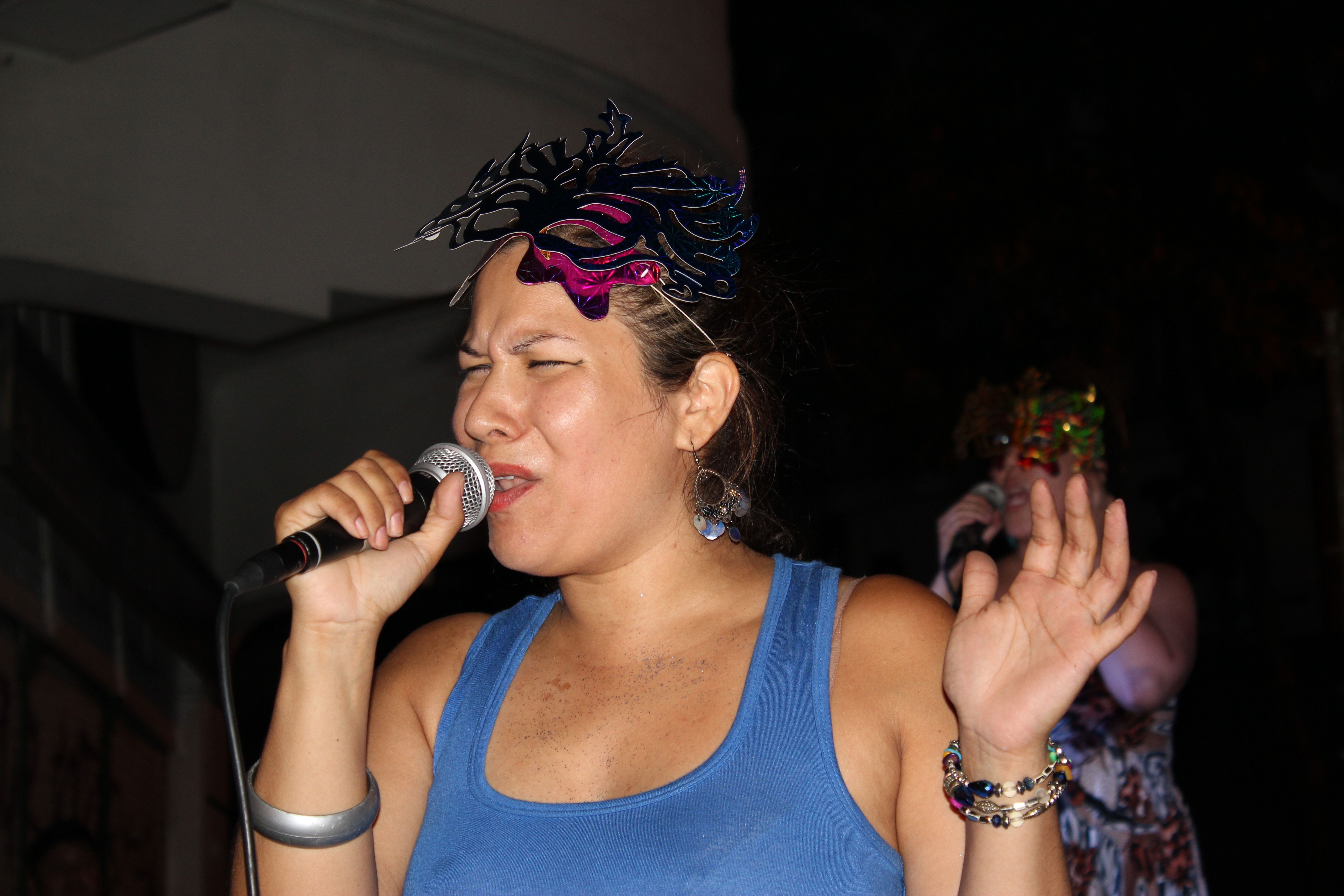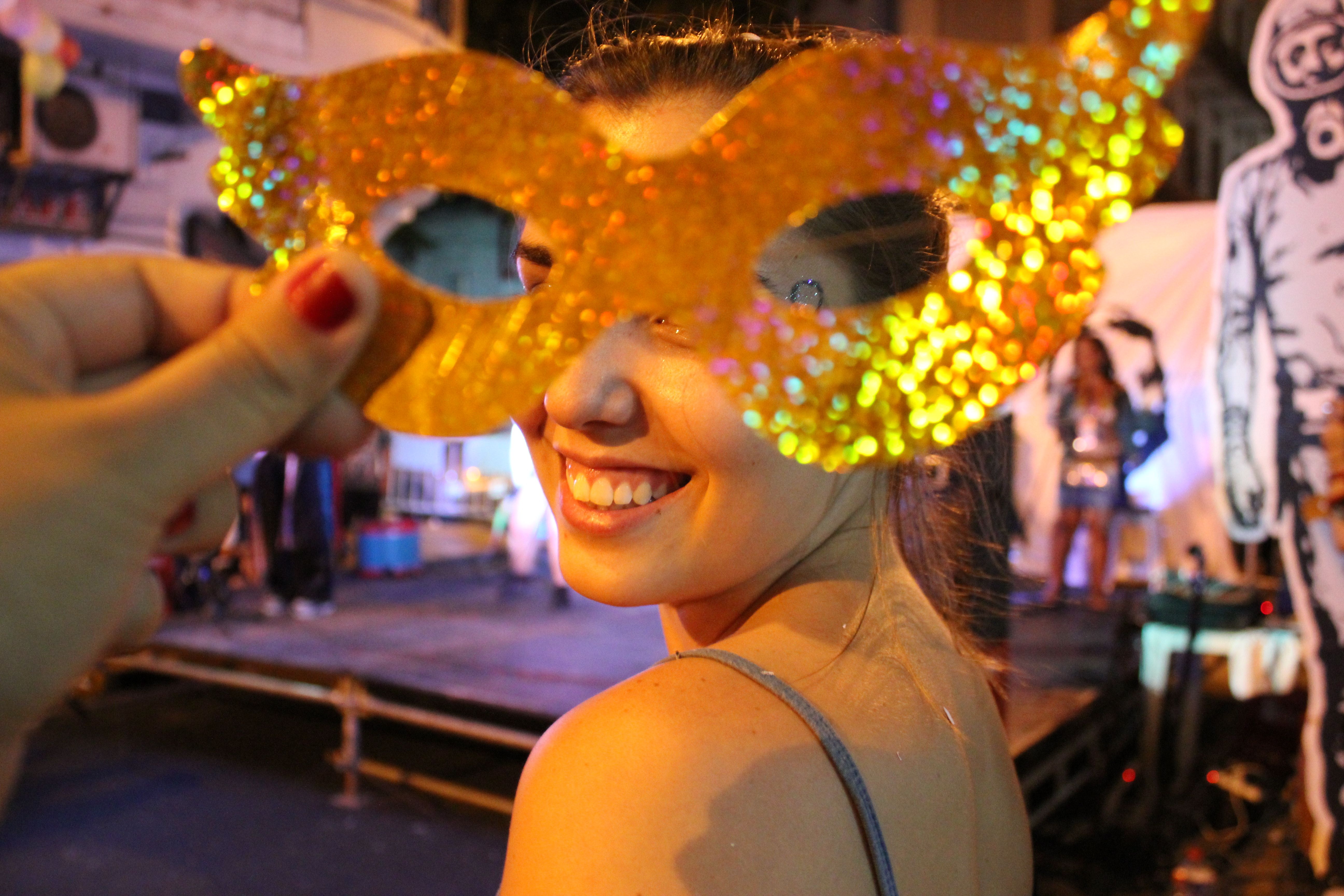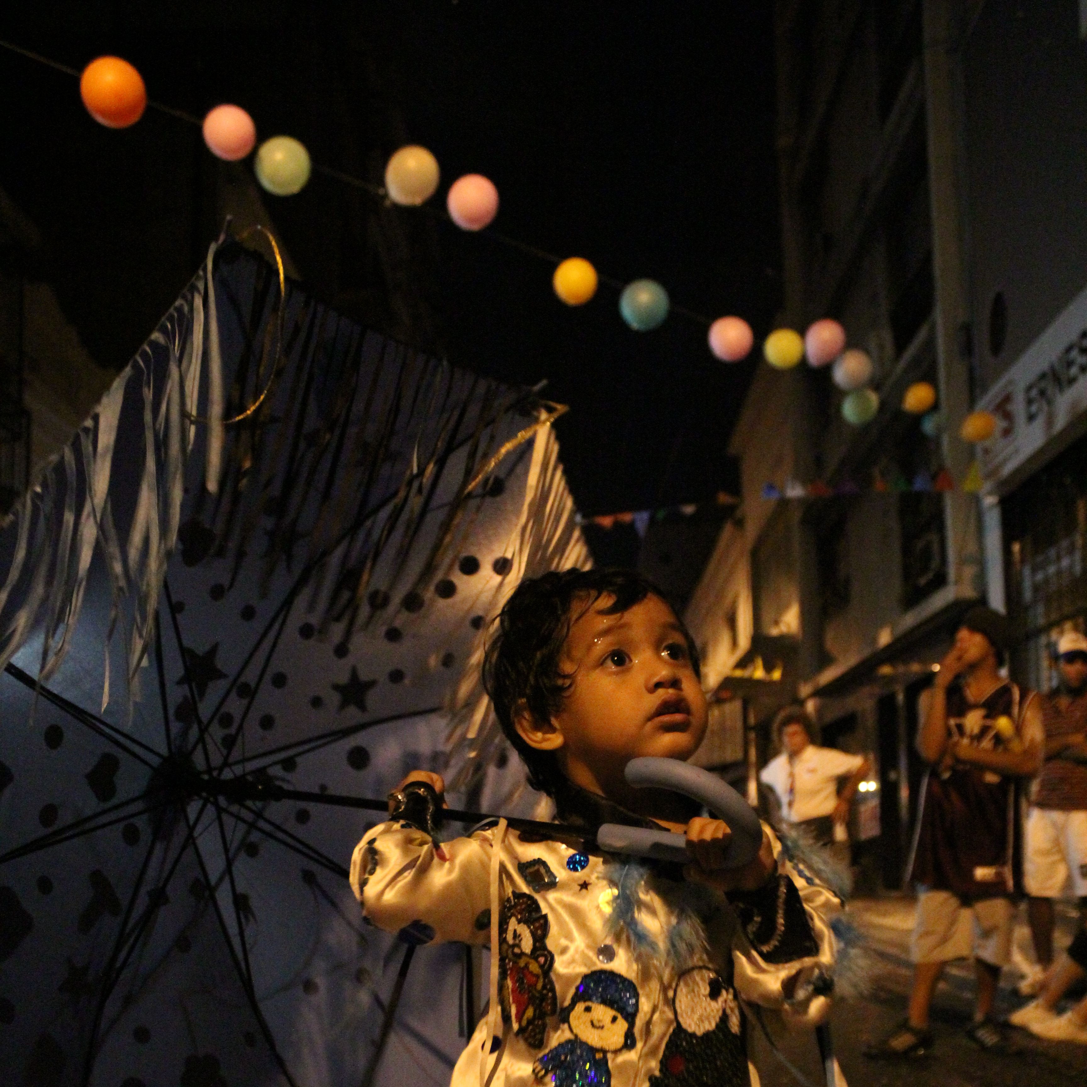 De la espuma y del papel picado no pudo eludirse nadie, ni los grandes ni los niños. Los que quisieron se maquillaron, se pusieron las máscaras típicas de la fecha o se disfrazaron con coloridas corbatas. Los más chicos jugaron incansablemente en los castillos inflables que fueron desplegados en plena cuadra y habían sido decorados para la ocasión. Al mirar al cielo se podían observar piñatas de pingí¼inos hechas a mano por los militantes, una línea de tiempo fotográfica que recorría distintos festejos de carnaval a lo largo de la historia y, en los banderines callejeros, irradiaba el rostro de la compañera coraje iluminada por numerosas luces multicolores.