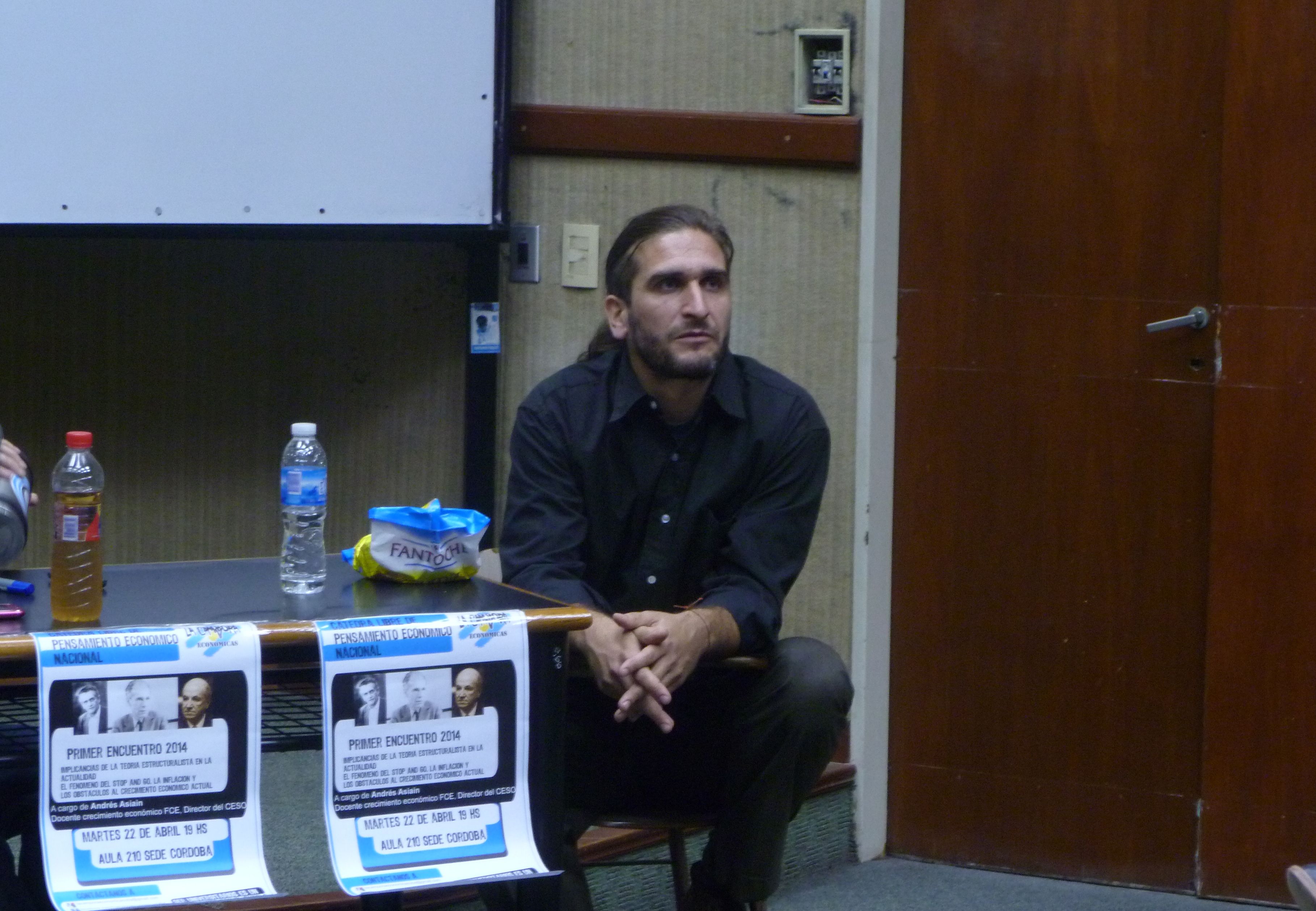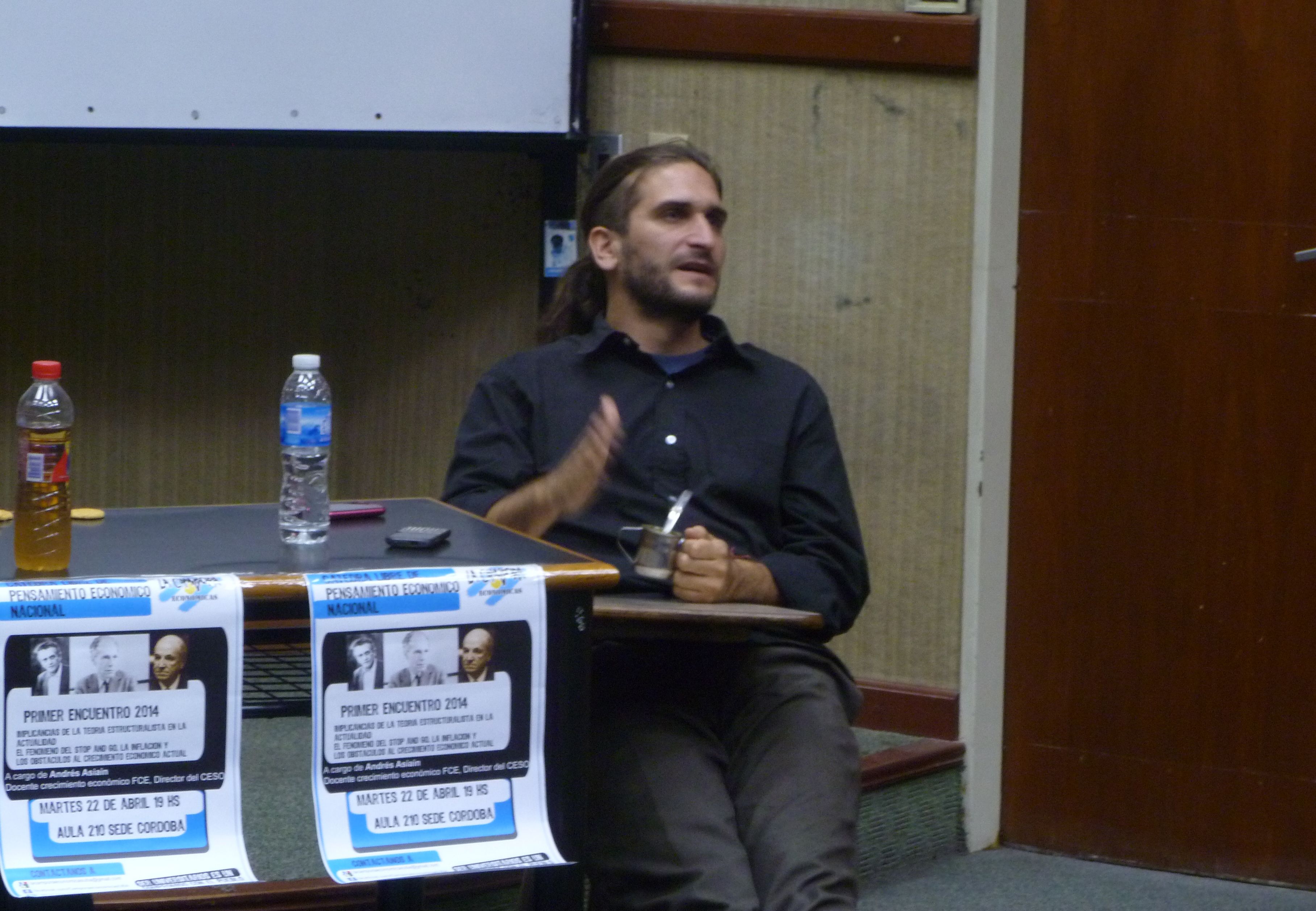 Andrés Asiain, economista profesor de la materia crecimiento económico y director del Centro de Estudios Económicos y Sociales Scalabrini Ortiz (CESO) comenzó con una introducción acerca del nacimiento del estructuralismo y sus antecedentes, entre los cuales toma vital importancia la figura de Alejandro Bunge, y los máximos exponentes de esta corriente de pensamiento económico, siendo los más reconocidos Raúl Prebisch y Celso Furtado.