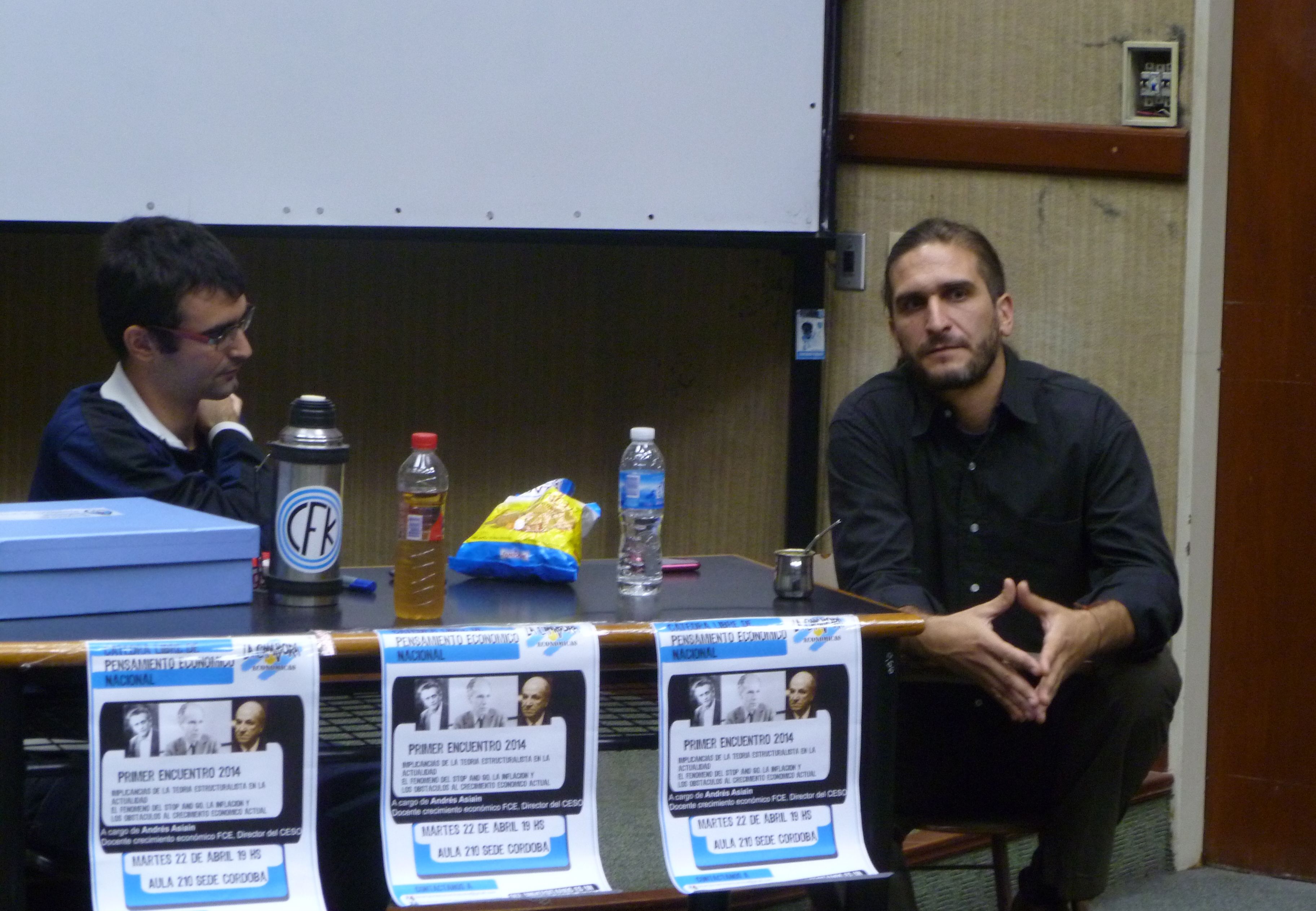 El día 22 de abril tuvo lugar en la Facultad de Ciencias Económicas de la UBA (FCE) el primer encuentro del año de la Cátedra Libre de Pensamiento Económico Nacional organizado por La Cámpora Económicas. Al auditorio del aula 210 acudieron más de cincuenta estudiantes y graduados de la misma casa de estudios para participar de una exposición del profesor Andrés Asiain sobre la teoría económica estructuralista, teoría prácticamente marginada de los planes de estudios.