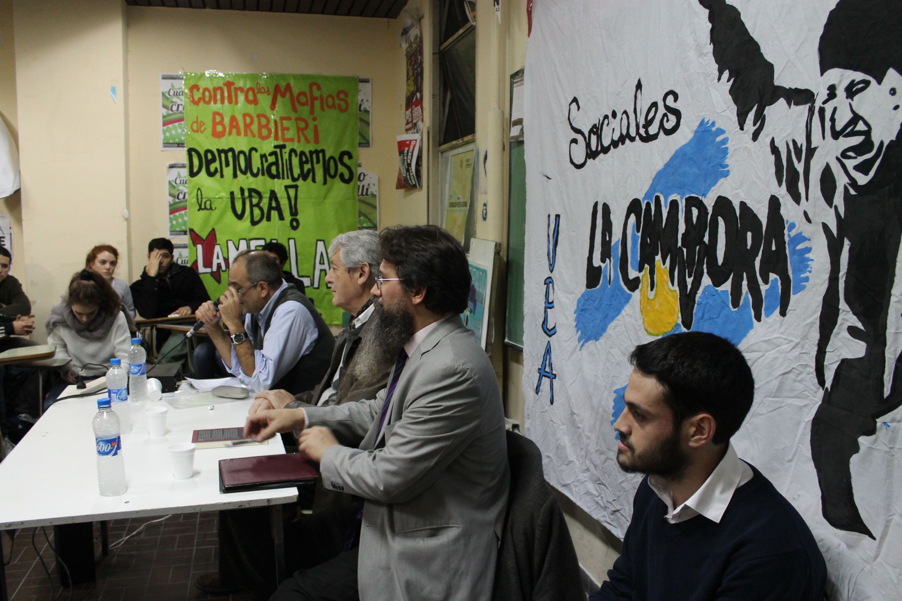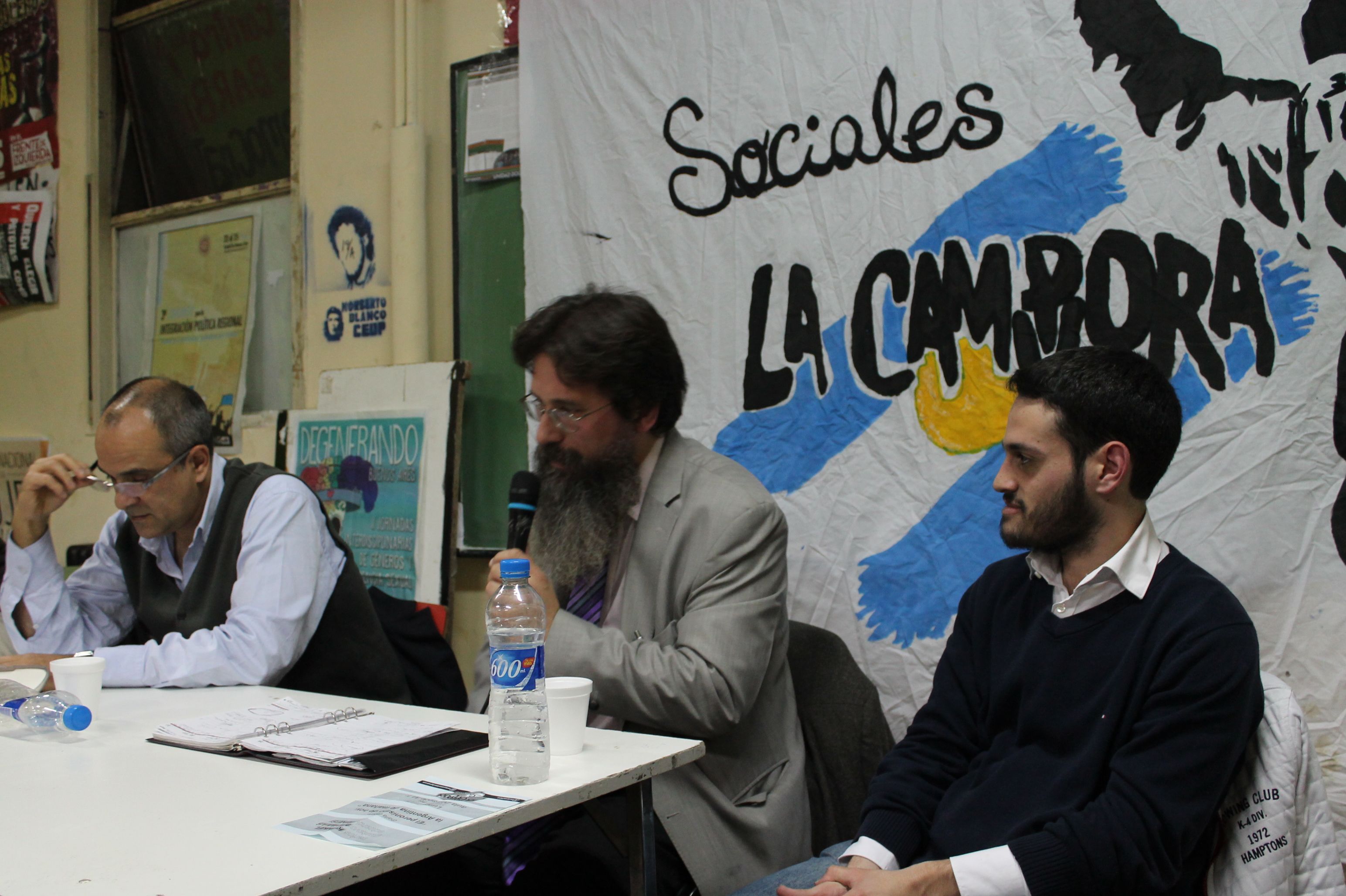 El panel fue más que contundente. Las palabras estuvieron a cargo del compañero y diputado nacional, Carlos Kunkel; el docente de sociología y consejero directivo Gustavo "Jack" Nahmías, y el rector de la Universidad Nacional Gral. Sarmiento -y recientemente nombrado director del AFSCA-, Eduardo Rinesi.