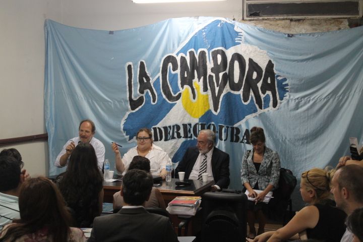 Pasadas las seis de la tarde empezaron a acercarse estudiantes y graduados al aula 4 de Extensión. Durante la charla, los cuatro oradores ˮ“ que intervinieron en la audiencia pública por la Ley de Medios como amicus o como representantes del Estado- se refirieron al vínculo entre libertad de expresión y Estado democrático, a los argumentos del Grupo Clarín sobre sustentabilidad y rentabilidad y los mandatos constitucionales e internacionales.