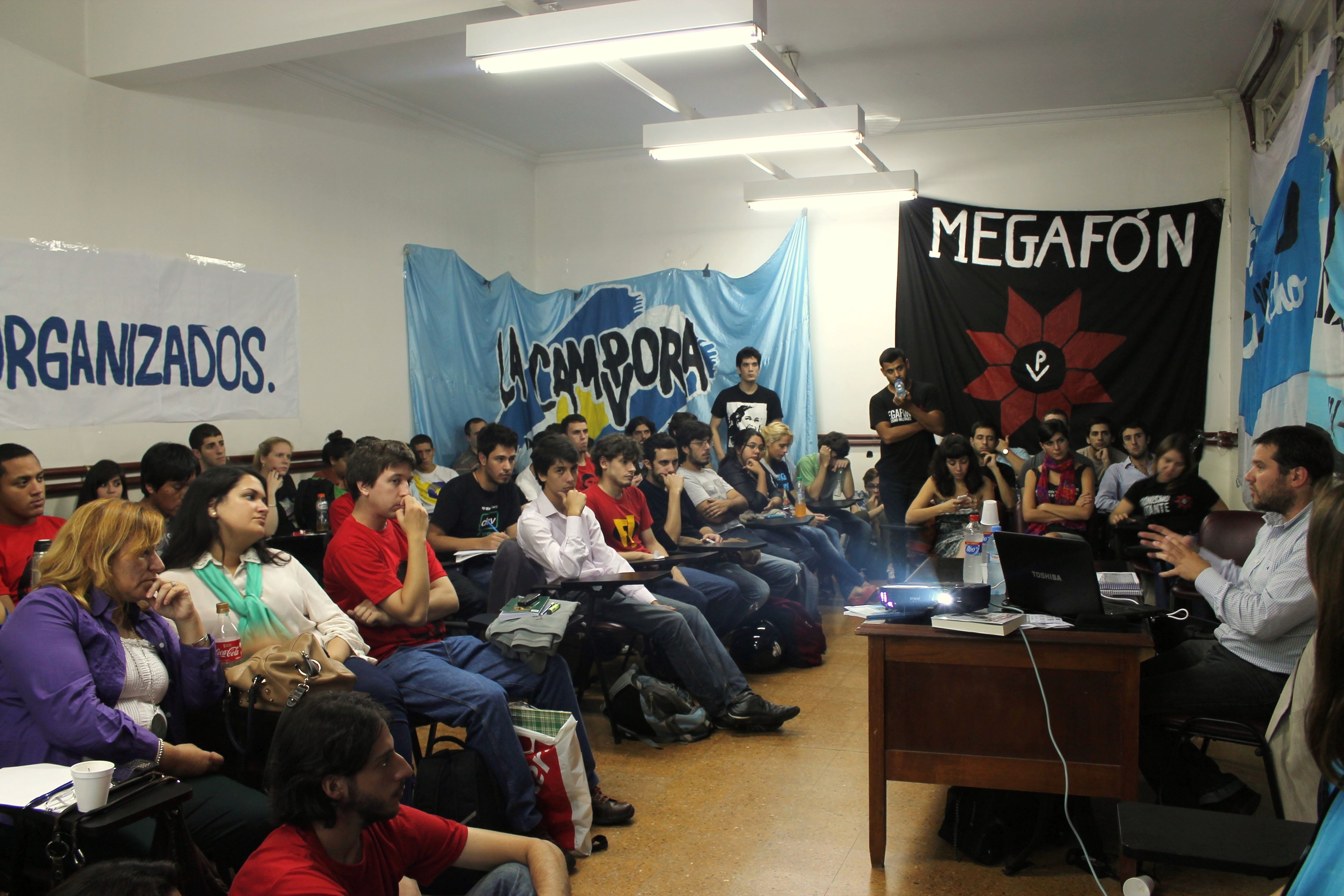 De la organización de la charla participaron junto a La Cámpora Derecho, las agrupaciones Nuevo Encuentro, Nunca Menos, JP Descamisados, La Fidel (PCCE), FJC La Fede y Megafón.
