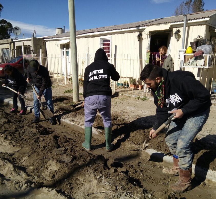 Ayudando en el rescate de vecinos, realizando zanjas, limpiando el interior y exterior de casas y calles de los barrios Juan XXIII, Don Bosco, Laprida, San Cayetano, Abel Amaya, 1008 Viviendas, Km 8. Si, con pala en mano y pechera de “La Patria es el Otroˮ, porque las convicciones no se dejan en la puerta de ningún lado, las convicciones se defienden, se militan y se ponen en alto.