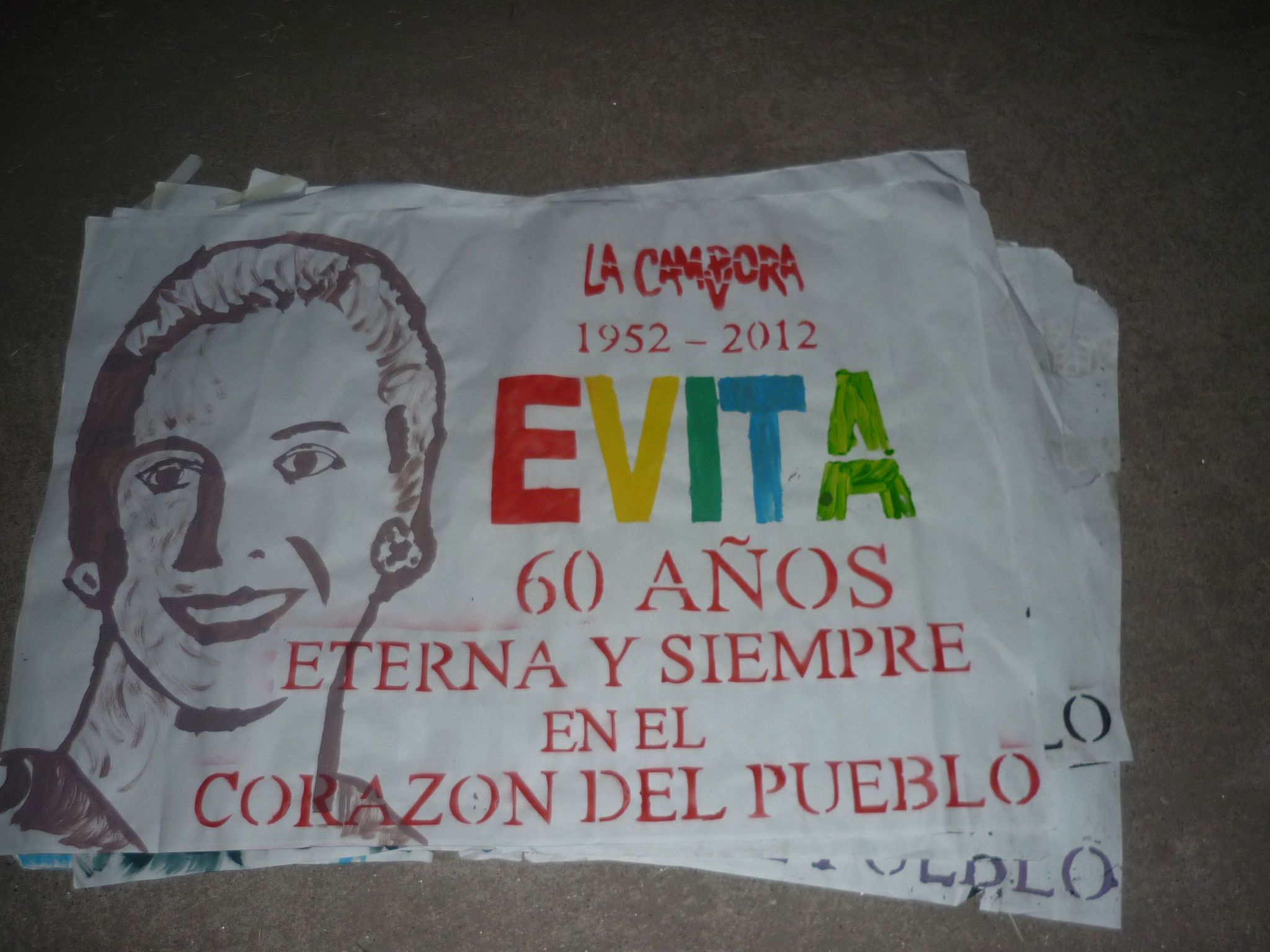 El día 26 de julio los compañeros de La Cámpora en San Juan junto con la Municipalidad de Rivadavia y con otras organizaciones sociales y políticas; MARDAN, Corriente Nacional de la Militancia, EDE San Juan, CNP 25 de Mayo y la juventud del Partido Popular Participativo, realizaron en conjunto un mural colectivo en calle Rastreador Calivar esquina Ignacio de la Roza, Departamento Rivadavia, en homenaje al 60º Aniversario del paso a la inmortalidad de Eva Perón.
