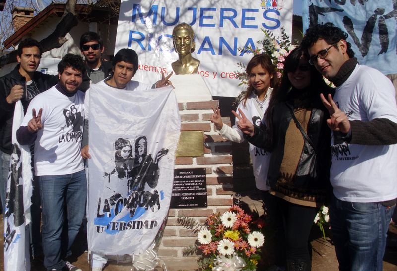 En la mañana de hoy, participaron de otro homenaje en el barrio Evita, de la ciudad capital, que consistió en ofrendas florales y el descubrimiento de una placa, sobre un busto de Eva Perón, El acto contó con la presencia de la senadora riojana por el Frente para la Victoria, Teresita Luna y con agrupaciones a fines al movimiento nacional y popular.