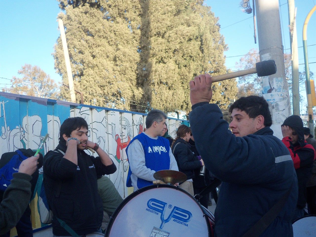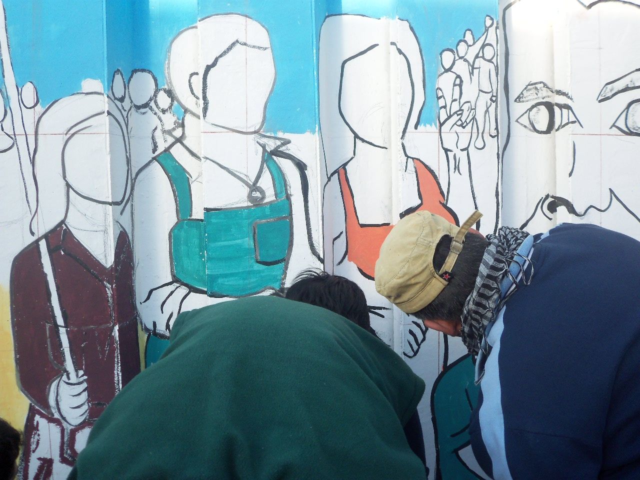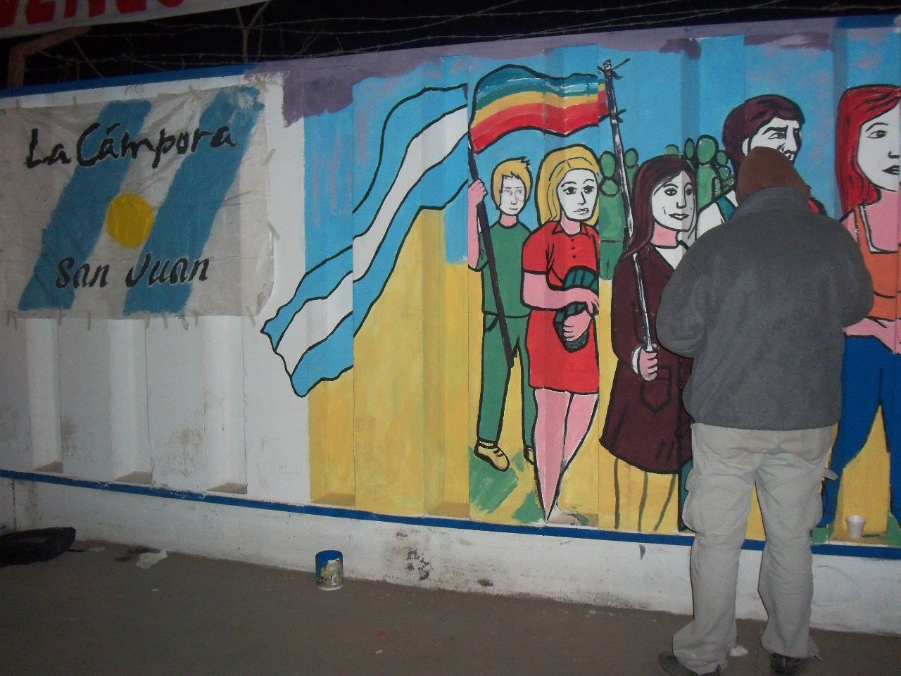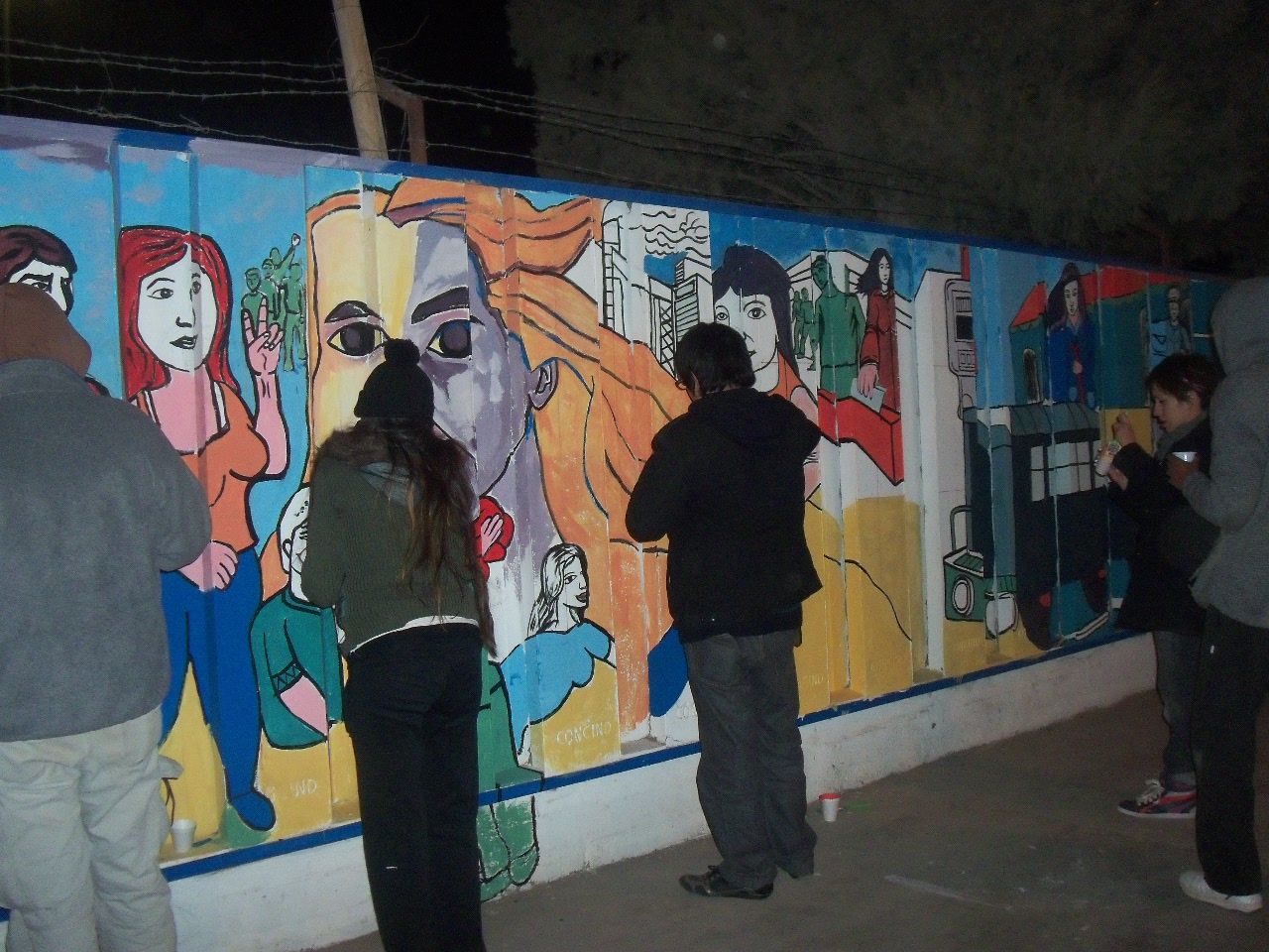 Los jóvenes comenzaron la actividad alrededor de las dos de la tarde, a pesar del frío viento sur, que soplaba sin cesar. Comenzaron a llegar abrigados, con juegos de mate en la mochila, algunos con tortitas, también galletitas y no faltó el bizcochuelo, para acompañar la larga tarde, ya que el motivo del encuentro era más que movilizante, nadie faltó a la cita. Algunos preparaban los colores, mientras otros, los más conocedores de la técnica, comenzaban a trazar el mural, para después sumar a unos 40 jóvenes que colaboraron entusiastas pintando y dando color a esa pared que después vería reflejado el hermoso mural colectivo con la imagen de Evita y las principales medidas político y sociales que impulsó en su época.