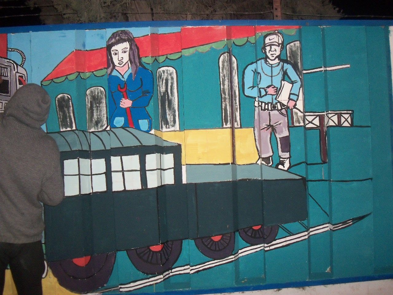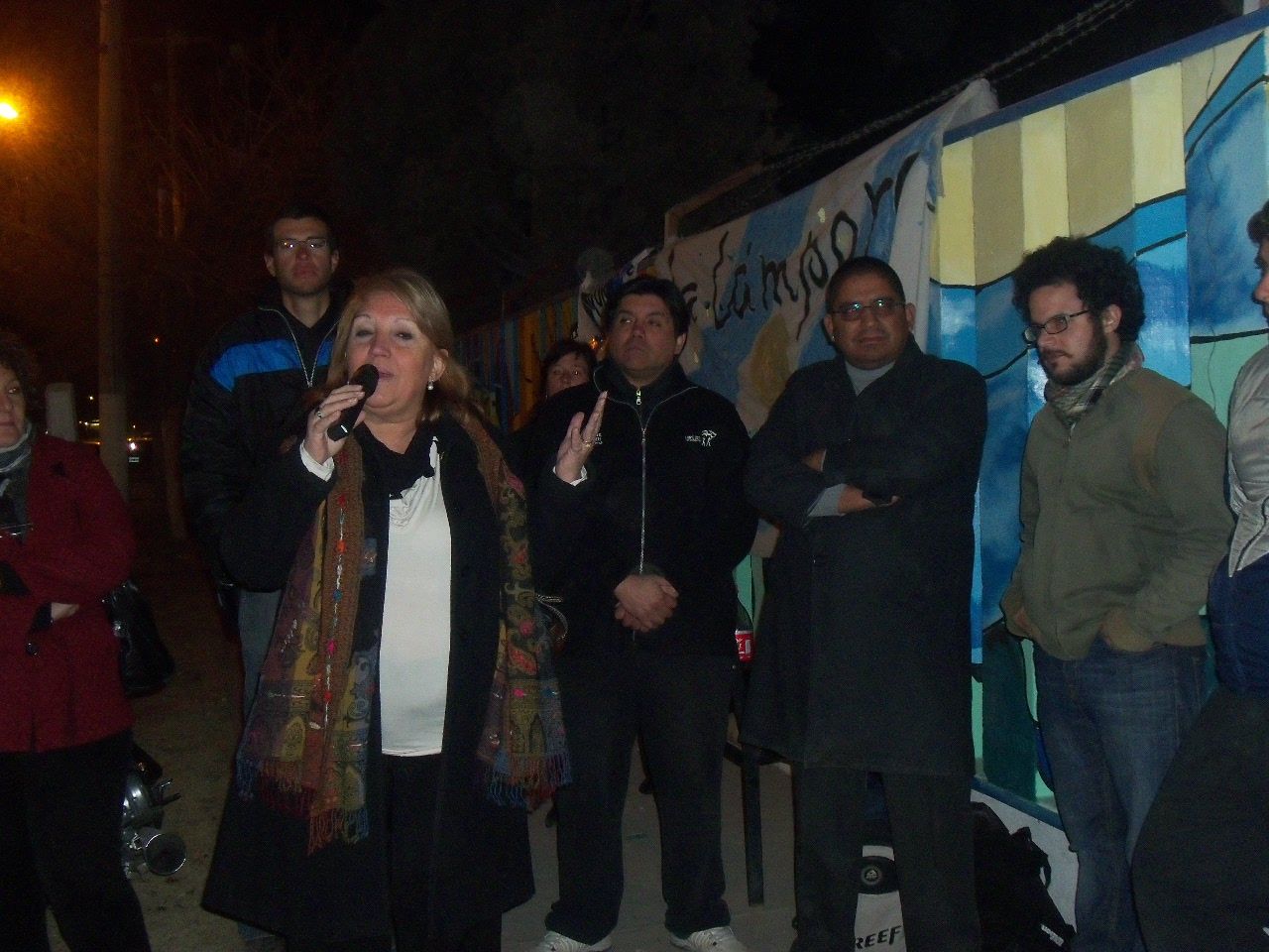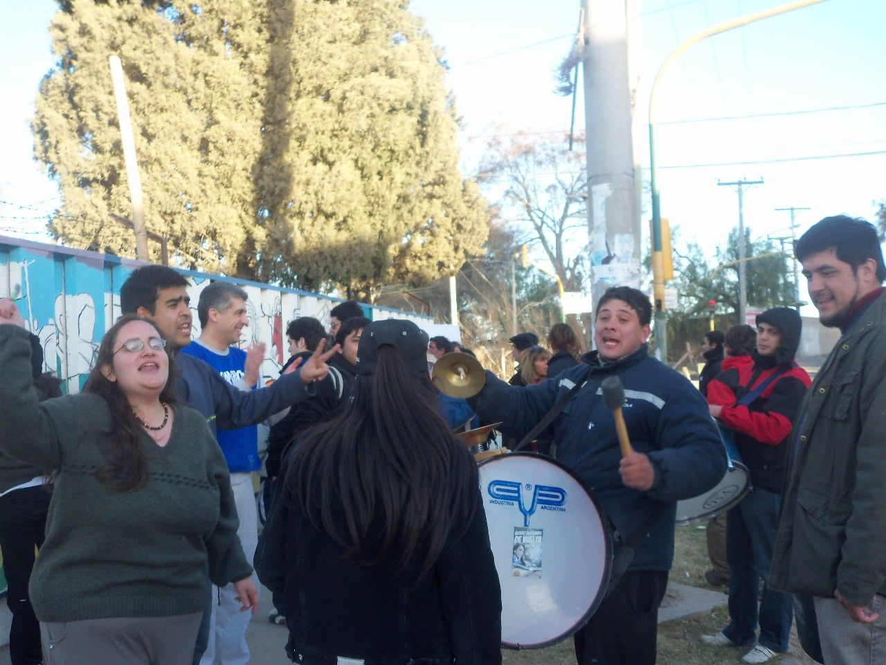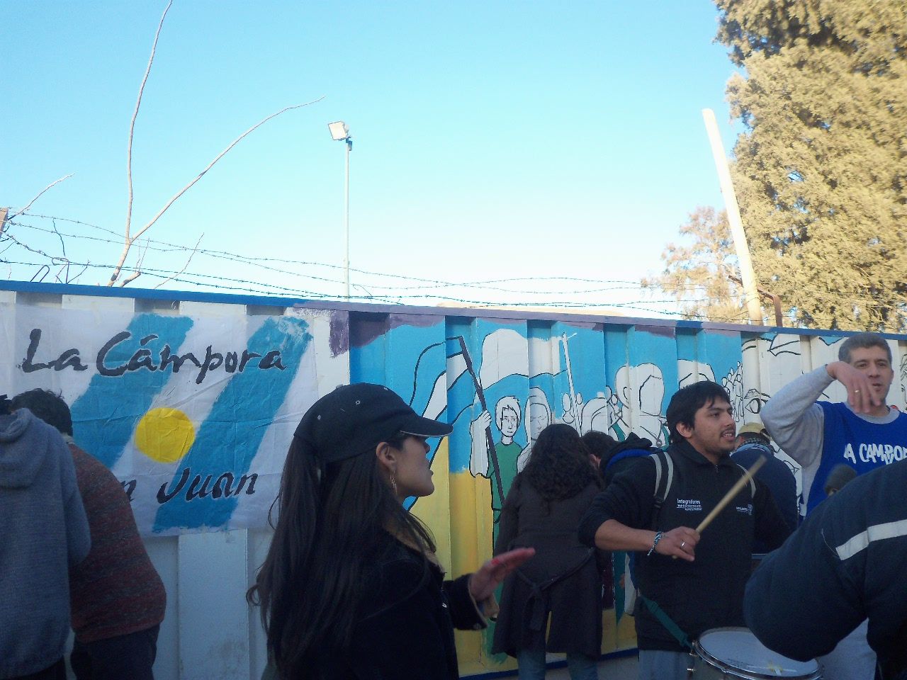 Los jóvenes comenzaron la actividad alrededor de las dos de la tarde, a pesar del frío viento sur, que soplaba sin cesar. Comenzaron a llegar abrigados, con juegos de mate en la mochila, algunos con tortitas, también galletitas y no faltó el bizcochuelo, para acompañar la larga tarde, ya que el motivo del encuentro era más que movilizante, nadie faltó a la cita. Algunos preparaban los colores, mientras otros, los más conocedores de la técnica, comenzaban a trazar el mural, para después sumar a unos 40 jóvenes que colaboraron entusiastas pintando y dando color a esa pared que después vería reflejado el hermoso mural colectivo con la imagen de Evita y las principales medidas político y sociales que impulsó en su época.