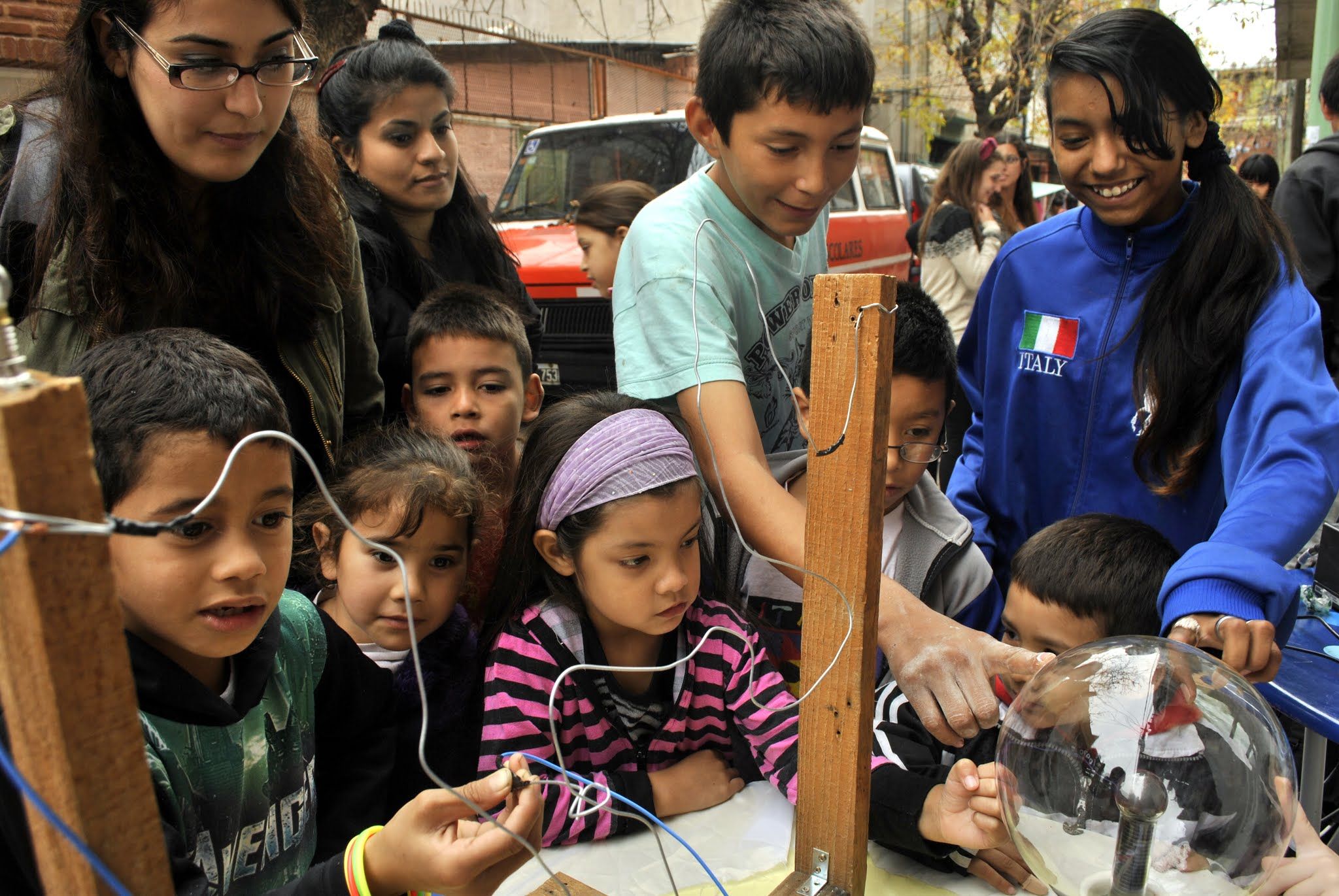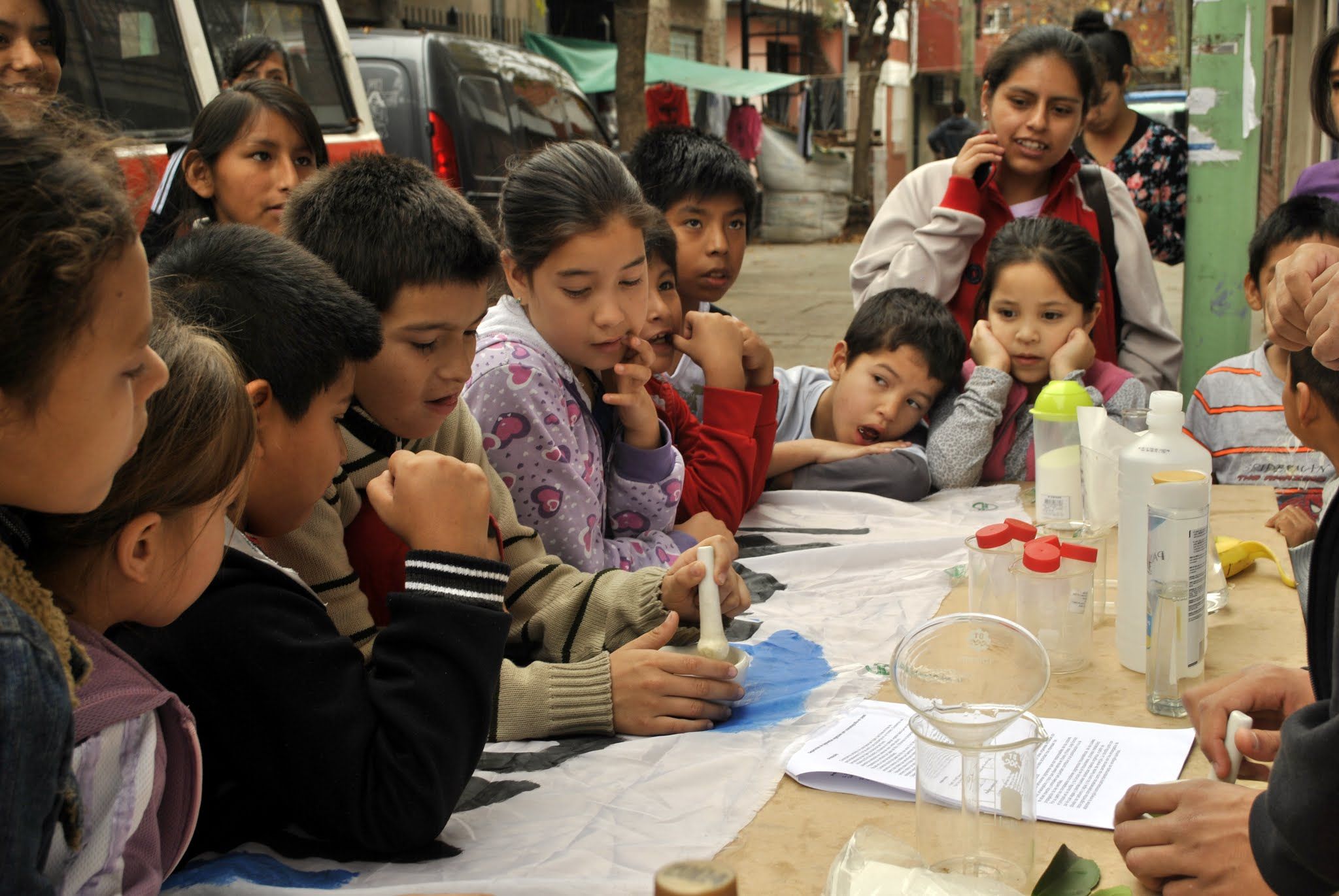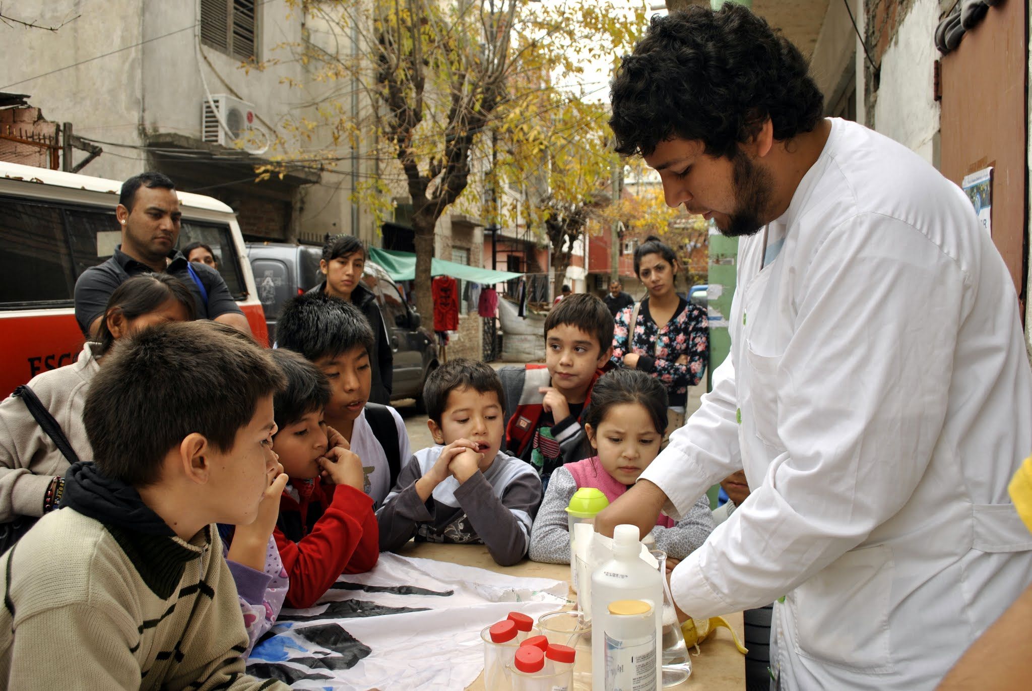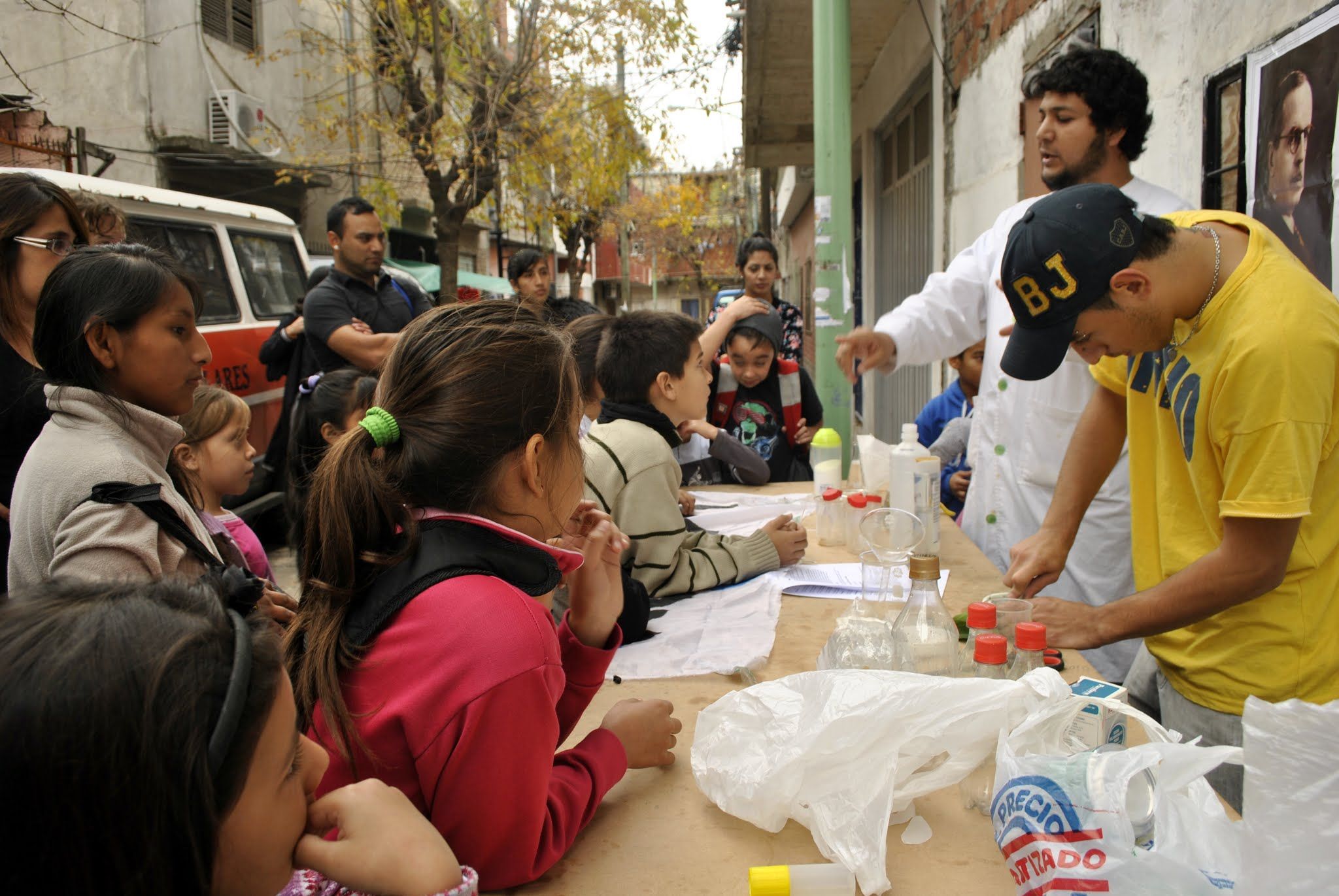 Pasado el mediodía, los compañeros de las facultades de Exactas e Ingeniería desplegaron una didáctica feria de ciencias para todos los chicos del barrio. Además, se dieron clases de ajedrez simultáneo y se compartieron unas partidas de juego para practicar.