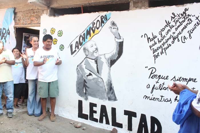 Mientras algunos militantes hacían el recorrido, en el Pasaje Héctor J. Cámpora del sector Cristo Obrero otros terminaban de dar las últimas pinceladas al mural que se descubriría por la tarde.
