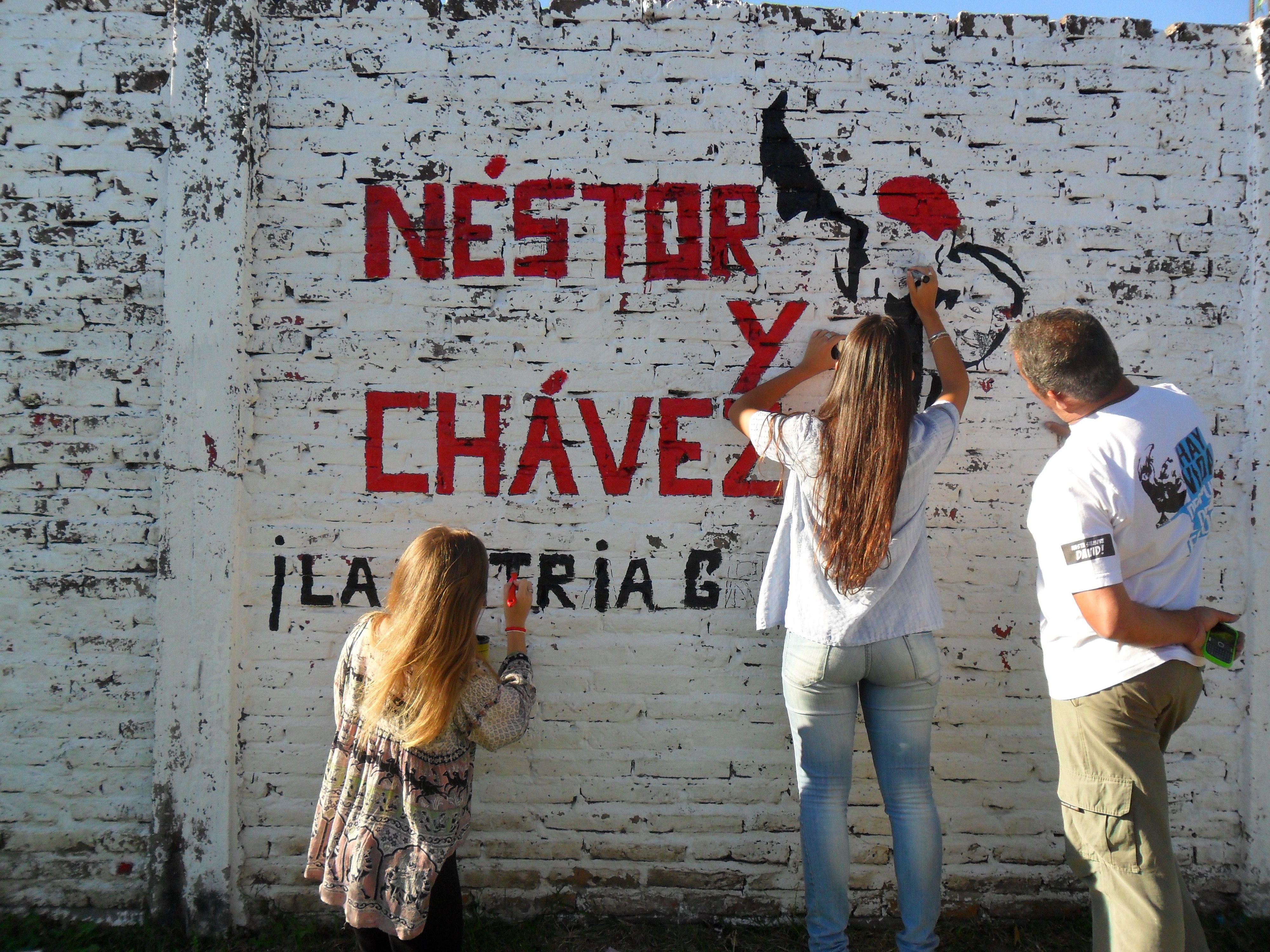 Dos presidentes que ingresaron a la eternidad en la memoria del pueblo por su lucha, su convicción y por las transformaciones que produjeron en sus países y en toda Latinoamérica. Por eso, los compañeros de La Cámpora de las provincias de Corrientes, Entre Ríos, Chaco, Formosa, La Pampa, Santiago del Estero, La Rioja y Córdoba realizaron este homenaje, plasmando en las paredes el sentimiento de entusiasmo de seguir luchando por lo mismo que lucharon Néstor y Chávez.