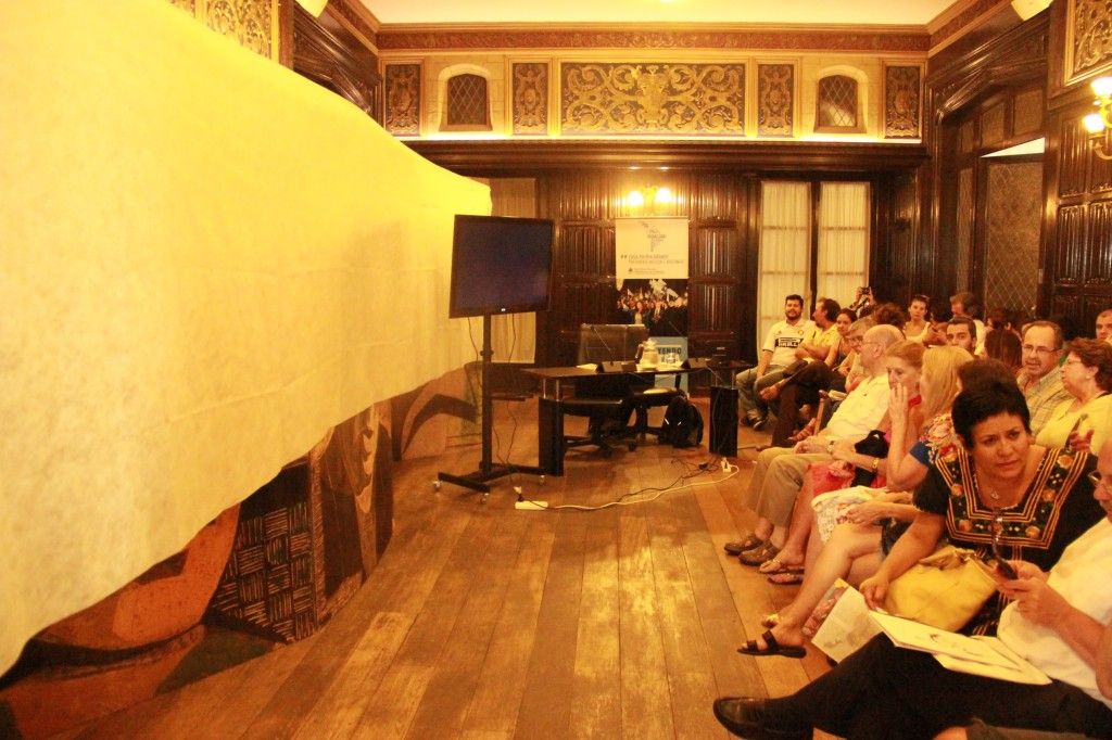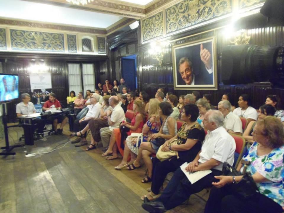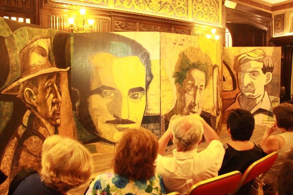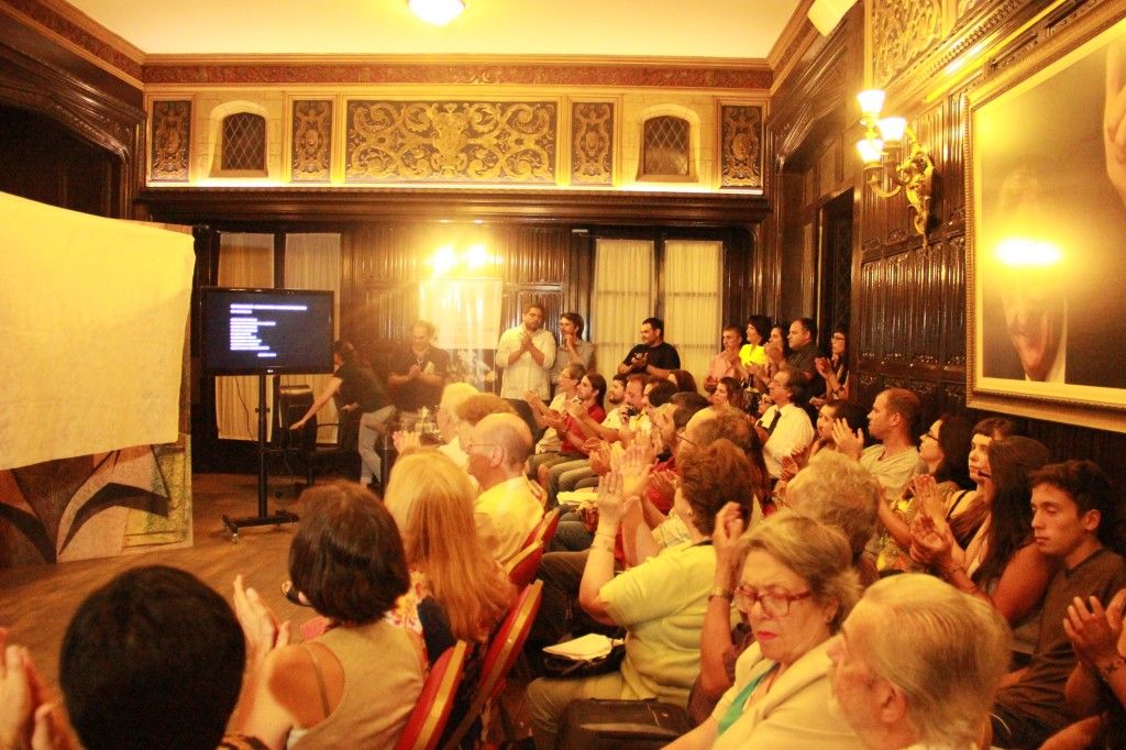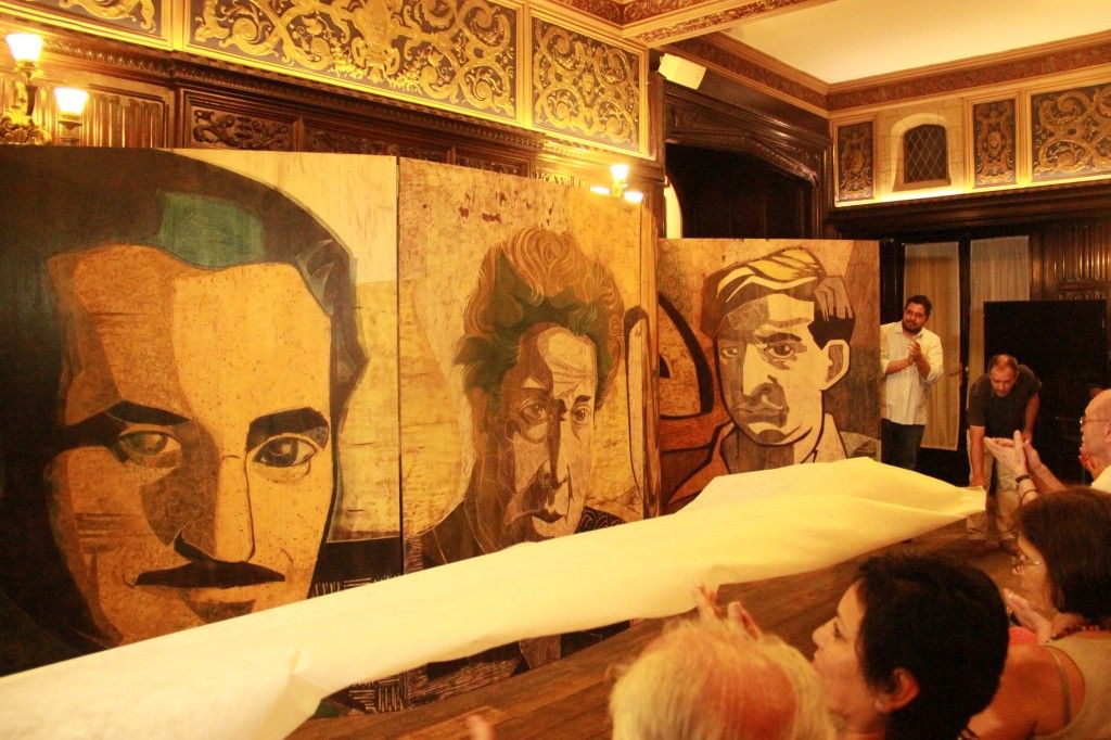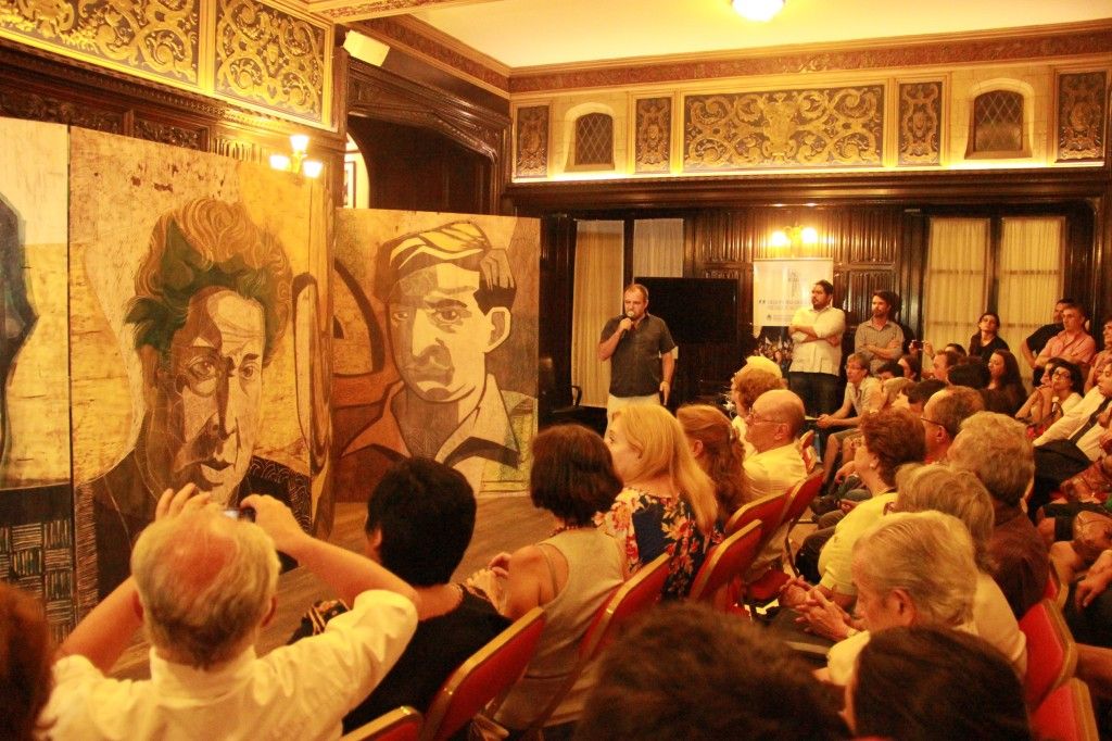 Mucha gente se acercó al lugar para disfrutar del homenaje que contó con la realización de dos coloquios: “Siqueiros y la Argentina en 1933ˮ y “Siqueiros, proyecciones artísticas y políticasˮ. Luego, se llevó a cabo la presentación del mural xilograbado “Siqueiros y su equipo poligráficoˮ realizado por los compañeros del MAC. En él se pueden observar a David Siqueiros y al famoso equipo que colaboró con la realización de la obra: Lino Enea Spilimbergo, Antonio Berni y Juan Carlos Castagnino, y el escenógrafo uruguayo Enrique Lázaro.